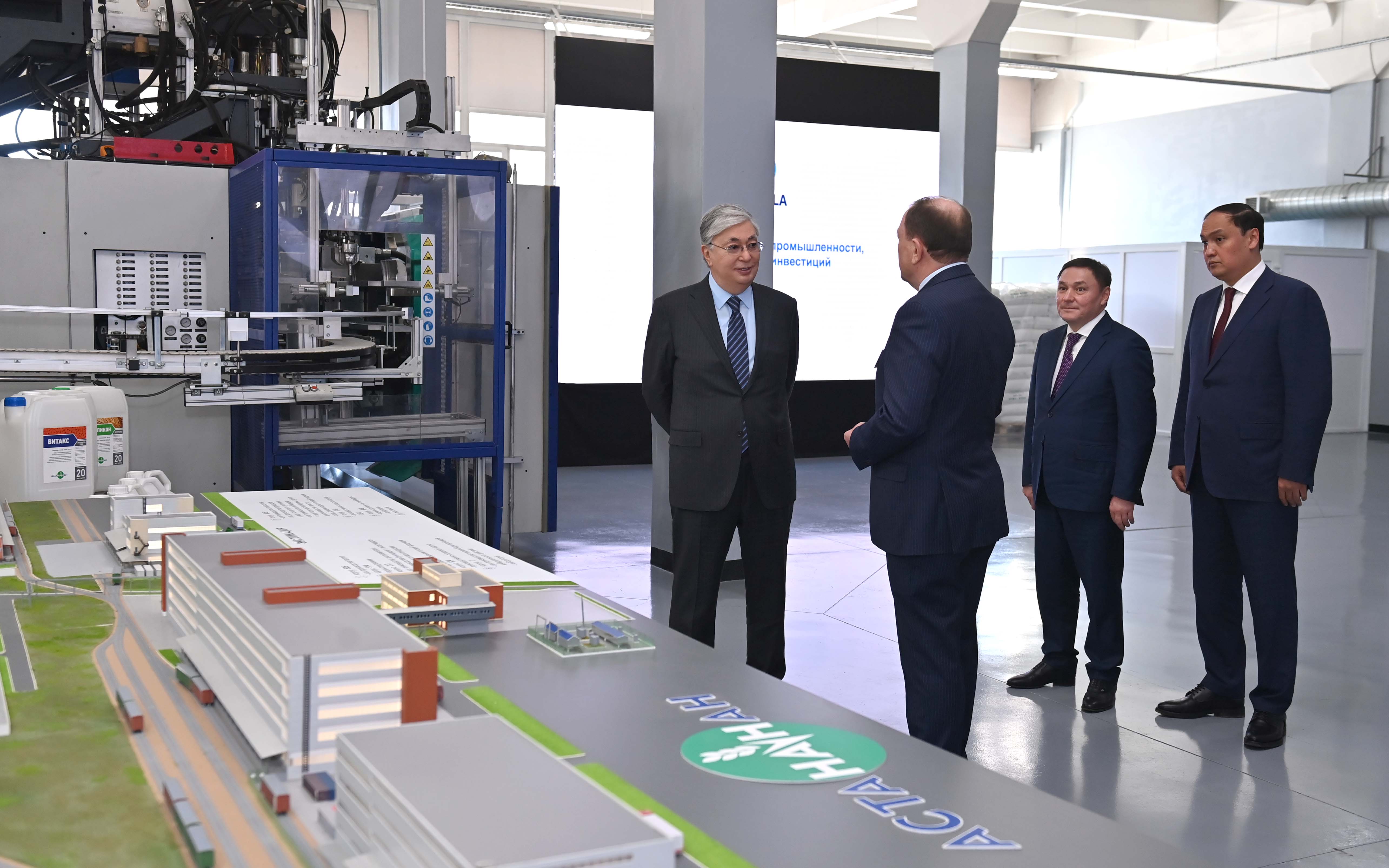 Президент Қасым-Жомарт Тоқаев пестицидтер мен агрохимия өнімдерін өндіретін «Астана-Нан Chemicals» зауытының жұмысымен танысты.
