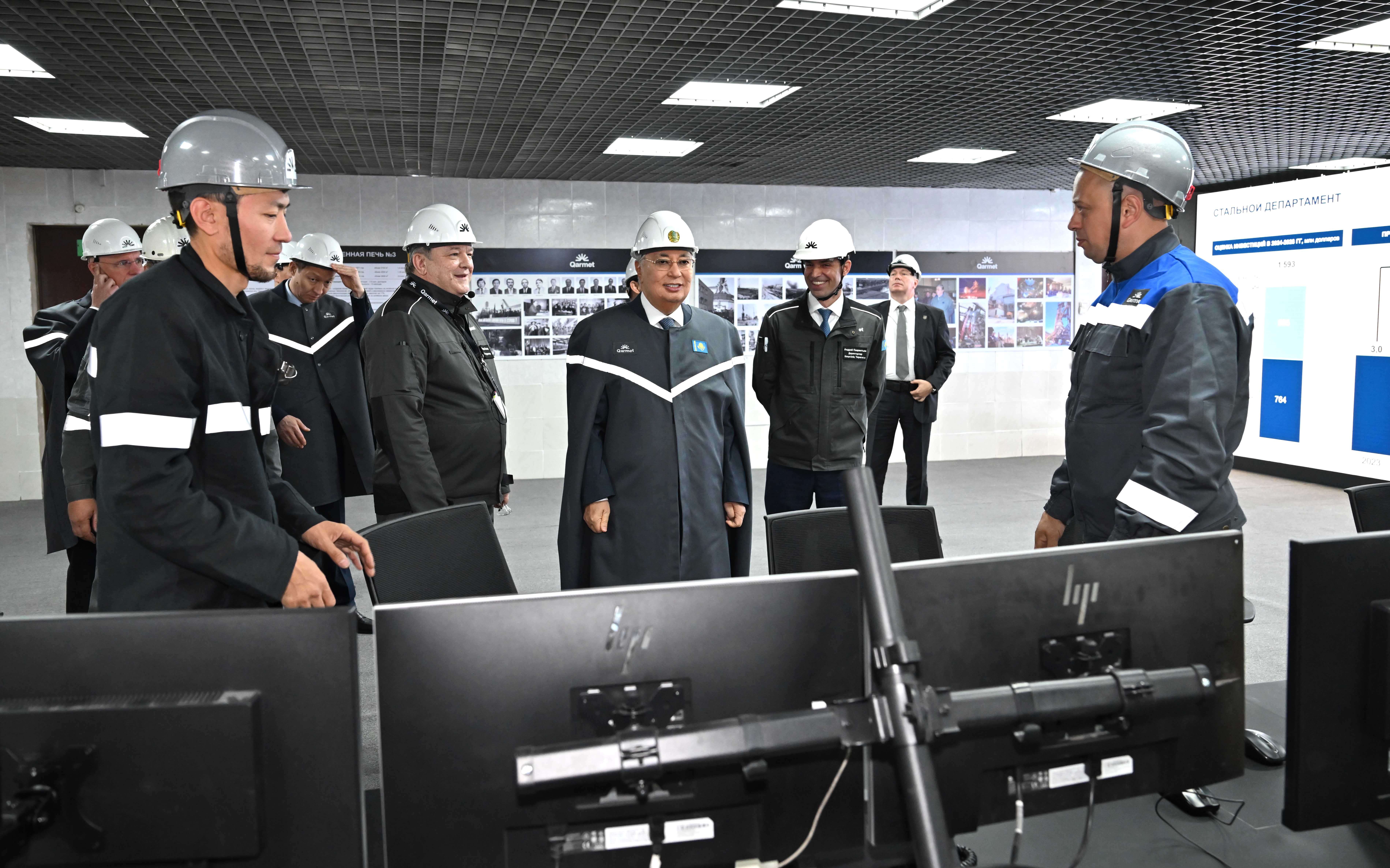 Қасым-Жомарт Тоқаевтың Қарағанды облысына жұмыс сапары Теміртау қаласындағы Qarmet металлургиялық комбинатын аралап көруден басталды.