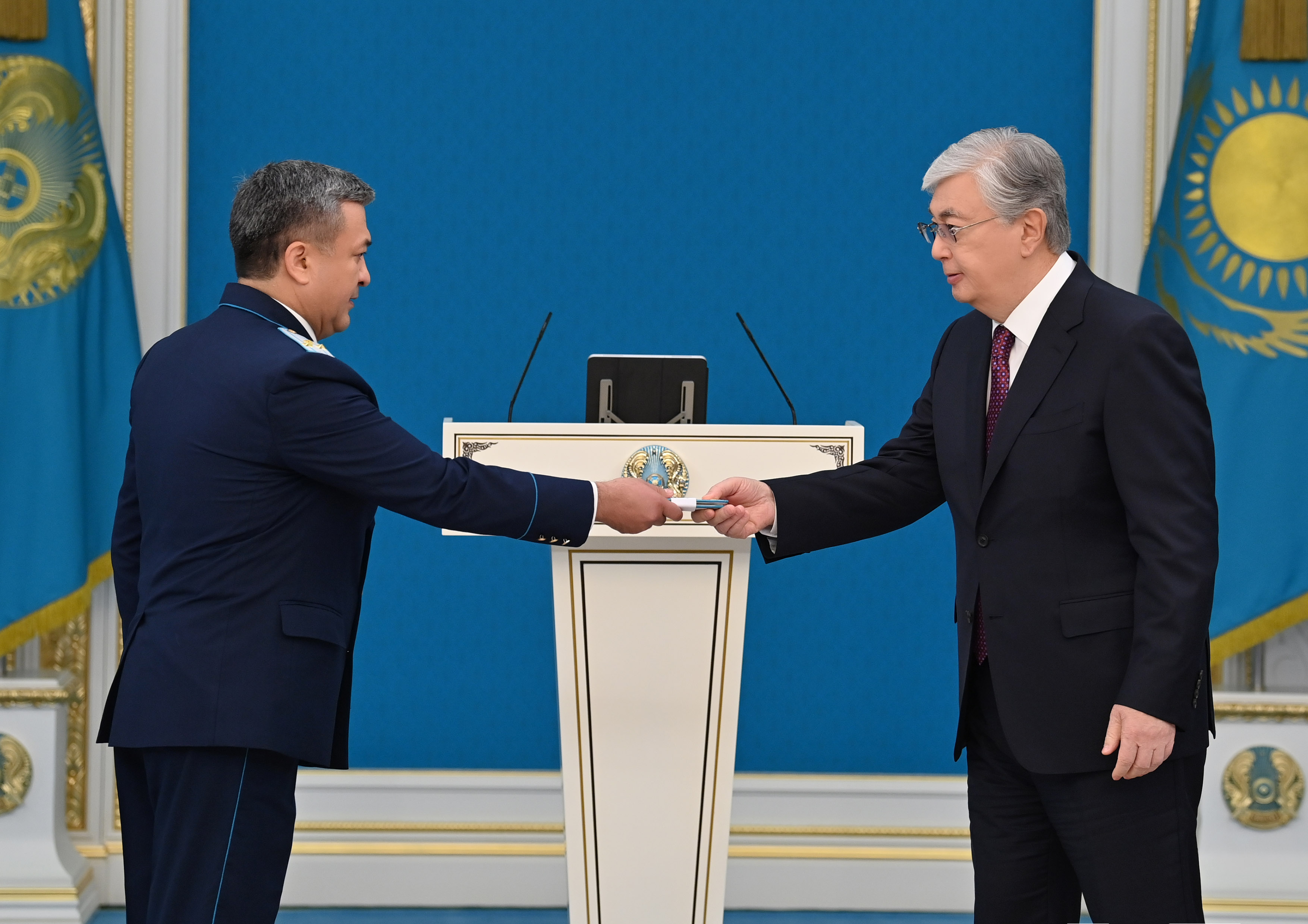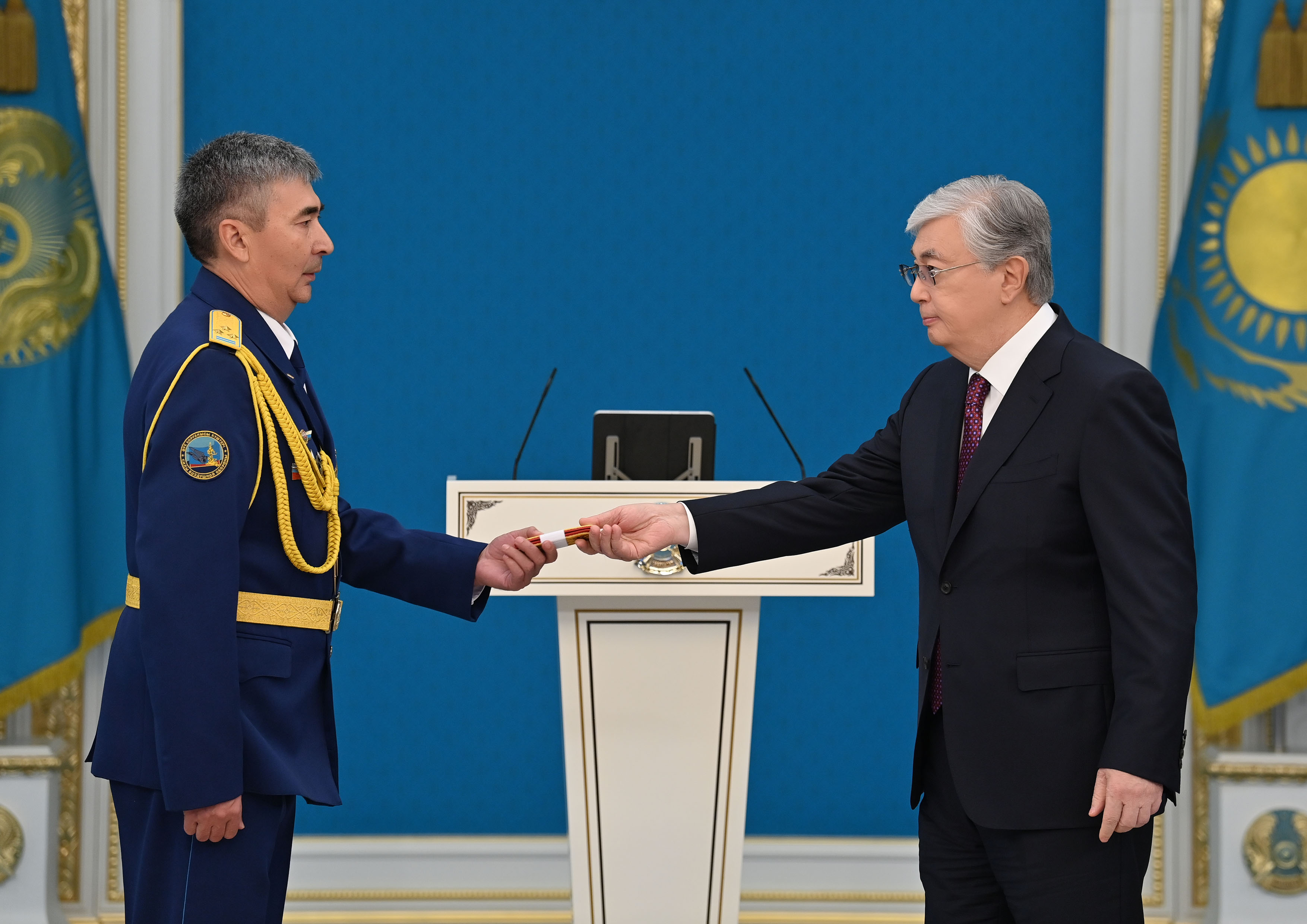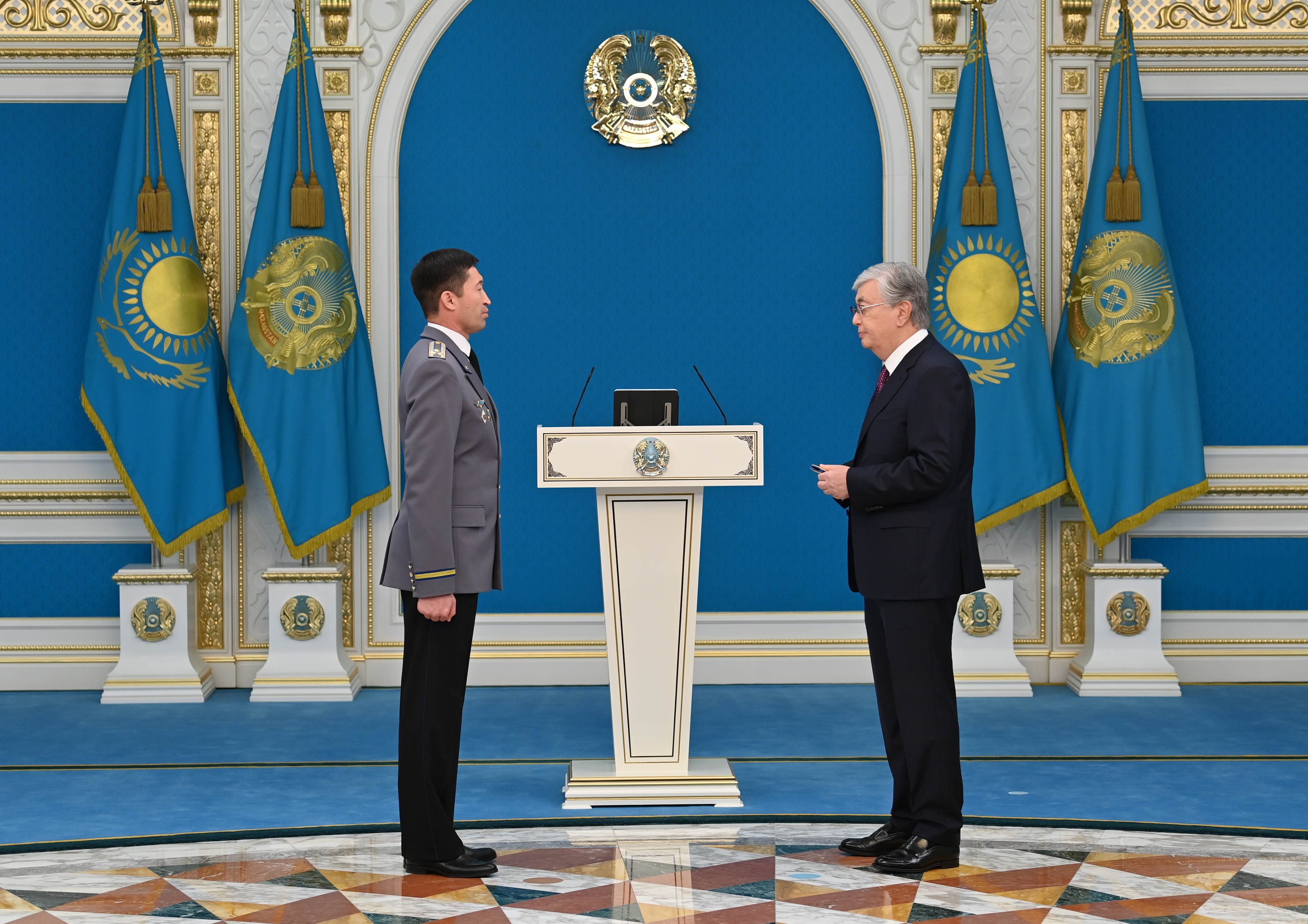 – Әскери және арнаулы атақтар, сыныптық шендер Республика күніне орай алғаш рет тапсырылмақ. Бұл өте орынды деп санаймын. Біз – ақ білектің күшімен, ақ найзаның ұшымен ел қорғаған батырлар еліміз. Ерлеріміз жер шетіне жау тимесін деп әрқашан бес қаруын сай ұстаған. Ел басына күн туса, ту түбінен табылған. Сіздер сол бабалар жолын лайықты жалғастырып келесіздер. Егемендіктің бүкіл қадір-қасиеті – жердің тұтастығында және елдің тыныштығында. Осы асыл құндылықтарды өздеріңіз қас қақпай күзетіп тұрсыздар. Айбынды армиямыз және басқа да қауіпсіздік құрылымдары – мемлекетіміздің берік қалқаны, – деді Қасым-Жомарт Тоқаев.