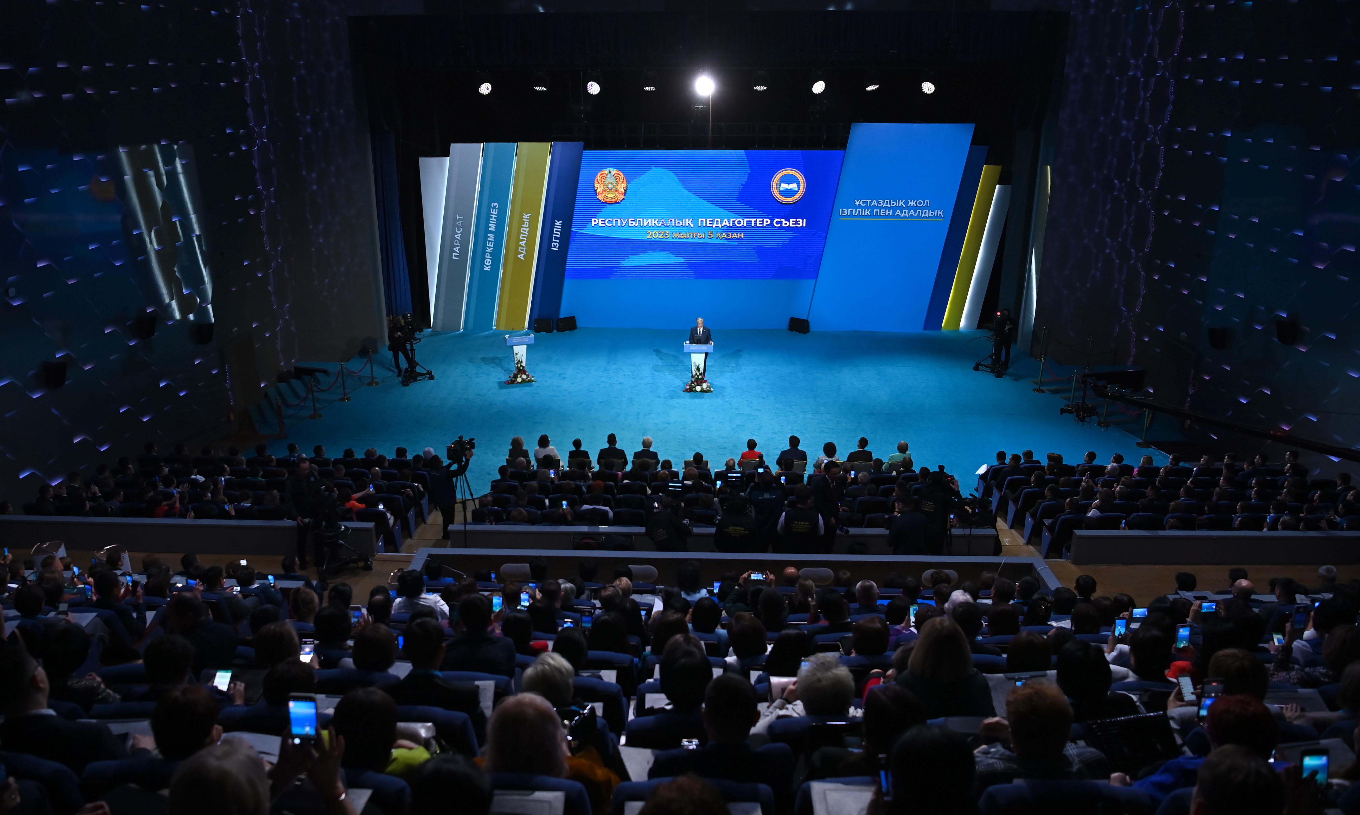 Президент Қасым-Жомарт Тоқаев, ең алдымен, жиынға қатысушыларды Ұстаздар күнімен құттықтап, еліміздің болашағы жарқын, дамыған мемлекетке айналуы үшін мұғалімдер қауымы аянбай еңбек етіп жүргенін атап өтті.