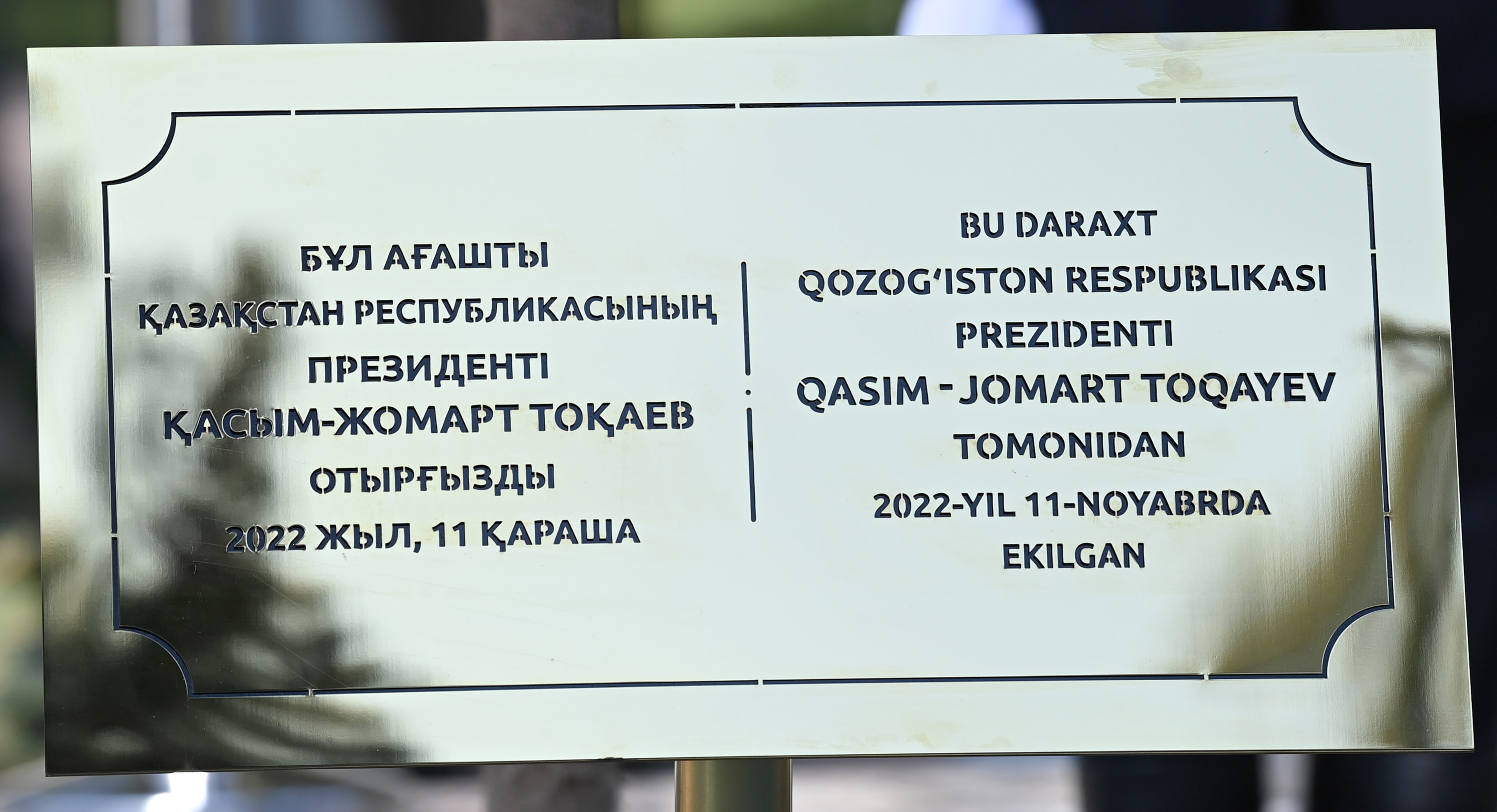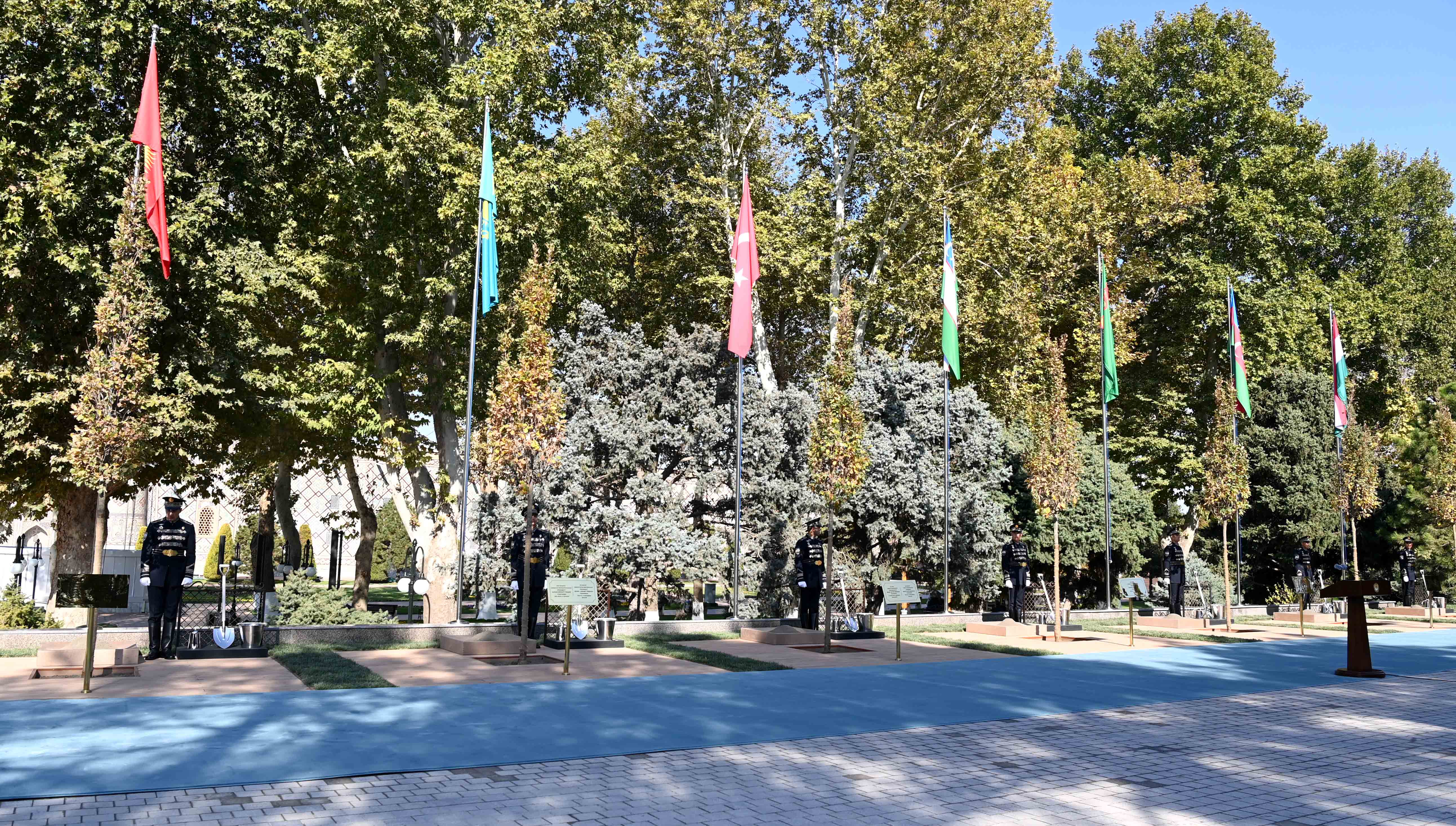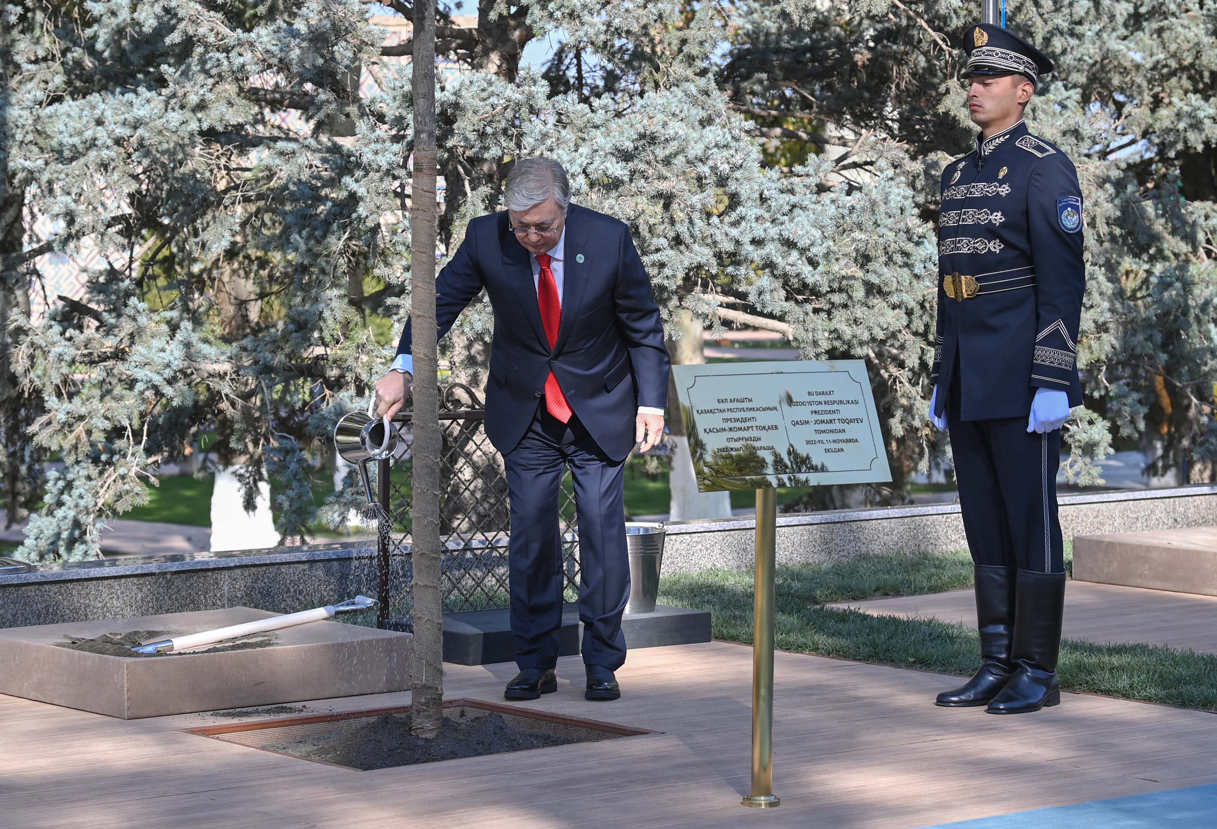 Өзбекстан Республикасы, Самарқанд қаласы Президент Түркі мемлекеттері ұйымының саммитіне қатысушы елдердің басшыларымен бірге Самарқанд қаласындағы «Регистан» алаңында тал екті. Түркі дүниесінің бірлігі бекем болсын деген тілекпен Өзбекстанның 14 өңірінде, еліміздің Түркістан қаласында және Түркия, Әзербайжан, Түрікменстан, Қырғызстан, Мажарстан мемлекеттерінің астаналарында көшеттер бір мезетте отырғызылды.