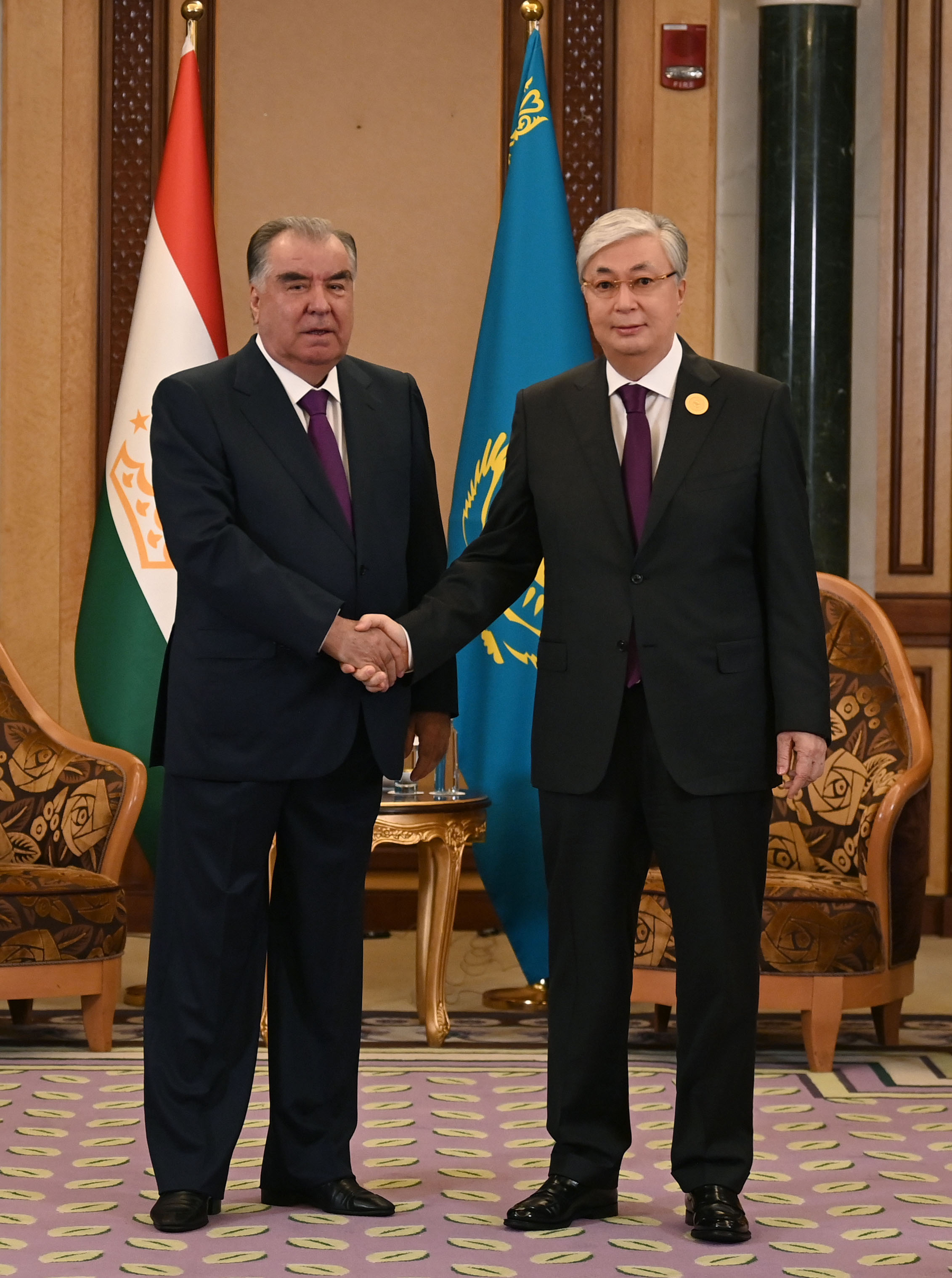 «Орталық Азия + Араб мемлекеттерінің ынтымақтастық кеңесі» саммиті аясында Президент Қасым-Жомарт Тоқаев Тәжікстан Президенті Эмомали Рахмонмен кездесу өткізді.