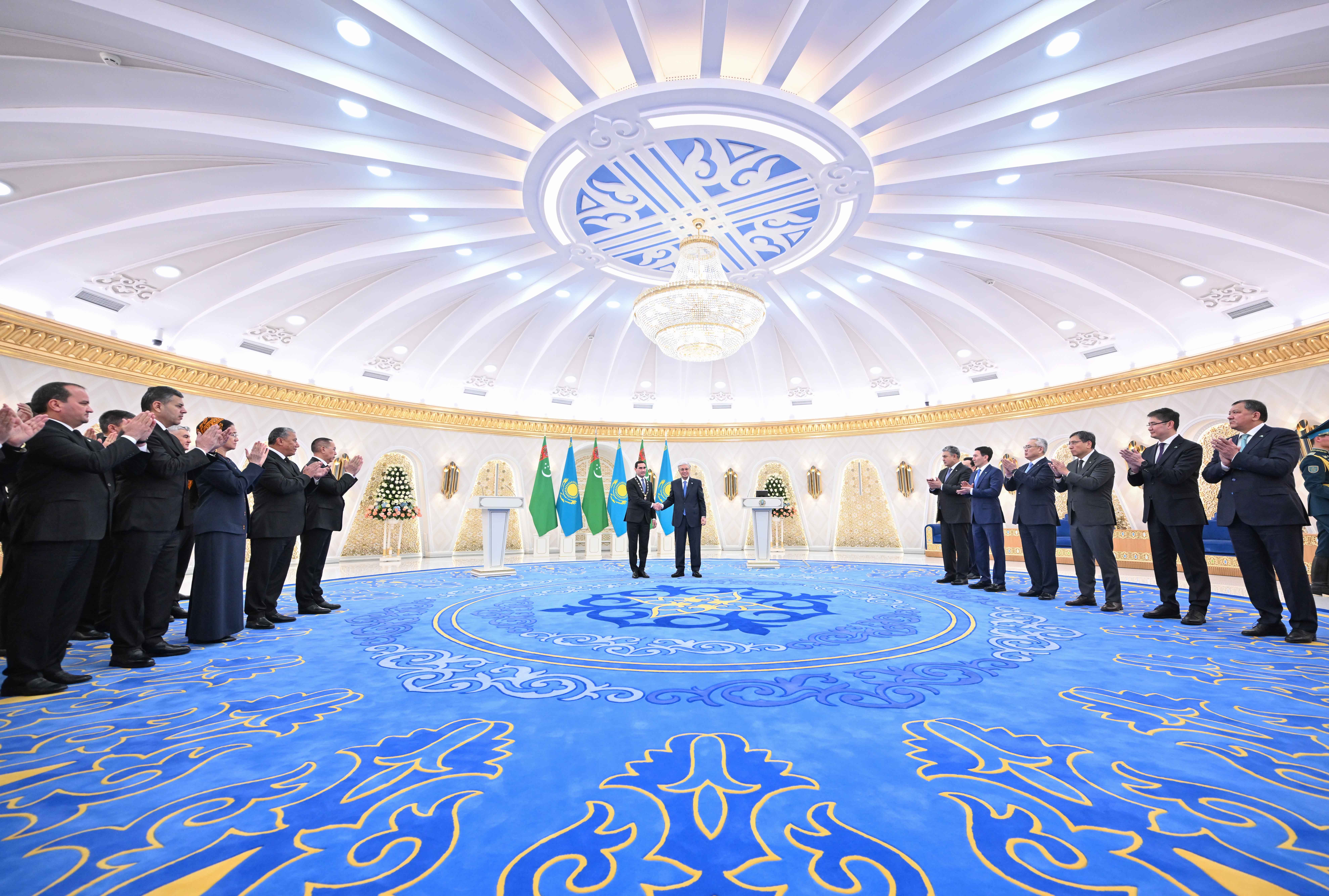 – Сіз түрікмен халқының Ұлт көшбасшысы, аса құрметті Гурбангулы Мяликгулыевич Бердімұхамедовтің келешекке арналған стратегиялық бағдарын сенімді түрде жалғастырып келесіз. Сіздің салиқалы басшылығыңызбен Түрікменстан экономикасы керемет қарқынмен дамуда. Еліңізде өнеркәсіп, көлік инфрақұрылымы белсенді түрде жаңғырып жатыр. Энергетикалық әлеуетті нығайту және технологиялық трансформация бағытында ауқымды жұмыс атқарылуда. Баянды бастамаларыңыздың арқасында бауырлас Түрікменстанда ірі әлеуметтік жобалар жоспарлы түрде жүзеге асырылып, ғылым-білім саласы соны серпін алып, халықтың әл-ауқаты жақсара түсті. Бұл жетістіктің бәрі шынайы құрметке және жоғары бағаға лайық, – деді Президент.