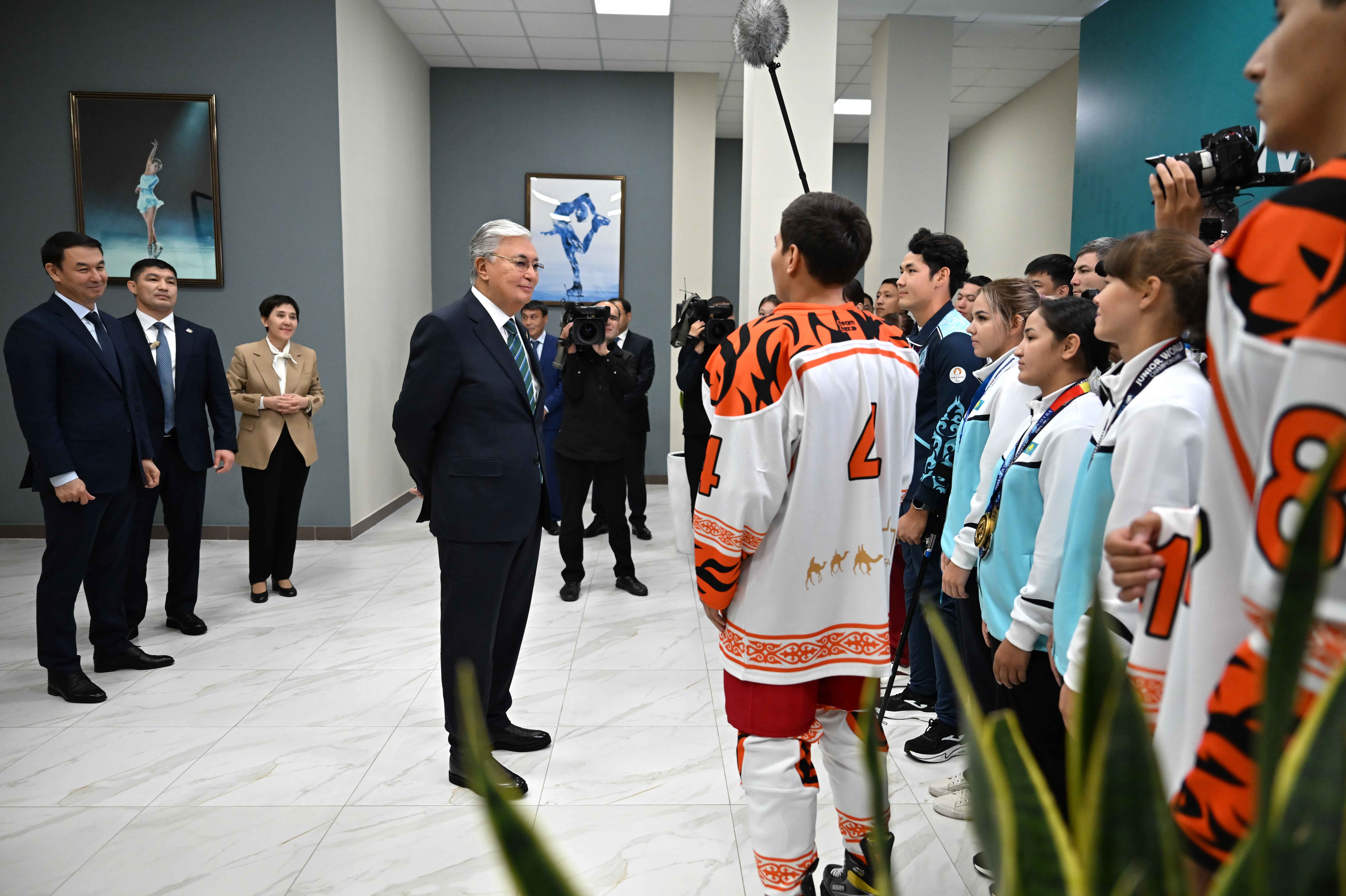 Қасым-Жомарт Тоқаев Мұз сарайын аралап көріп, балалардың өнерін тамашалады. Сондай-ақ бапкерлермен және спортшылармен кездесті.
