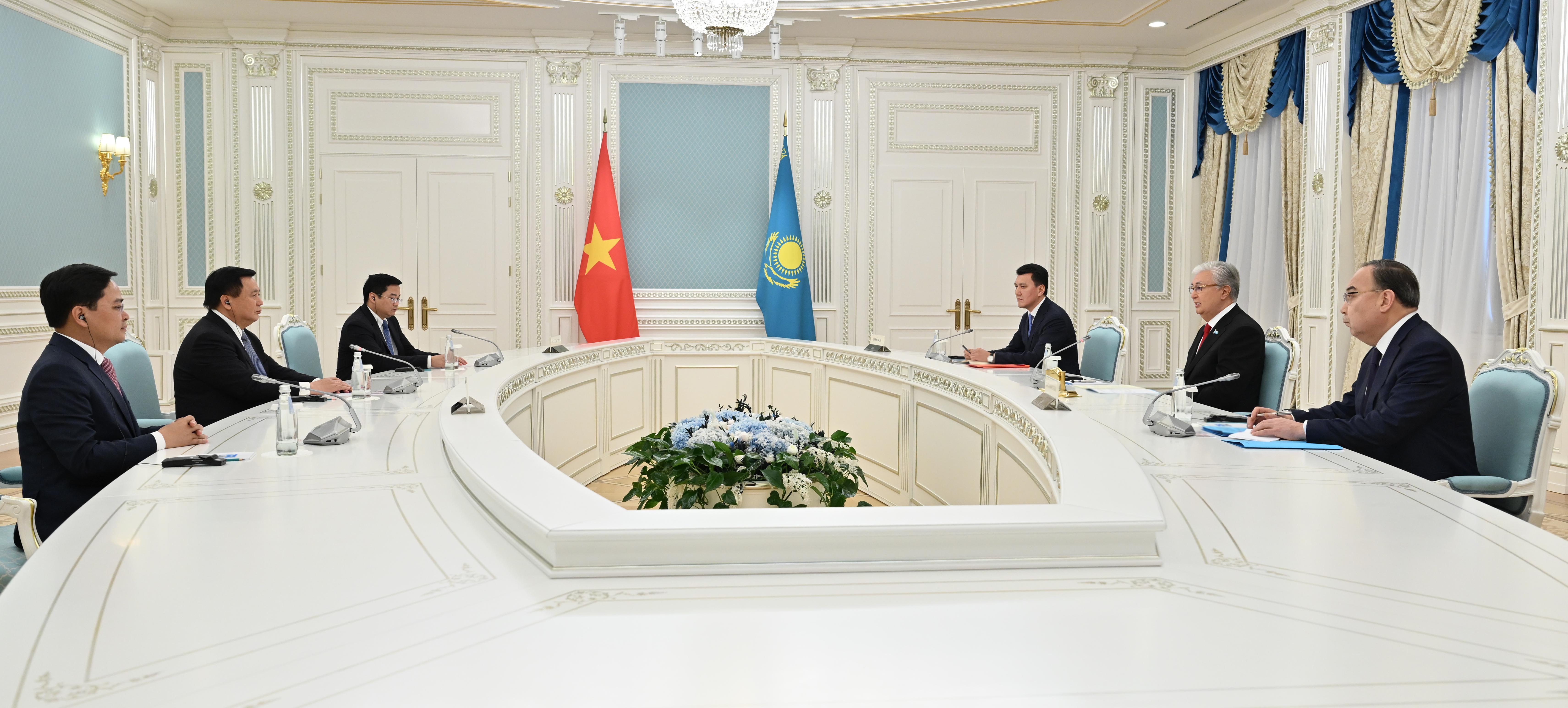 Президент Қасым-Жомарт Тоқаев Вьетнам Коммунистік партиясы Орталық комитеті Саяси бюросының мүшесі, Хо Ши Мин атындағы Ұлттық саясат академиясының директоры Нгуен Суан Тхангпен кездесті.