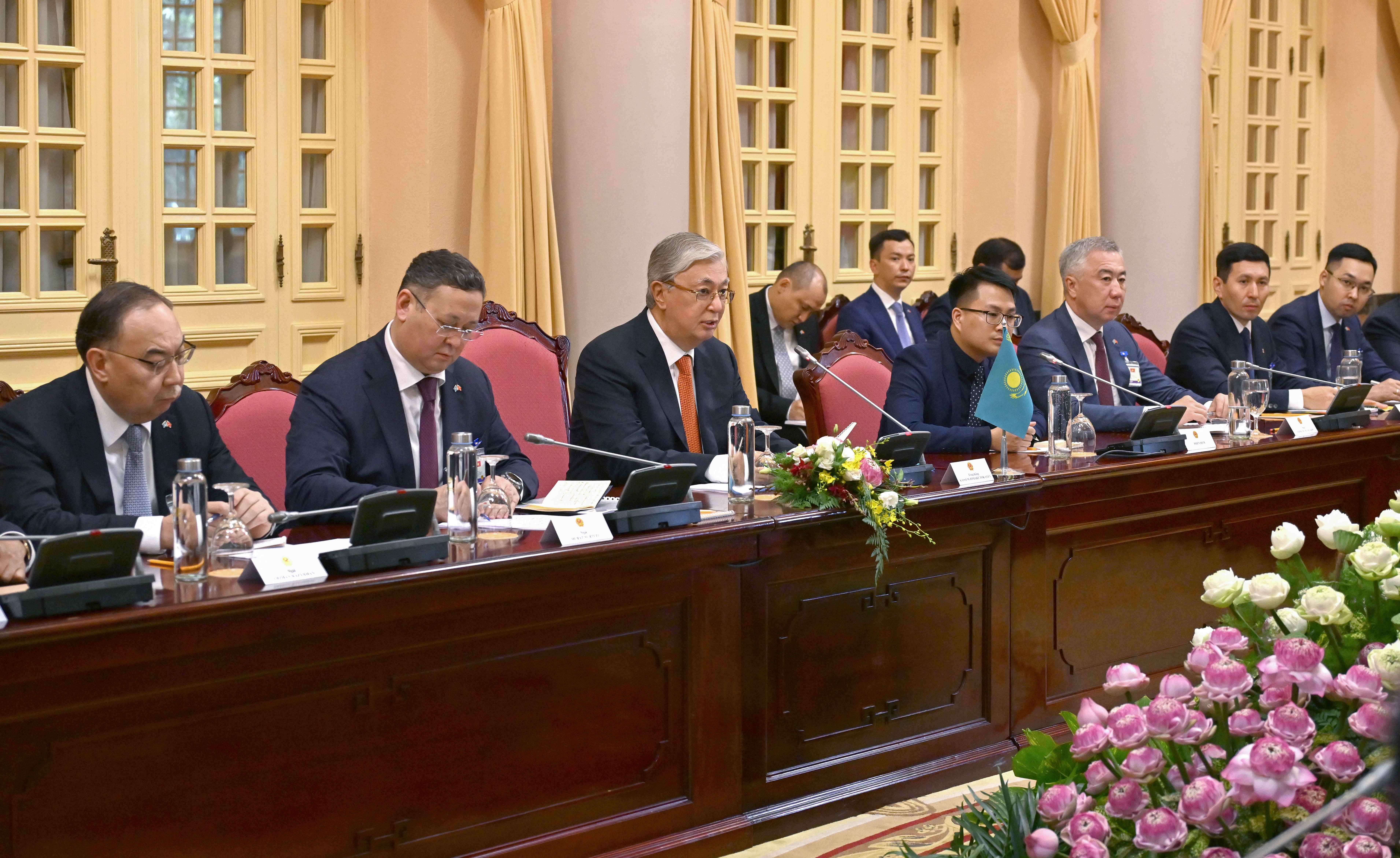 – Қазақстан Президенті ретінде Сіздің еліңізге алғаш рет сапармен келіп отырмын. Мен бұл сапарыма баса мән беремін. Қазақстанда Сіздің елге және Вьетнам халқына зор құрметпен қарайтынын атап өткім келеді. Вьетнамның экономикалық жетістіктері елдеріміздің ынтымақтастығын одан әрі нығайтуға берік негіз болады. Біз екі мемлекет арасындағы экономикалық, саяси қатынастарға баса мән береміз және Вьетнамның экономикалық зор әлеуетін және оның халықаралық аренадағы беделін жоғары бағалаймыз, – деді Қасым-Жомарт Тоқаев.