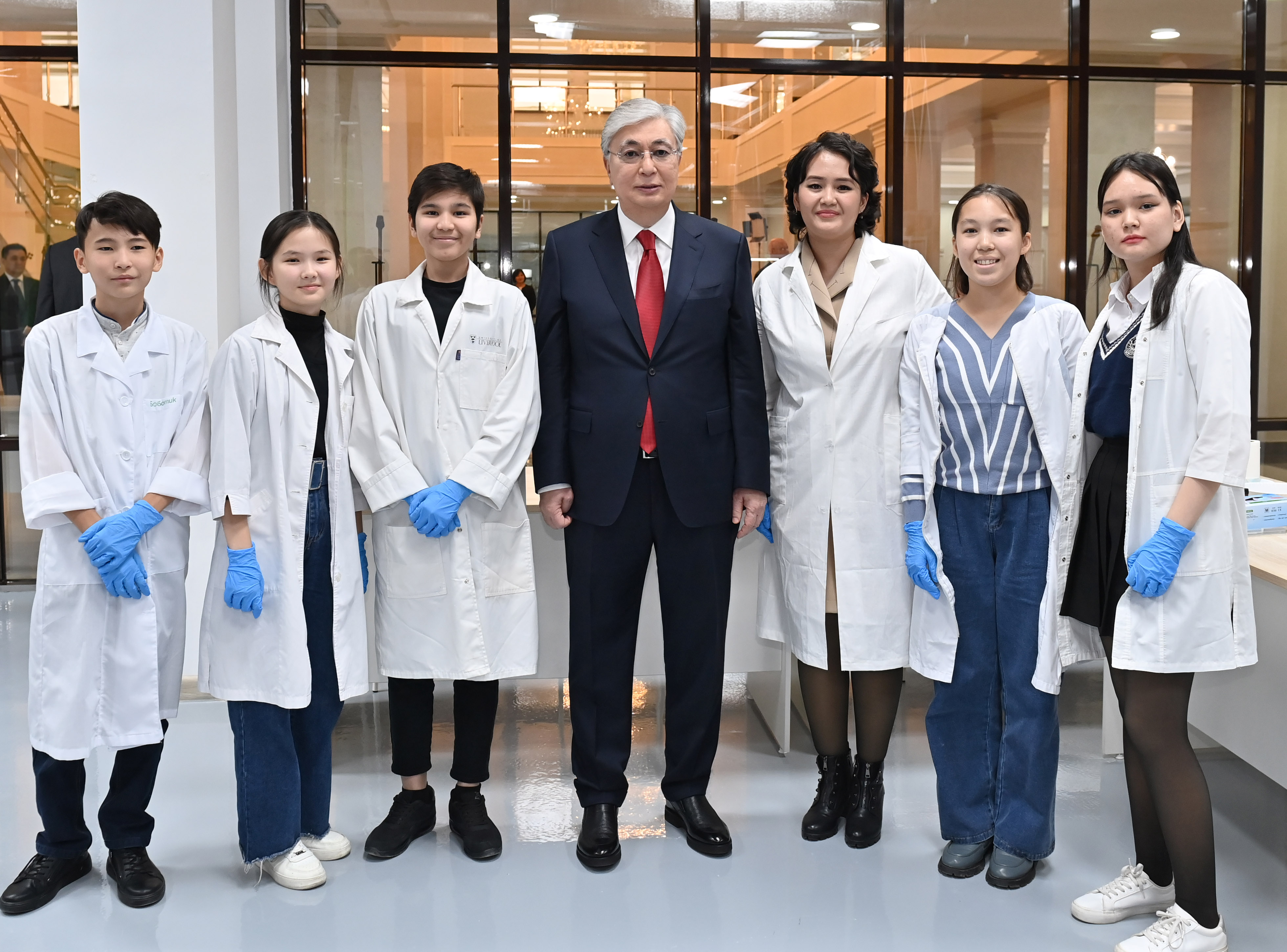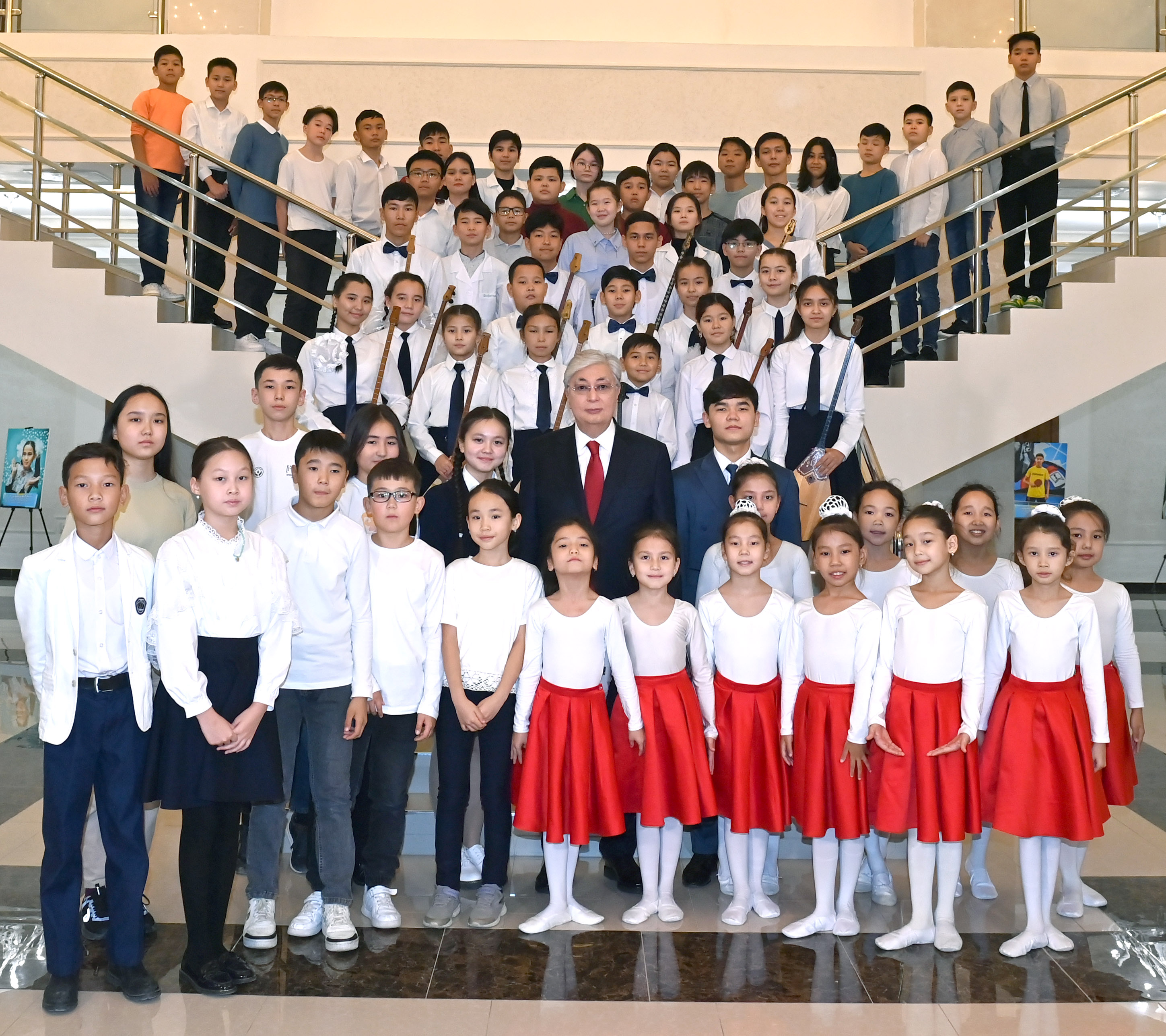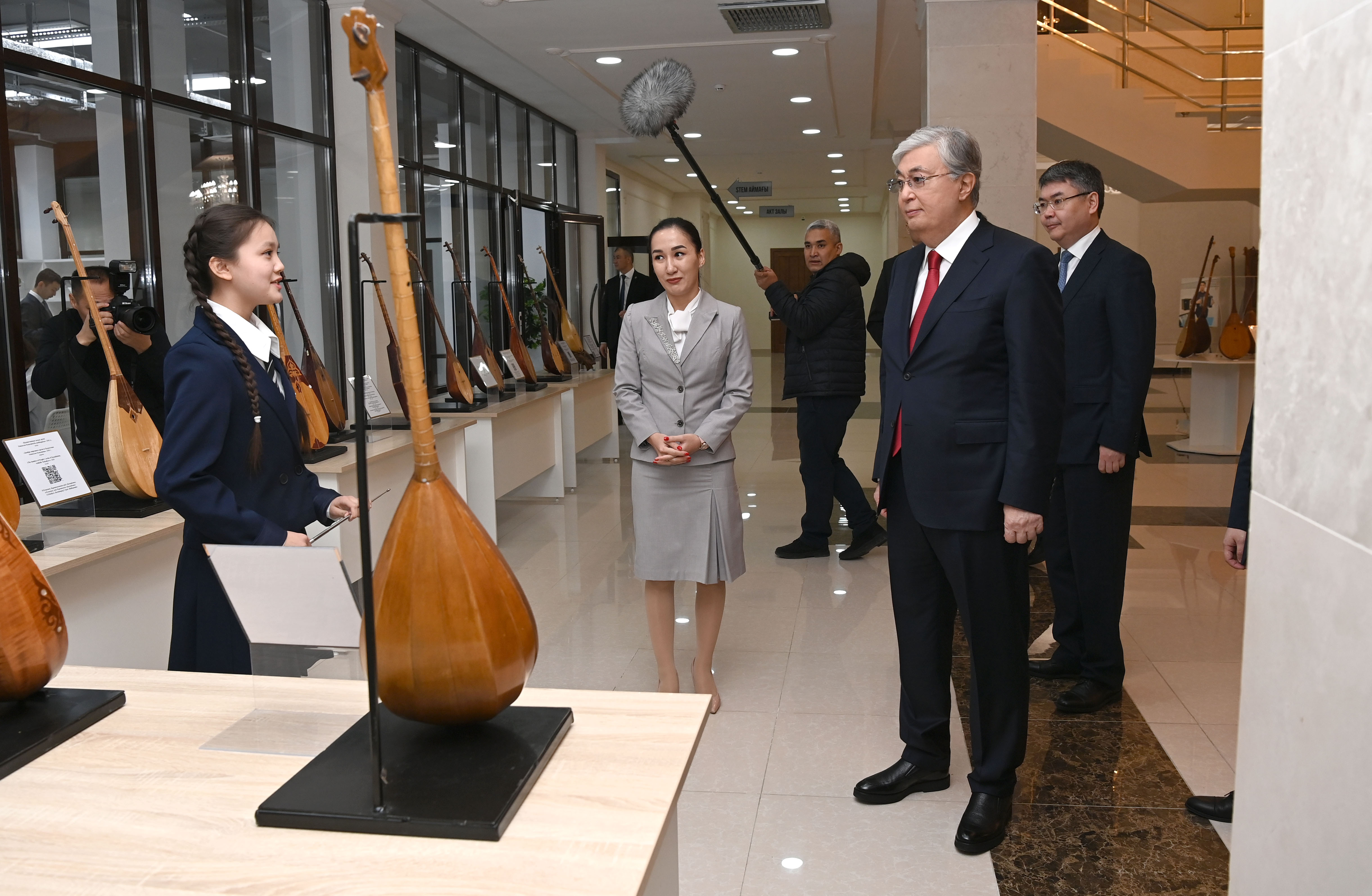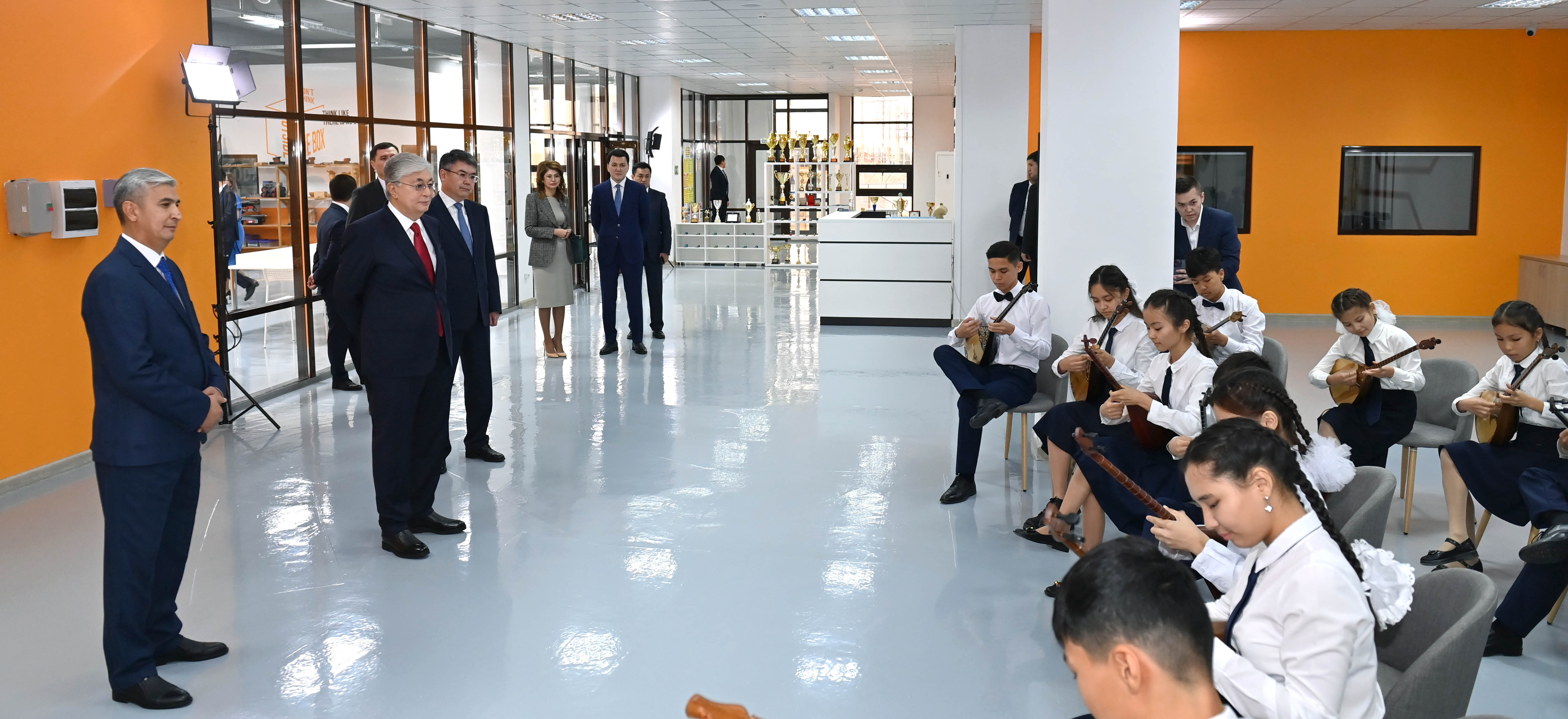 Президент «JasSpace» STEM зертханасында жасалған жобалармен, бұйымдармен танысты. Сондай-ақ бір топ жас домбырашы Құрманғазының «Балбырауын» күйін орындады.