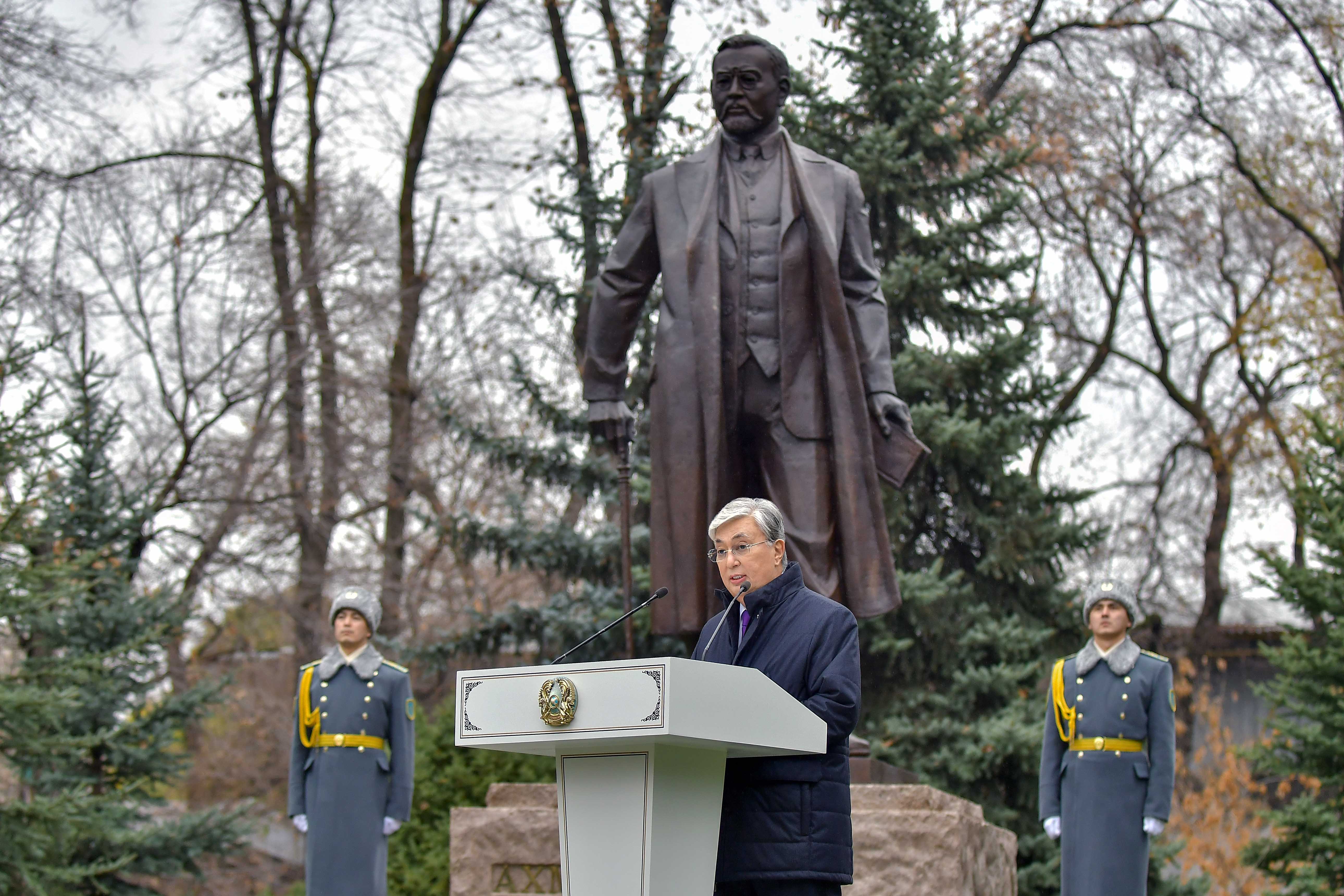 – Қостанай қаласындағы әуежайға Ахмет Байтұрсынұлының есімі берілді. Торғайда Міржақып Дулатұлы екеуіне ескерткіш орнатылып, қос алыптың әдеби музейі толық жаңғыртылды. Былтыр осы Алматыдағы мұражайы мемлекет меншігіне қайтарып алынғанын білесіздер. Енді, міне, қала төрінде сәулетті ескерткіші бой көтерді. Осының бәрі – халқымыздың ұлт ұстазына деген ерекше құрметінің белгісі. Кезінде Мұхтар Әуезов «Ахаңның қазақ баласына істеген еңбегін, өнер, білім, саясат жолындағы қажымаған қайратын біз ұмытсақ та, тарих ұмытпайды» деген болатын. Ахмет Байтұрсынұлының ұрпаққа аманат еткен мол мұрасы – қазақтың баға жетпес асыл қазынасы. Бүгінде Ахметтану ғылымына бет бұрып, ғалымның шығармашылығын зерттеп жүрген жастардың қатары көбейіп келеді.  Бұл – ұлы тұлғаның ұлағатты жолы ешқашан үзілмейді деген сөз, – деді Қасым-Жомарт Тоқаев.