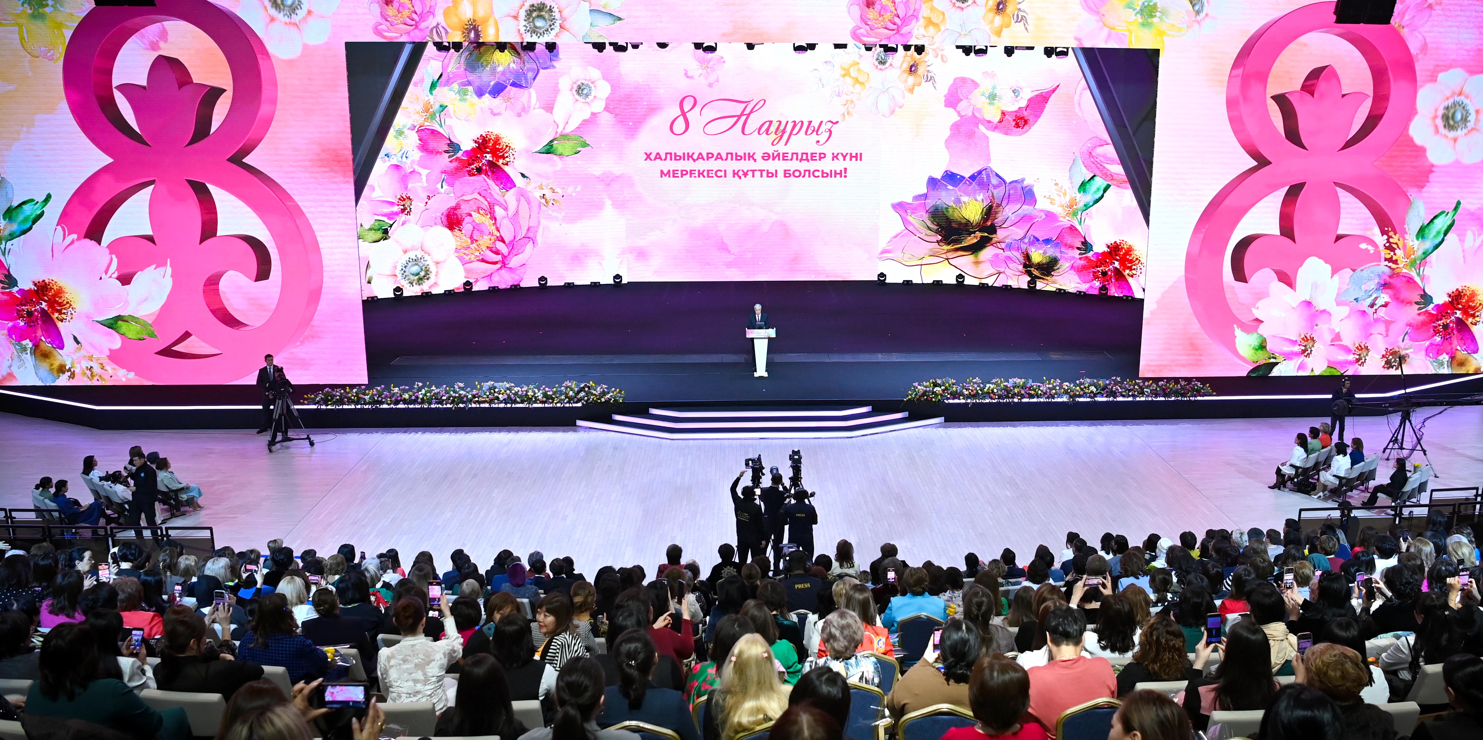 Мемлекет басшысы Қасым-Жомарт Тоқаев 8 наурыз – Халықаралық әйелдер күніне арналған мерекелік іс-шараға қатысып, салтанатты жиында сөз сөйледі.