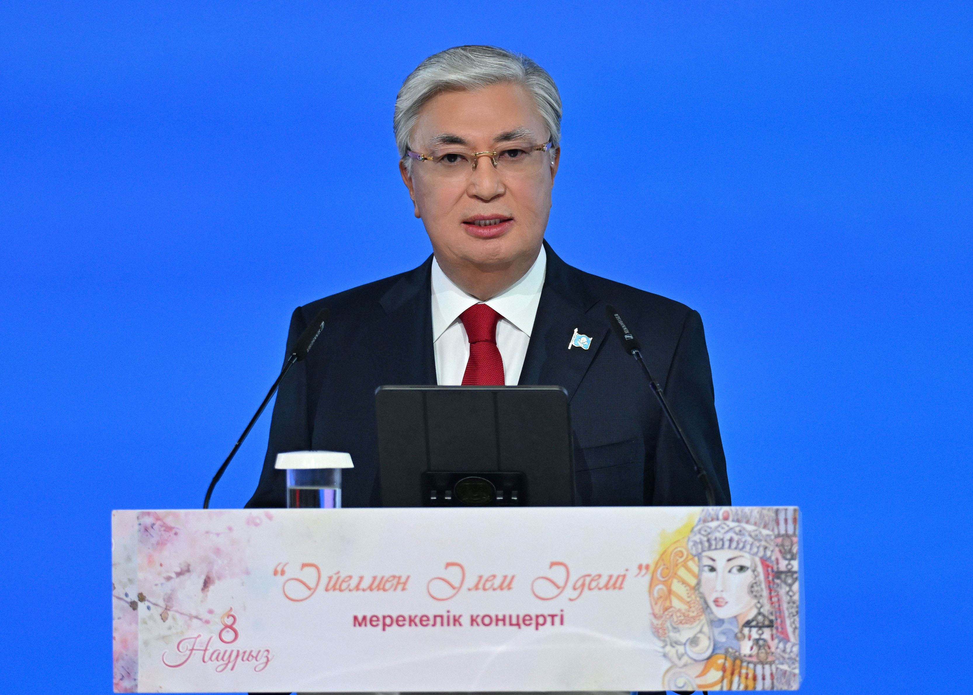 – 8 наурыз – көктем мерекесі. Бұл – сұлулықтың, мейірім мен жылулықтың символына айналған мереке. Біз ер-азамат болып, сіздерді жоғары бағалаймыз, құрметтейміз және жақсы көреміз. Нәзік жандарға деген біздің ықыласымыз, ілтипатымыз әрдайым ерекше. Жалпы, әйелді құрметтей білген қоғамды мәдениетті, өркениетті қоғам деуге болады. Дана халқымыз қашанда анасын ардақтап, аруларын сыйлай білген. Қыздарын қадірлеп, төріне шығарған. Бұл – ежелден қанымызға сіңген асыл қасиет, – деді Қасым-Жомарт Тоқаев.