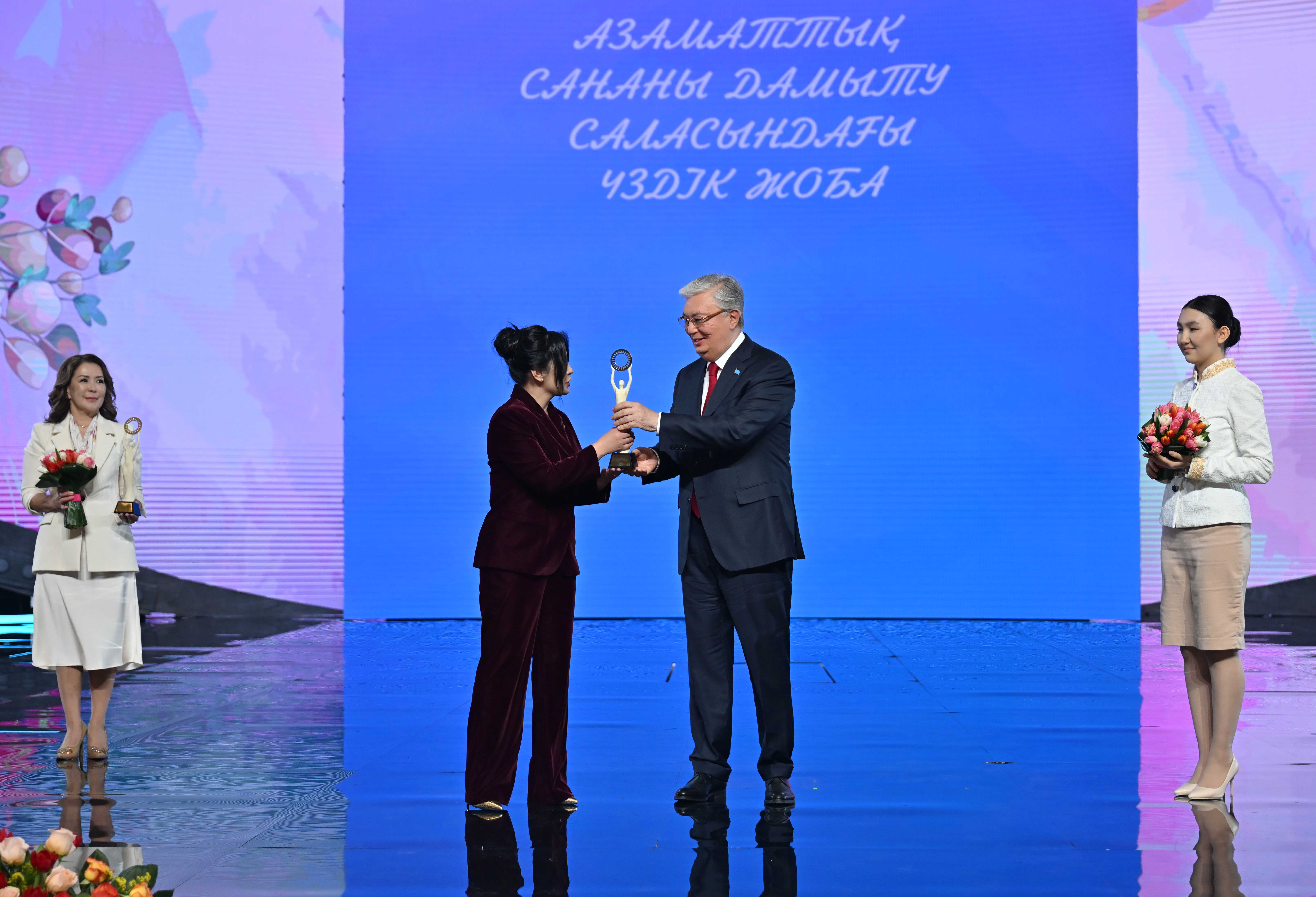 Салтанатты жиында Мемлекет басшысы «Ару-Ана» үздік әйелдер жобасы байқауының жеңімпаздарын марапаттады. Бұл жолы марапат түрлі салада әлеуметтік маңызы бар жобаларды жүзеге асырып, азаматтық қоғамның дамуына елеулі үлес қосып жүрген қыз-келіншектерге алты номинация бойынша табысталды.
