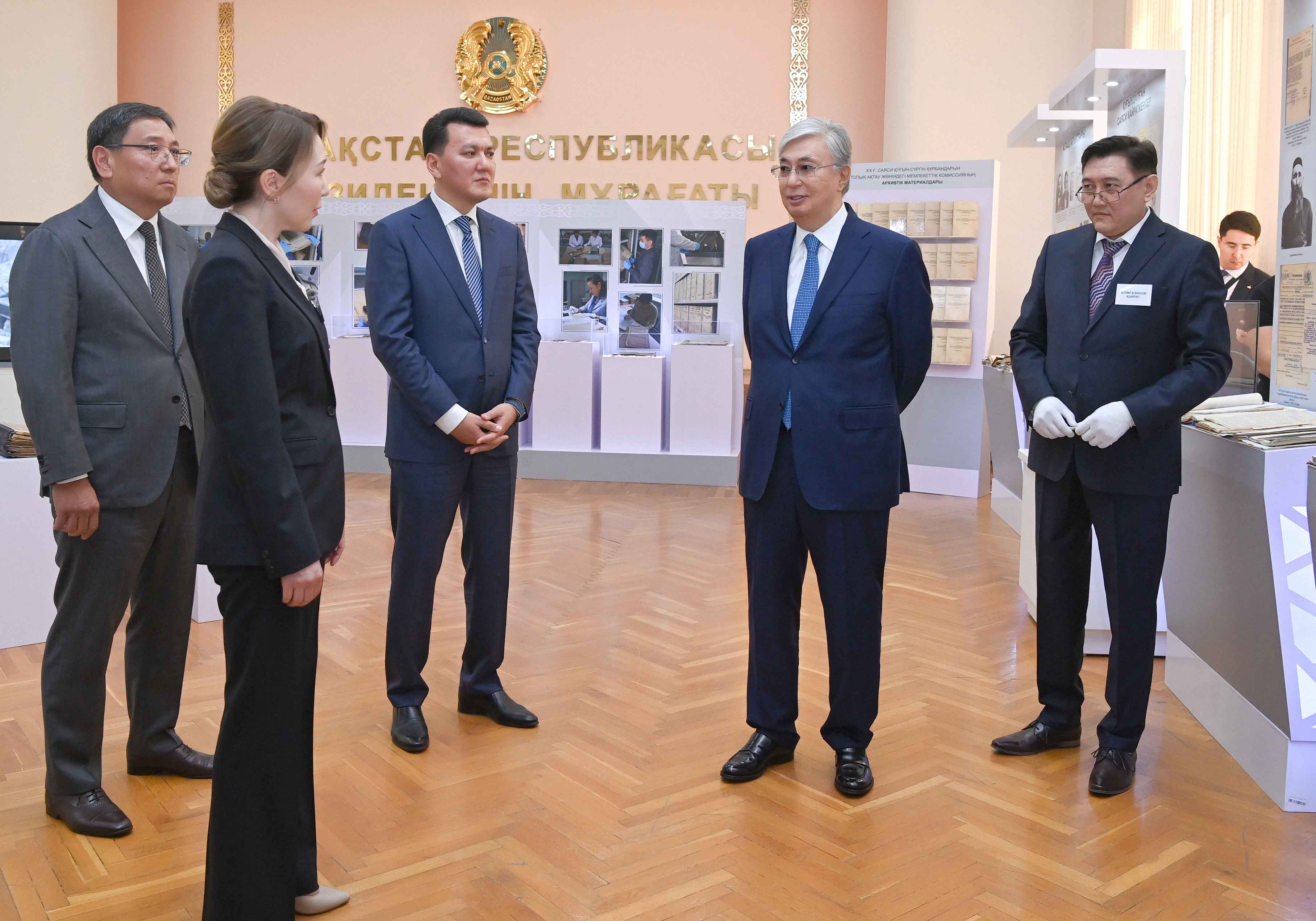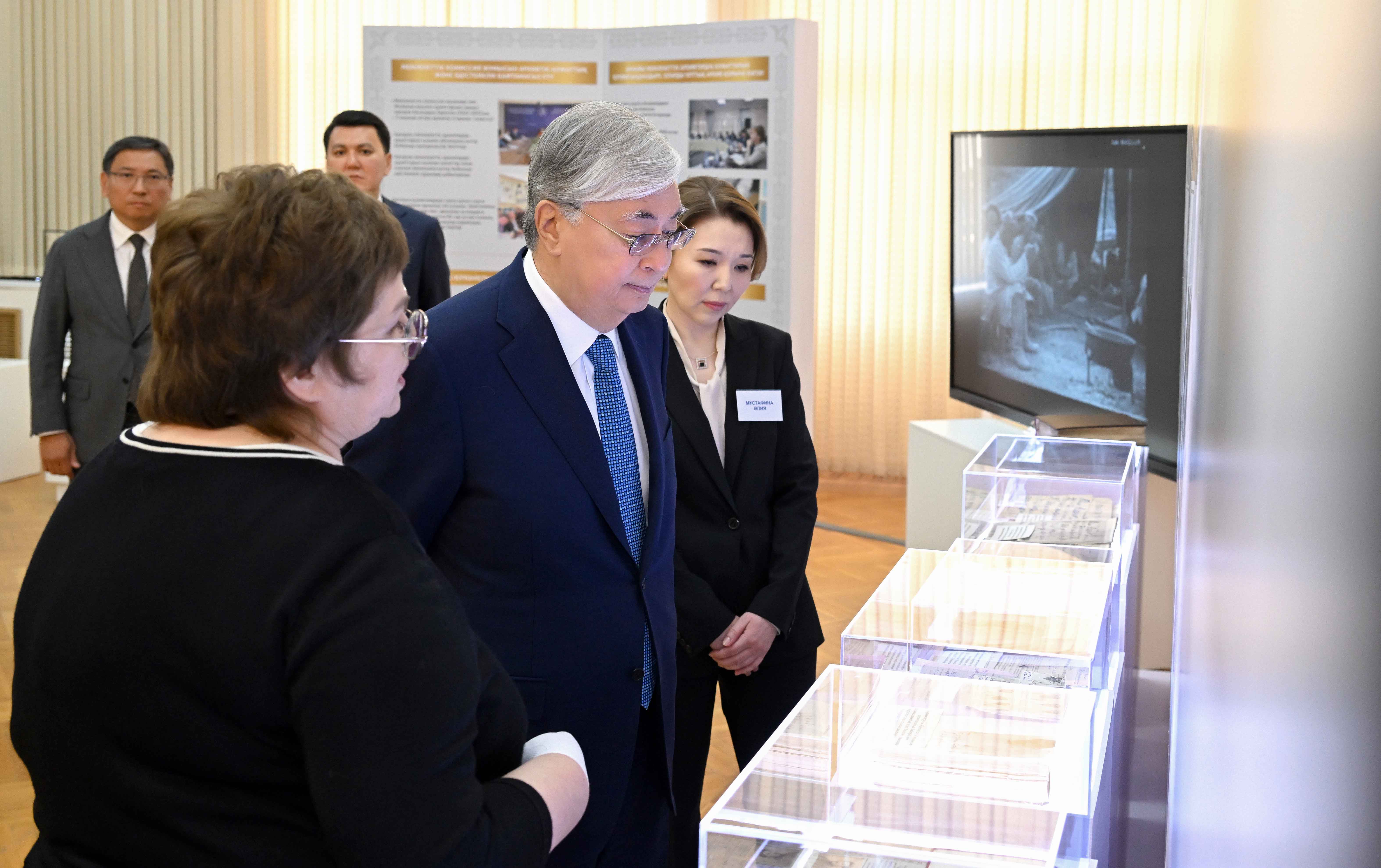 Қасым-Жомарт Тоқаев орталықта құжаттарды сақтау шартымен, мұрағат құжаттарын қалпына келтіру және микрофильмдеу кабинеттерінің жұмысымен танысты. Сонымен қатар Мемлекет басшысына өткен ғасырдағы саяси қуғын-сүргін тарихына қатысты материалдар бойынша жүргізілген жұмыстардың экспозициясы көрсетілді.