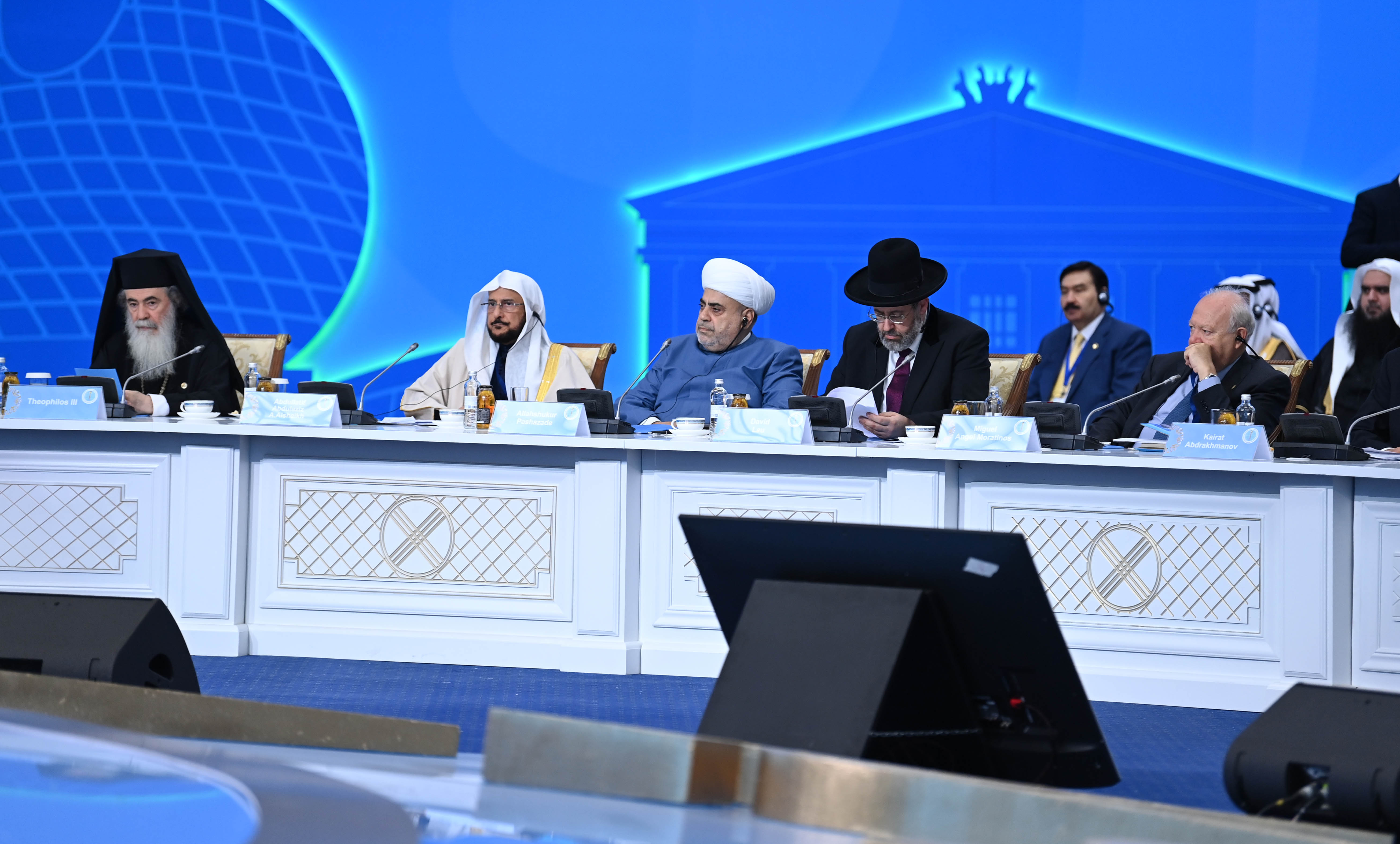 Әлемдік және дәстүрлі діндер көшбасшыларының VII съезі дұға жасау үшін бір минуттық үнсіздіктен басталды.