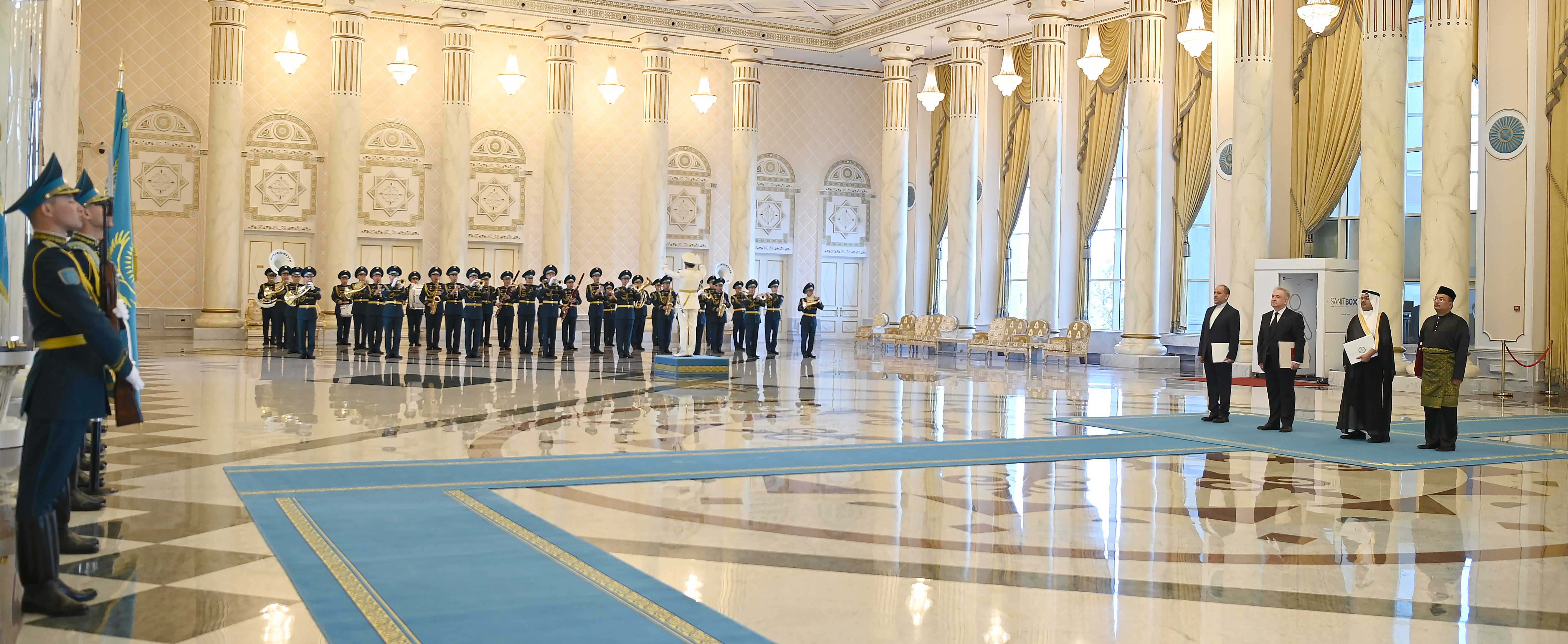 «Ақорда» резиденциясында төрт мемлекеттің төтенше және өкілетті елшілерінің Қазақстан Президентіне сенім грамоталарын тапсыру рәсімі өтті. Сенім грамоталарын Малайзия елшісі Мохамад Адли бин Абдулла, Сауд Арабиясы Корольдігінің елшісі Файсал бен Ханиф әл-Кахтани, Түркия Республикасының елшісі Мустафа Капуджу және Иран Ислам Республикасының елшісі Әли Акбар Джоукар тапсырды. Мемлекет басшысы елшілерді Қазақстандағы дипломатиялық миссияларының ресми түрде басталуымен құттықтады. Қасым-Жомарт Тоқаев дипломаттар өз міндеттерін орындау кезінде Қазақстан Үкіметі оларға жан-жақты қолдау көрсететінін атап өтіп, еліміздің аталған мемлекеттермен саяси, экономикалық байланыстарды қоса алғанда, барлық салада тығыз қарым-қатынас орнатқан стратегиялық серіктес екенін жеткізді. Сонымен қатар Қазақстан халықаралық ынтымақтастыққа әрдайым ашық екенін айтты. Рәсім соңында Президент елшілердің алдағы қызметіне табыс тілеп, олардың мемлекеттерінің басшыларына ізгі тілегі мен сәлемін жолдады.