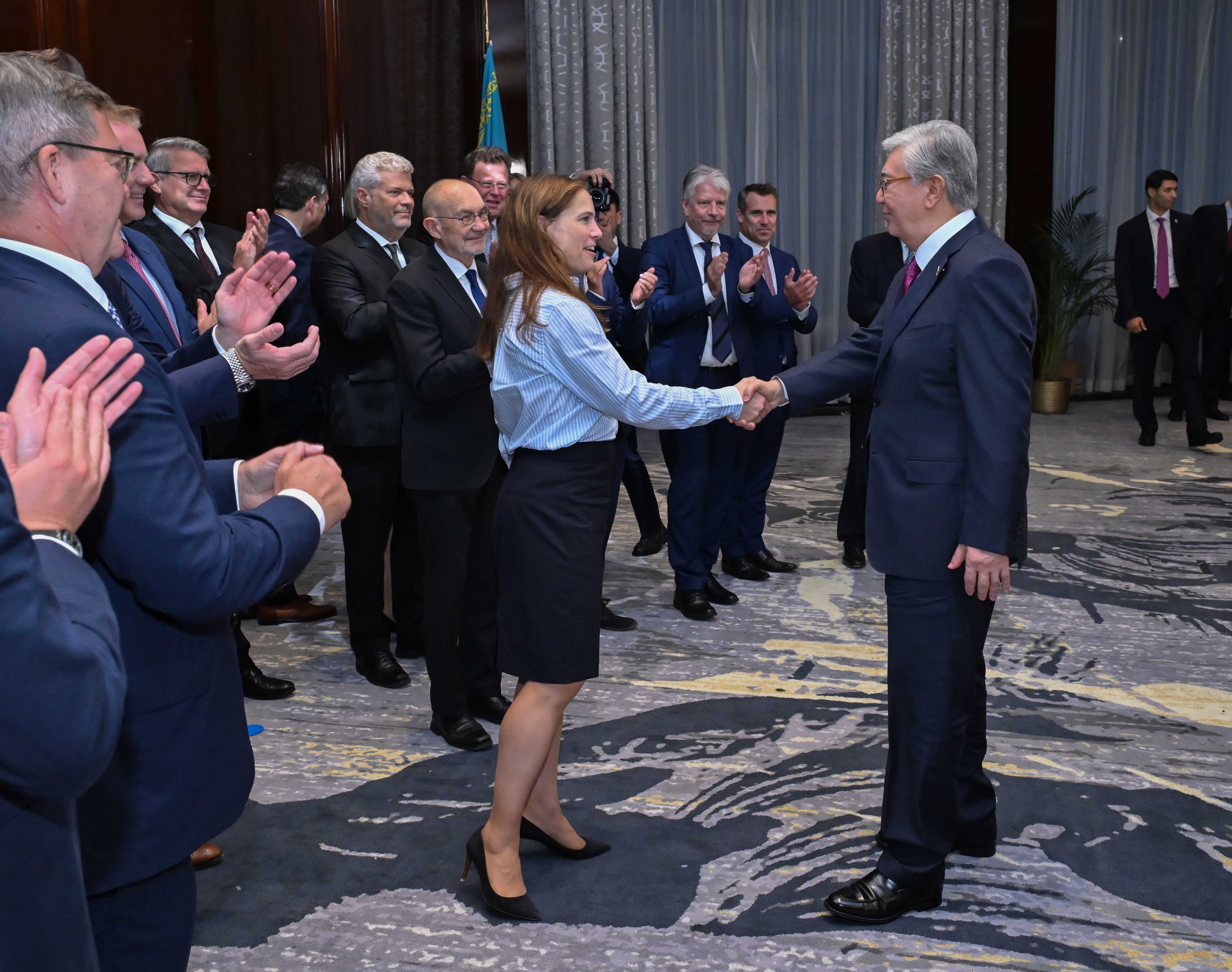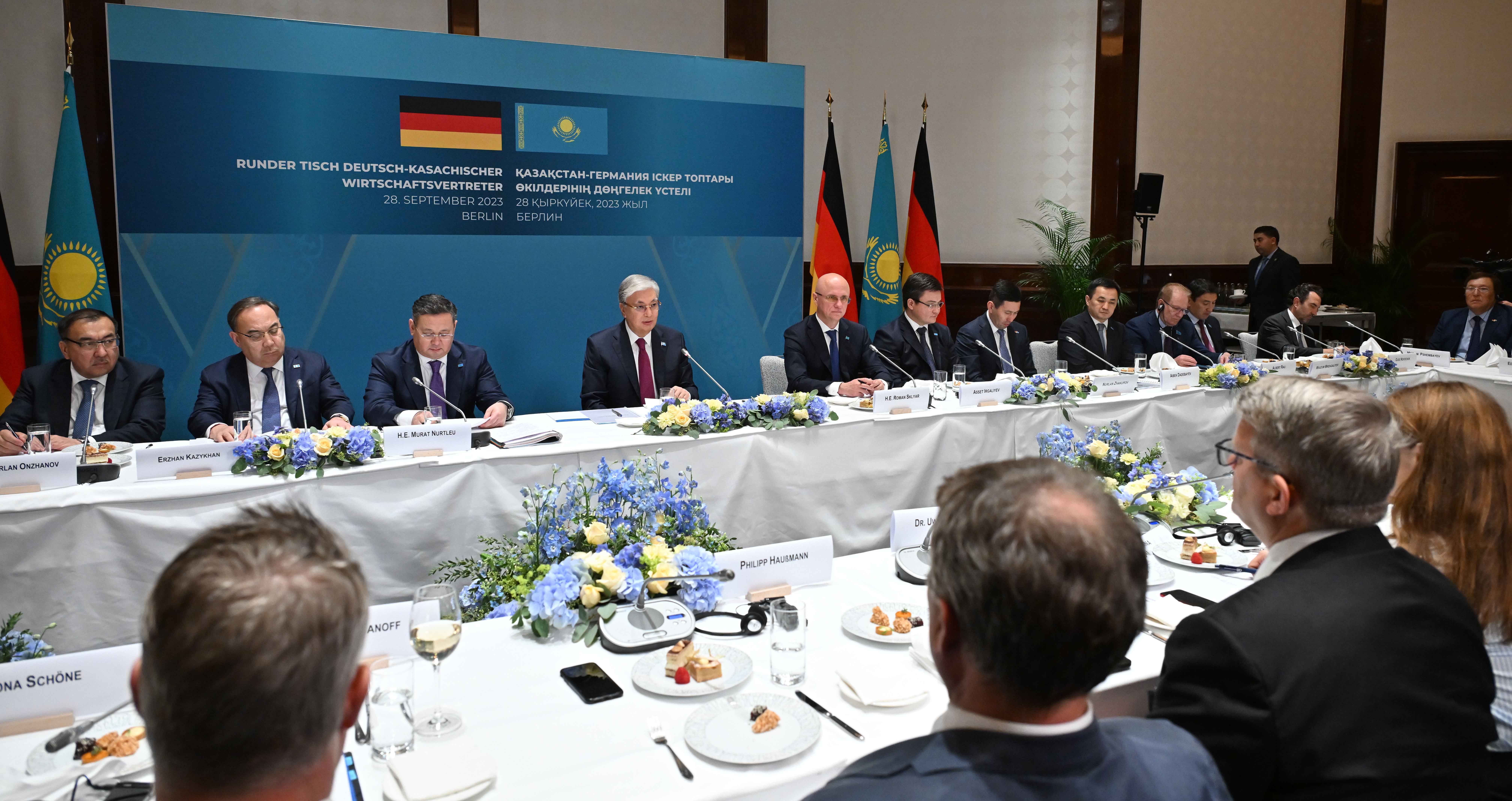 Қасым-Жомарт Тоқаев Германия бизнесмендерін Қазақстан экономикасын әртараптандыруға, жаңа өндіріс орындарын ашуға және озық неміс технологияларын енгізуге бағытталған жобаларды жүзеге асыруға белсенді қатысуға шақырды.