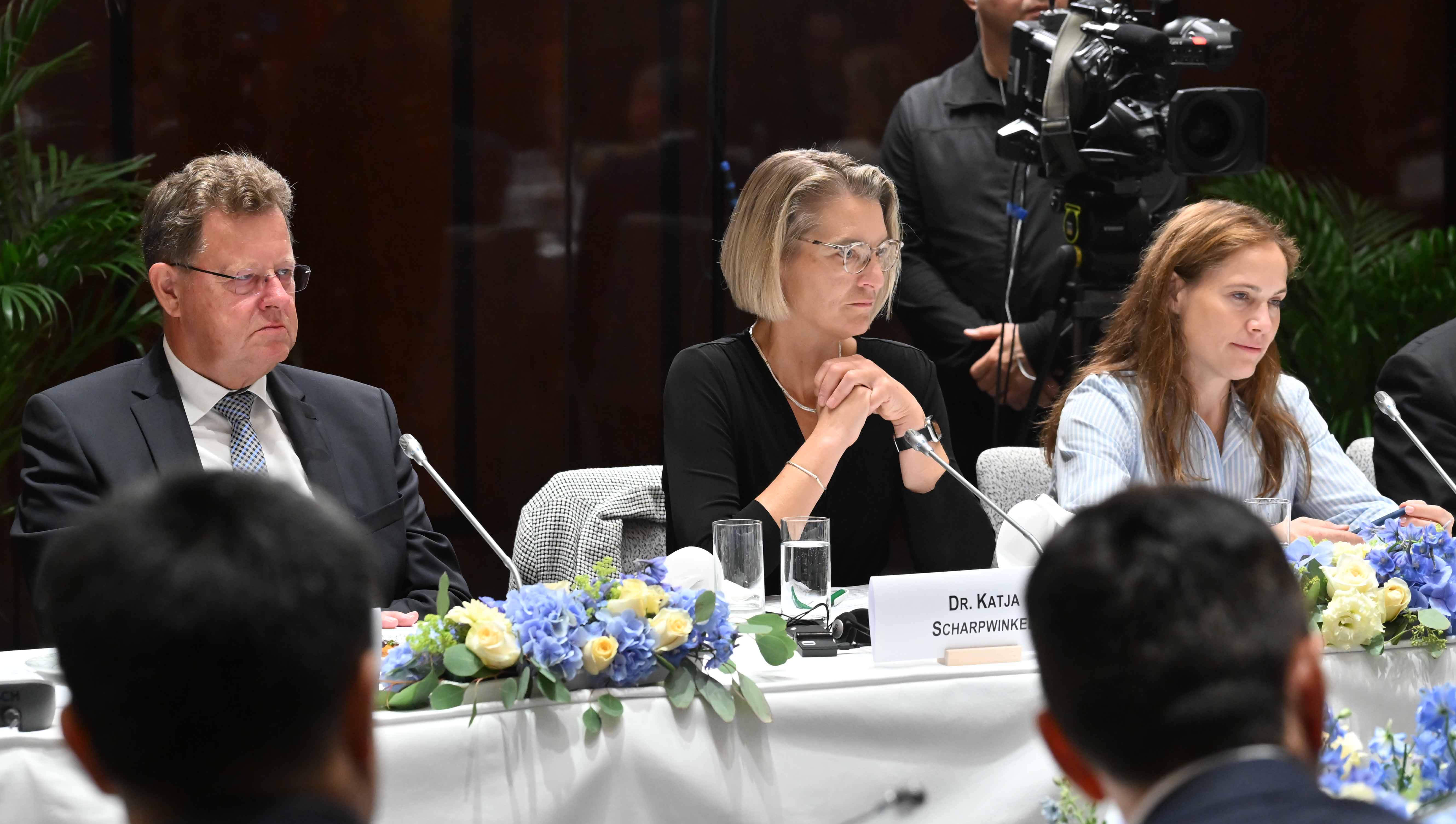 Жиын барысында Германия экономикасы Шығыс комитетінің басқарма төрағасы Катрина Клаас-Мюльхойзер, Германия өнеркәсібі федералдық одағының (BDI) басқарма мүшесі Вольфганг Нидермарк, сондай-ақ Deutsche Bahn, Knauf, Wilo, BASF, Rhenus, Svevind және басқа да бірқатар ірі компанияның топ-менеджерлері баяндама жасады. Олар экономиканың нақты салалары бойынша Қазақстанмен арадағы ынтымақтастықтың қазіргі жағдайы мен даму перспективалары туралы ой-пікірлерін ортаға салды.
