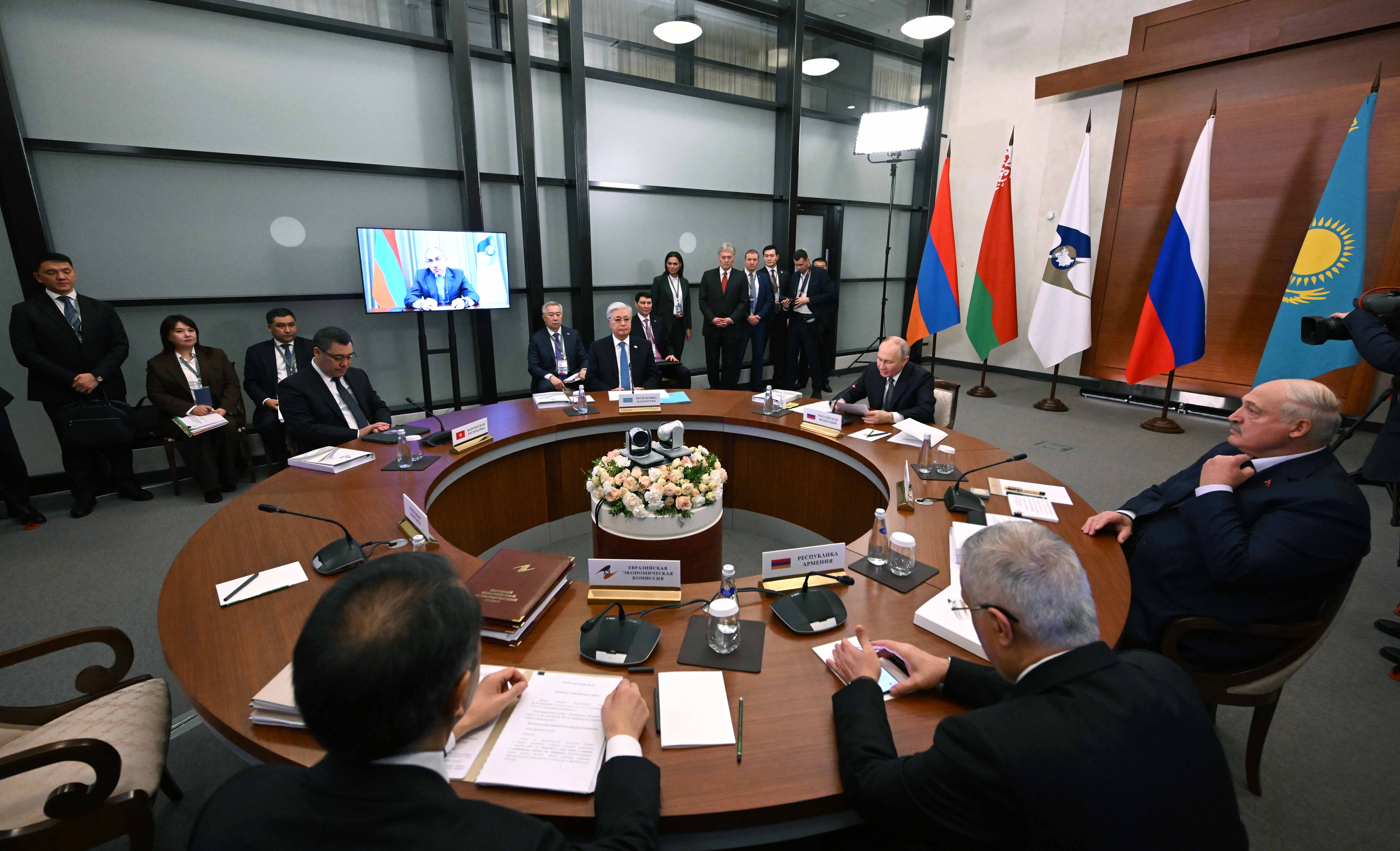Ресей, Ленинград облысы Мемлекет басшысы Ленинград облысында өткен Жоғары Еуразиялық экономикалық кеңестің (ЖЕЭК) кезекті отырысына қатысты. Саммитке Ресей Федерациясының Президенті Владимир Путин, бейнебайланыс арқылы Армения Премьер-министрі Никол Пашинян, Беларусь Президенті Александр Лукашенко, Қырғызстан Президенті Садыр Жапаров, сондай-ақ Еуразиялық экономикалық комиссия алқасының төрағасы Бақытжан Сағынтаев қатысты. Жиында Еуразиялық экономикалық одақ аясындағы ынтымақтастықтың басым бағыттары мен негізгі міндеттері талқыланды. Сонымен қатар саммит қатысушылары Ұйым қызметінің өзекті мәселелері және жекелеген аспектілері жөнінде пікір алмасты.