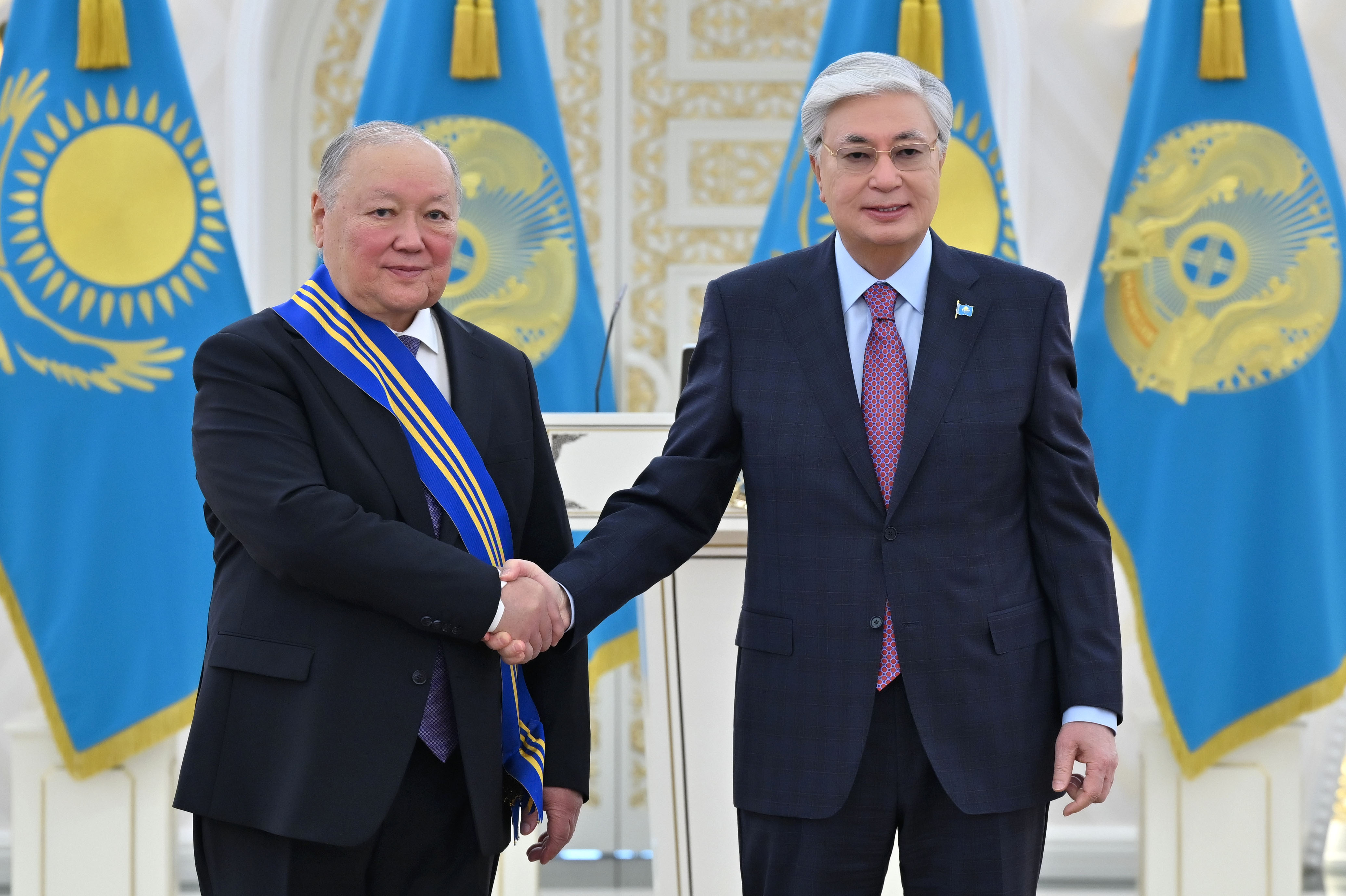 Қасым-Жомарт Тоқаев мемлекет және қоғам қайраткері Равиль Шырдабаевқа «Отан» орденін, Қазақстанның еңбек сіңірген қайраткері Серік Тоқпановқа I дәрежелі «Барыс» орденін салтанатты түрде табыстады. Іс-шарада сөйлеген сөзінде Президент халқымыз Равиль Шырдабаевты егемендік жылдарынан бастап елдік істерге белсене қатысқан әрі мемлекеттігімізді нығайтуға зор үлес қосқан азамат деп айрықша құрметтейтінін айтты. – Әсіресе, мұнай-газ саласын өркендетуге мол еңбек сіңірдіңіз. Сіздің бастамаңызбен бұл сала жаңа кезеңге қадам басты деуге болады. Министр, облыс әкімі, депутат ретінде ұлт мүддесіне адал қызмет еттіңіз. Дипломатия саласында жұмыс істеп, еліміздің халықаралық беделін нығайтуға атсалыстыңыз. Сондай-ақ сіз – мұнай өндірісіне арналған бірнеше ғылыми еңбектің авторысыз. Халқымыз «Еңбегімен ер сыйлы» деген. Сіздің ерен еңбегіңіз – өскелең буын үшін үлгі-өнеге, – деді Мемлекет басшысы. Сонымен қатар Президент білікті дәрігер, «алтын қолды хирург» ретінде Серік Тоқпановтың саналы ғұмырын ұлт саулығы үшін еңбек етуге арнағанына тоқталды. – Денсаулық сақтау жүйесінде елу жылдан астам уақыт бойы қызмет етіп келесіз. Дәрігер болу – мамандыққа адал болу деген сөз. Бұл – жүгі ауыр, күрделі жұмыс. Сіз еңбек жолыңызда аса күрделі оталар жасап, мыңдаған адамның өмірін сақтап қалдыңыз. Нағыз жанашыр дәрігер болдыңыз. Қазақстанның медицина ғылымын дамытуға орасан зор үлес қостыңыз. Сіздерге берілетін бүгінгі жоғары мемлекеттік марапат – ел игілігі үшін жасалған табанды еңбектің лайықты жемісі. Бұл – жұртымыздың шынайы ықыласы және зор алғысы, – деді Қасым-Жомарт Тоқаев. Равиль Шырдабаев пен Серік Тоқпанов жоғары мемлекеттік марапаттарға лайық көргені үшін Президентке алғыс айтты.