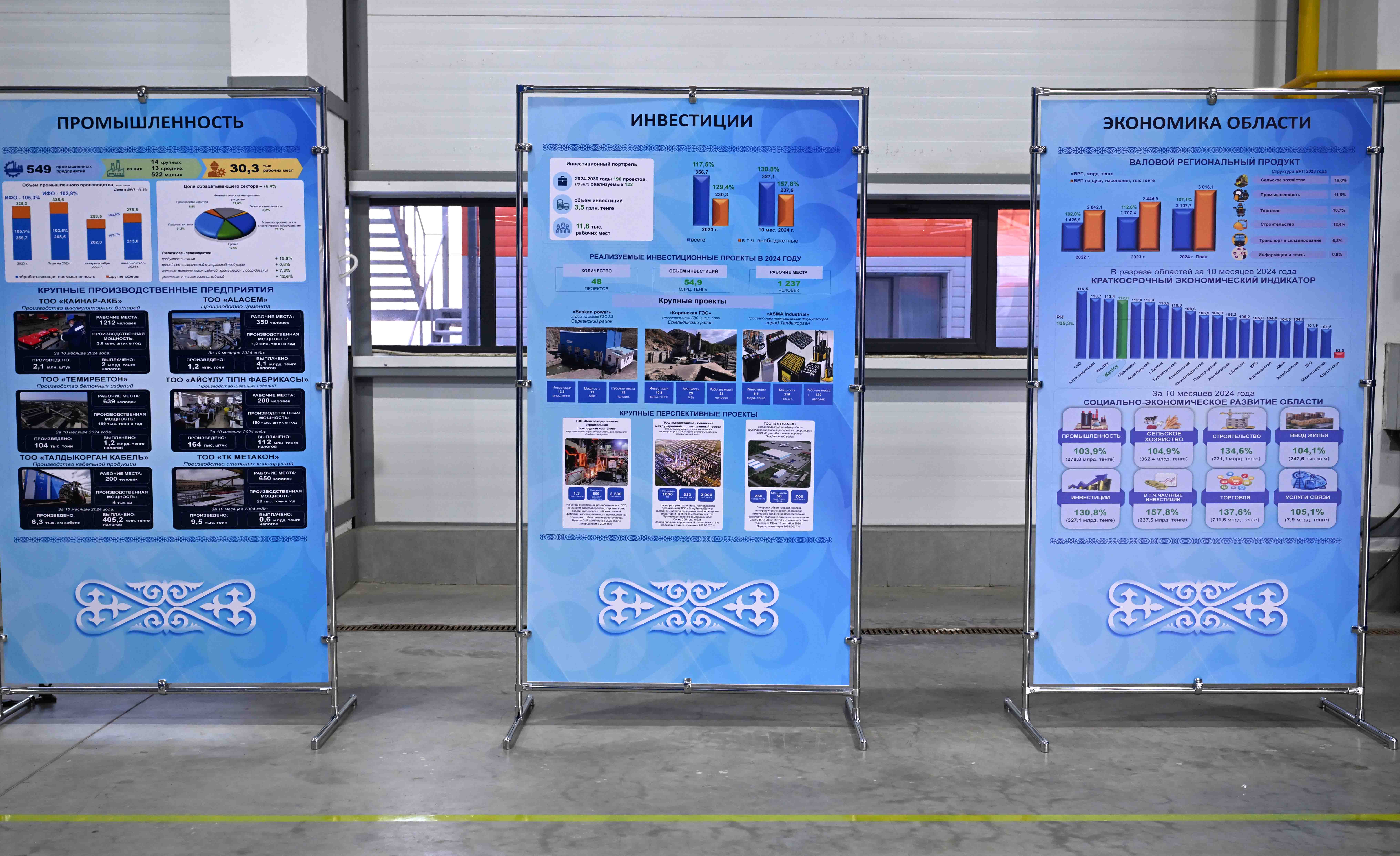 Жыл басынан бері 1,3 есе өсіммен 327,1 миллиард теңге инвестиция тартылған. Осы ретте жеке инвестициялар саны 1,6 есе өскен. Бейбіт Исабаев 2024-2030 жылдарға арналған құны 3,5 триллион теңге болатын инвестициялық портфель қалыптастырылғанын жеткізді. Оның аясында 190 жоба қолға алынып, 11,8 мыңнан астам жұмыс орны ашылады. Биыл 54,9 миллиард теңгені құрайтын 48 жоба іске асырылып жатыр.