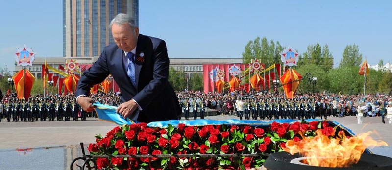Президент Казахстана почтил минутой молчания память погибших в Великой Отечественной войне. Глава государства напомнил, что на фронт было отправлено 1 млн. 800 тыс. казахстанцев, из которых почти половина не вернулась.
