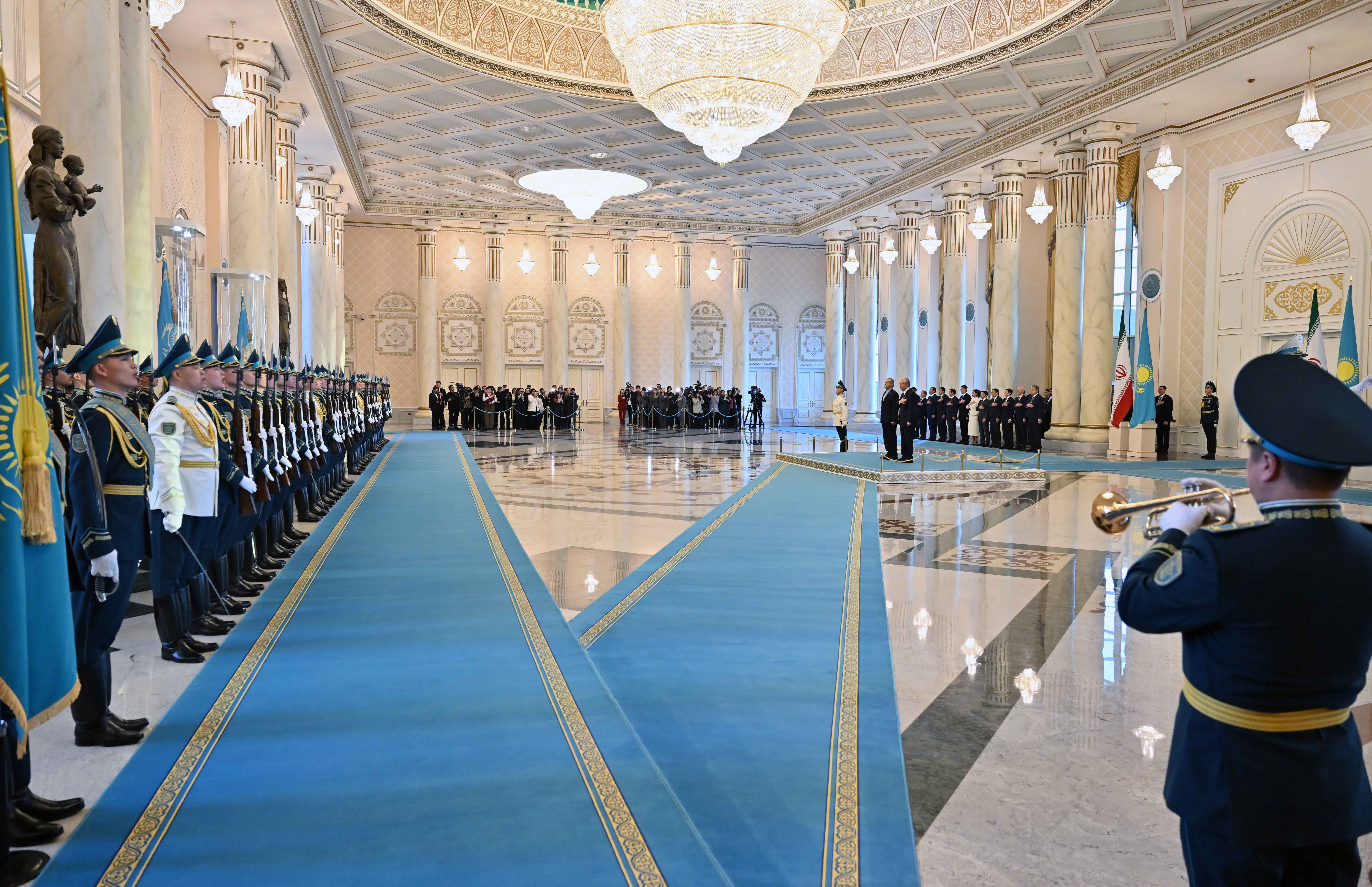 В Акорде состоялась торжественная церемония встречи Президента Исламской Республики Иран Масуда Пезешкиана, прибывшего в Казахстан с официальным визитом.