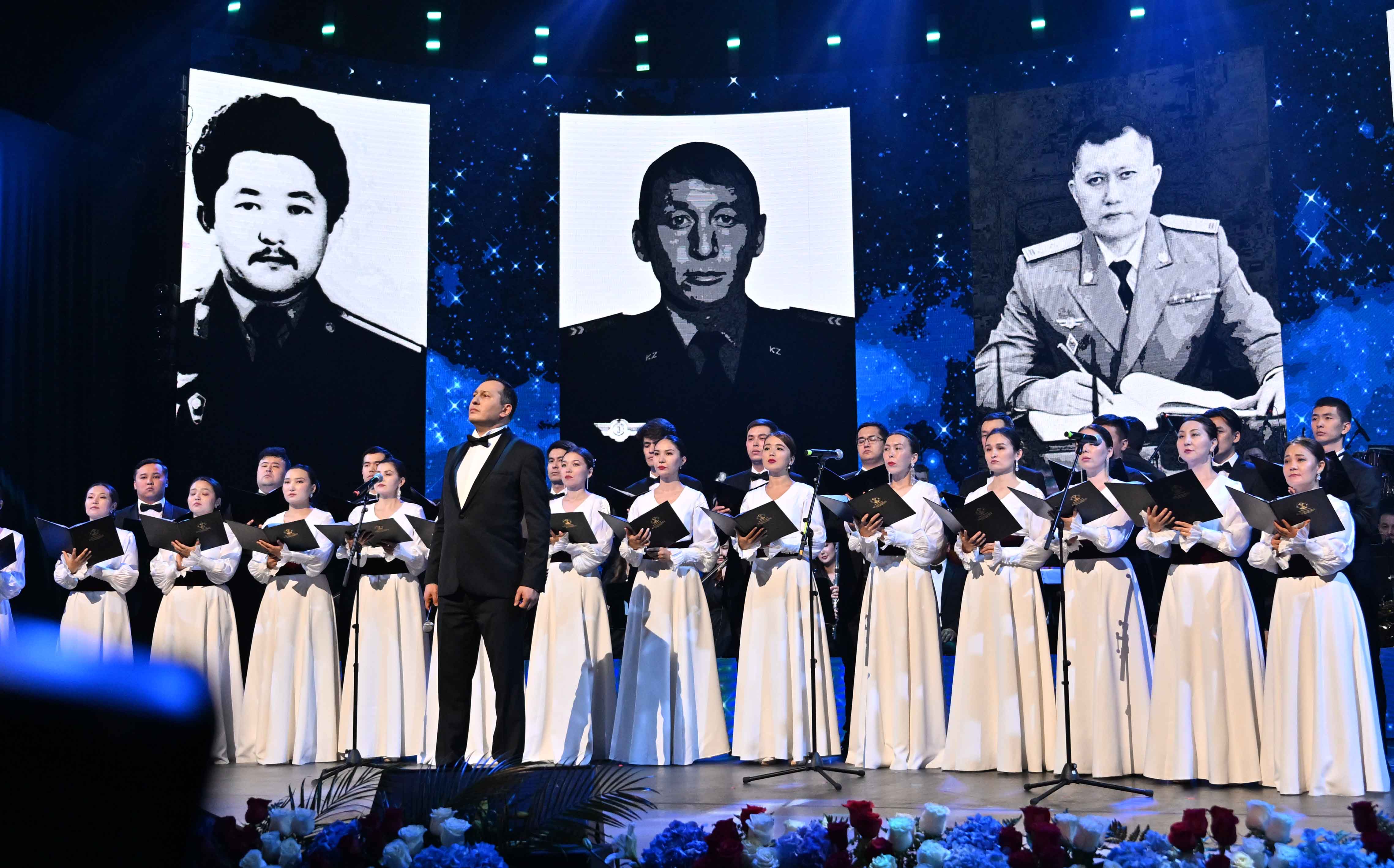 В концертную программу вошли музыкальные произведения отечественных артистов. Трогательной нотой мероприятия стал реквием в память о сотрудниках правоохранительных органов, погибших при исполнении служебного долга. Еще одним теплым моментом представления стало исполнение песни учениками полицейских классов «Жас сақшы».