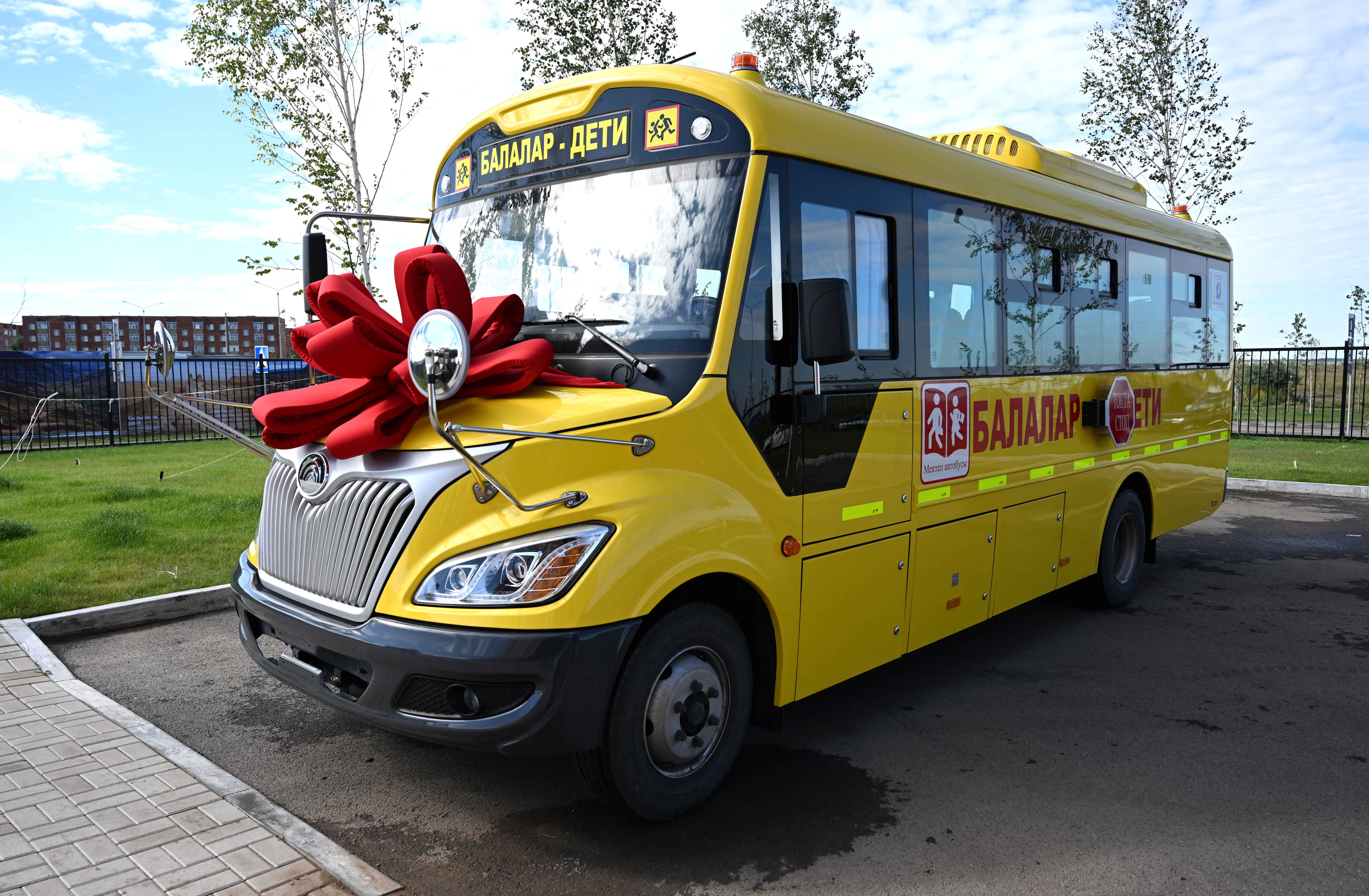 Президент пожелал успехов в новом учебном году, а также подарил свою книгу «Слово об отце» и школьный автобус отечественного производства.