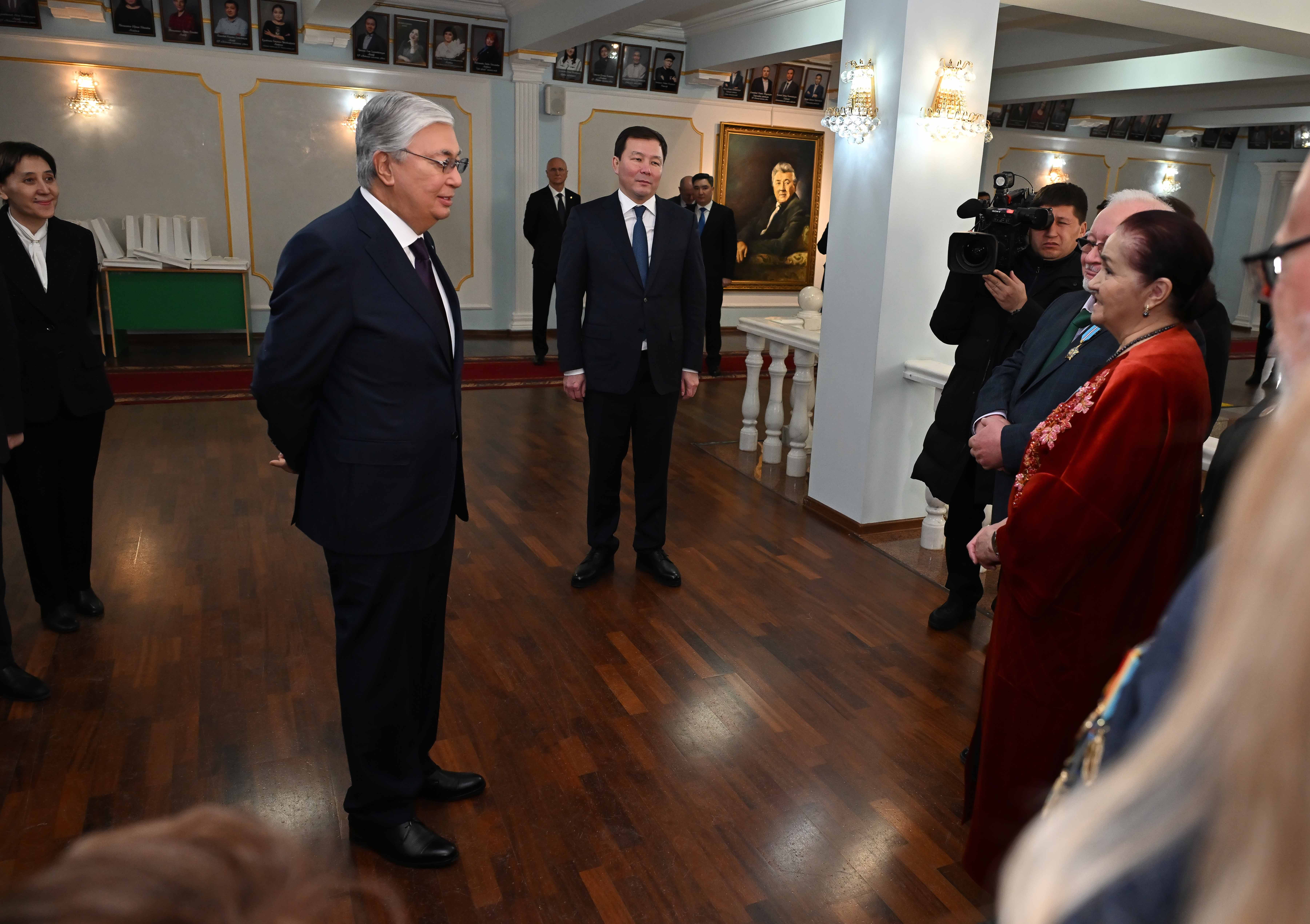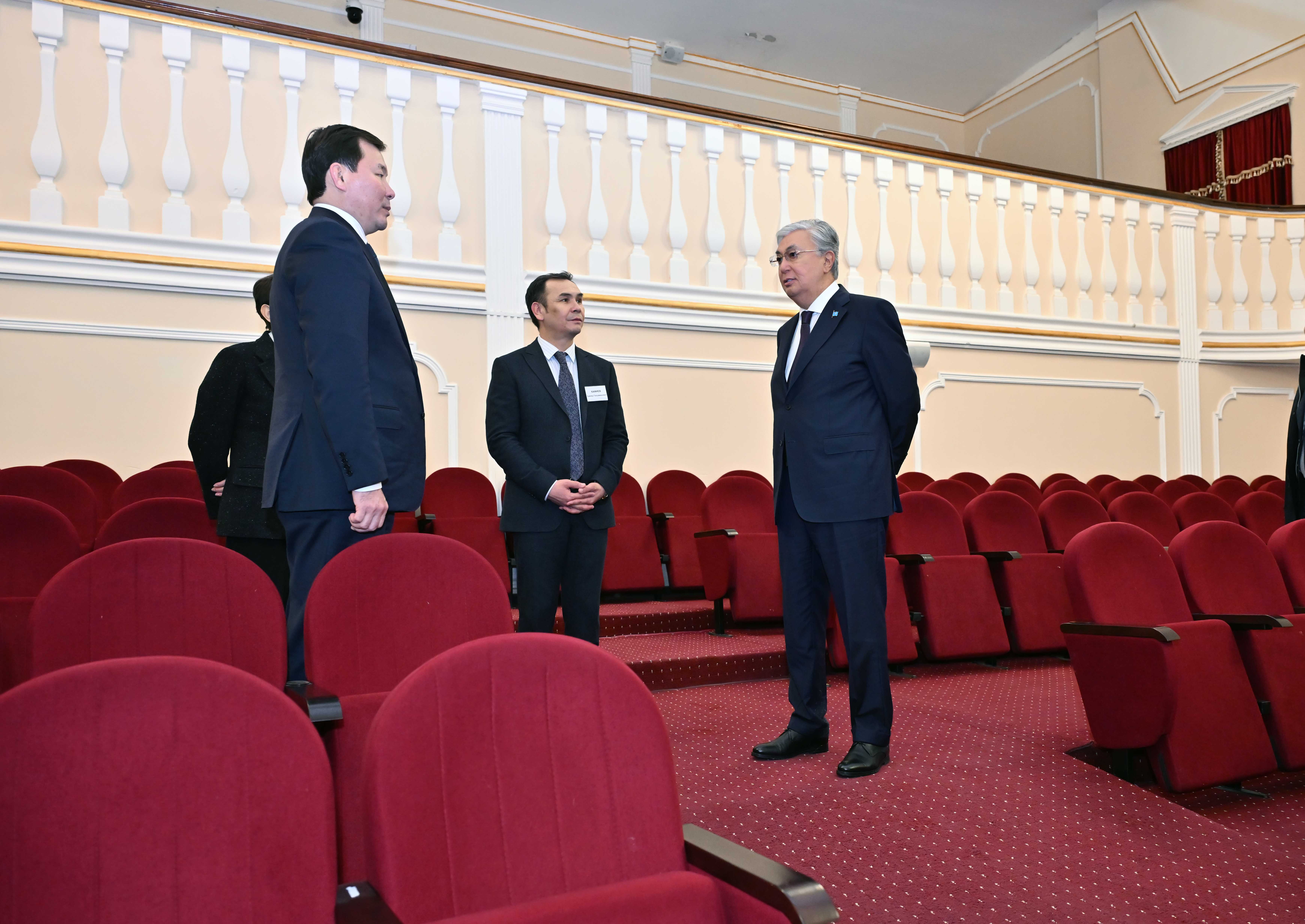 Программу визита продолжило знакомство Касым-Жомарта Токаева с работой Актюбинского областного театра драмы им. Т. Ахтанова.