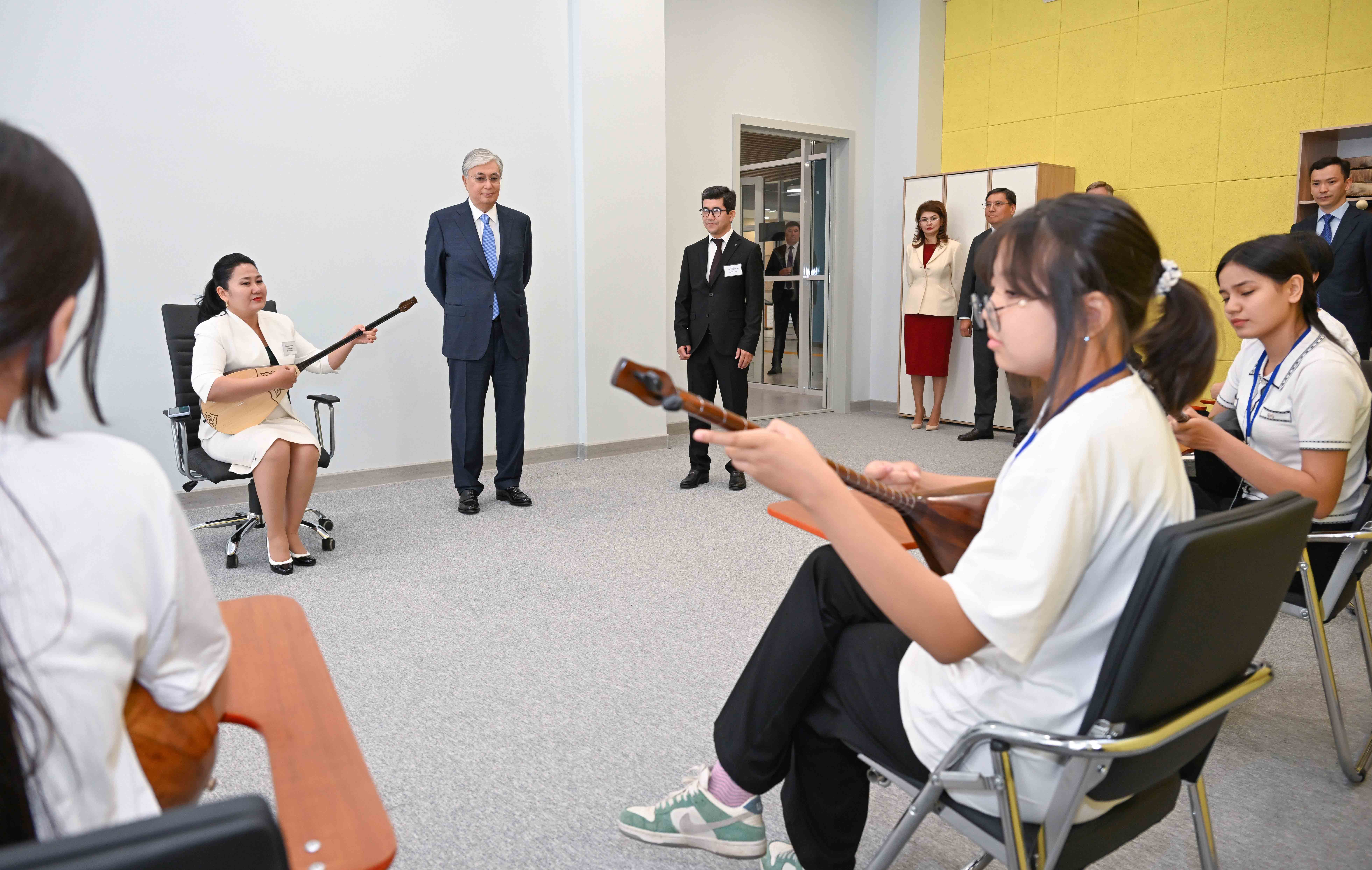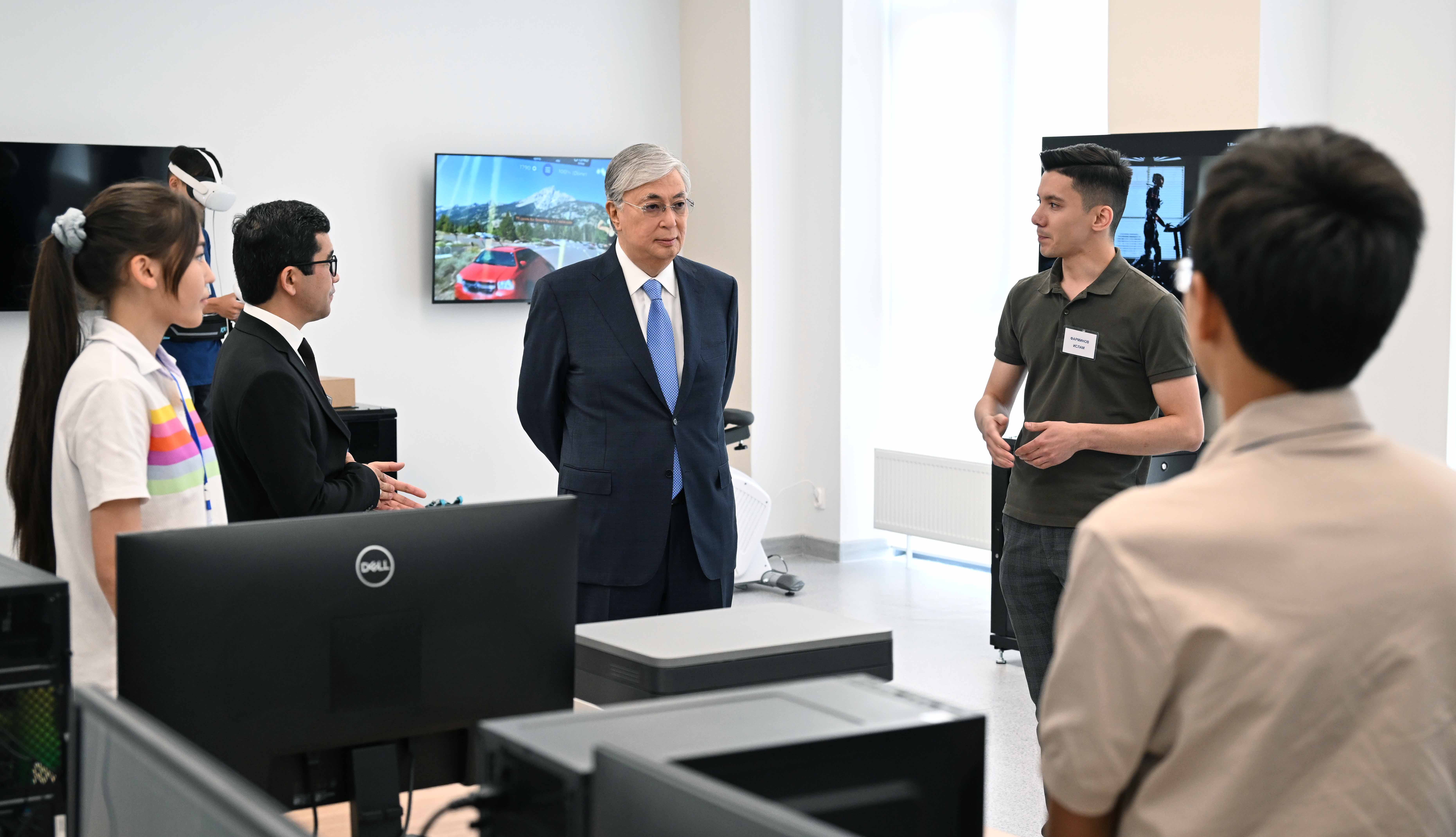 Ознакомившись с работой центра, Касым-Жомарт Токаев побеседовал со школьниками и поздравил их с Днем защиты детей. Он отметил, что подобных центров для формирования творческих способностей, раскрытия таланта детей, должно быть как можно больше по стране.