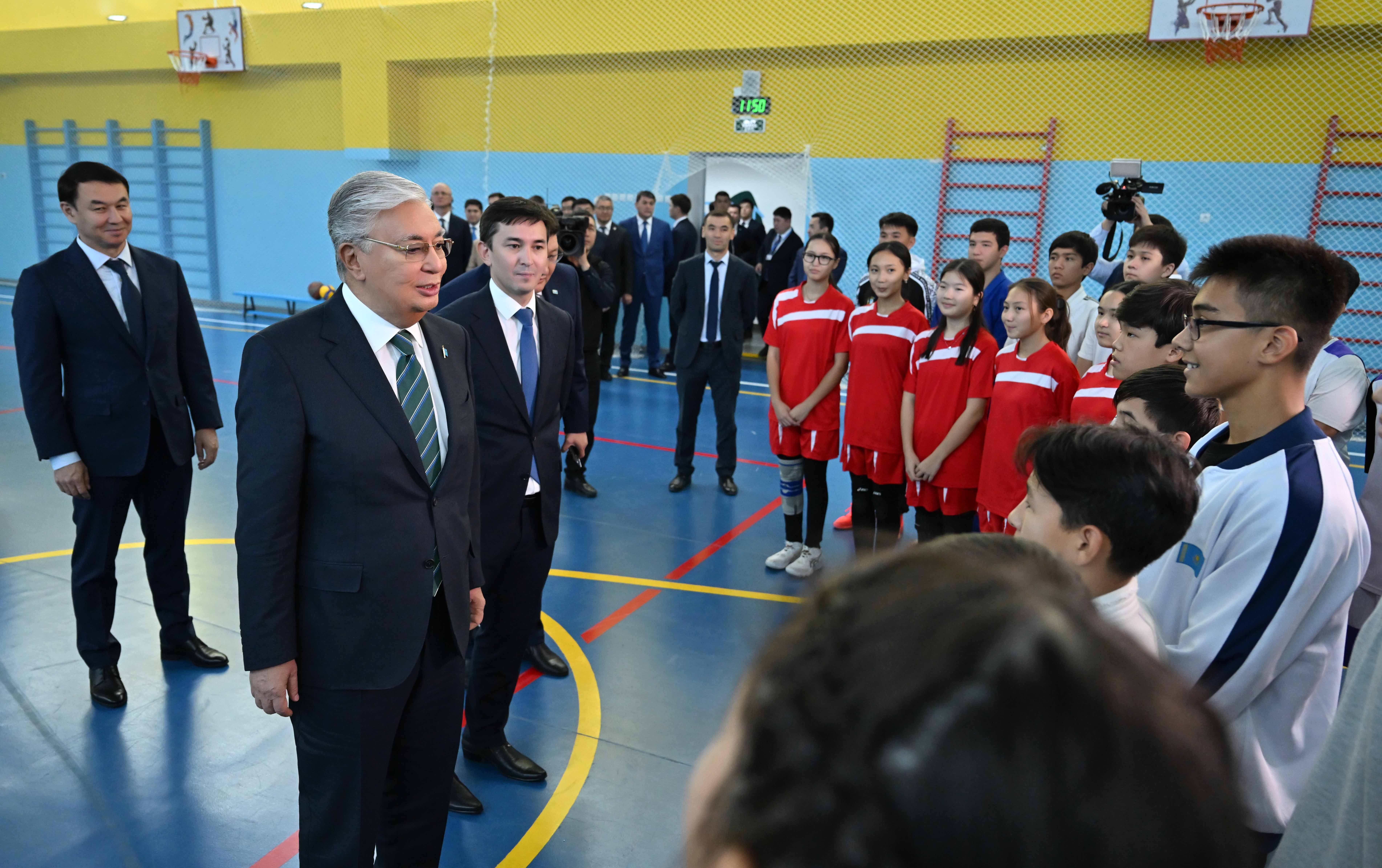 Президент осмотрел учебные кабинеты и спортивный зал, побеседовал с детьми.