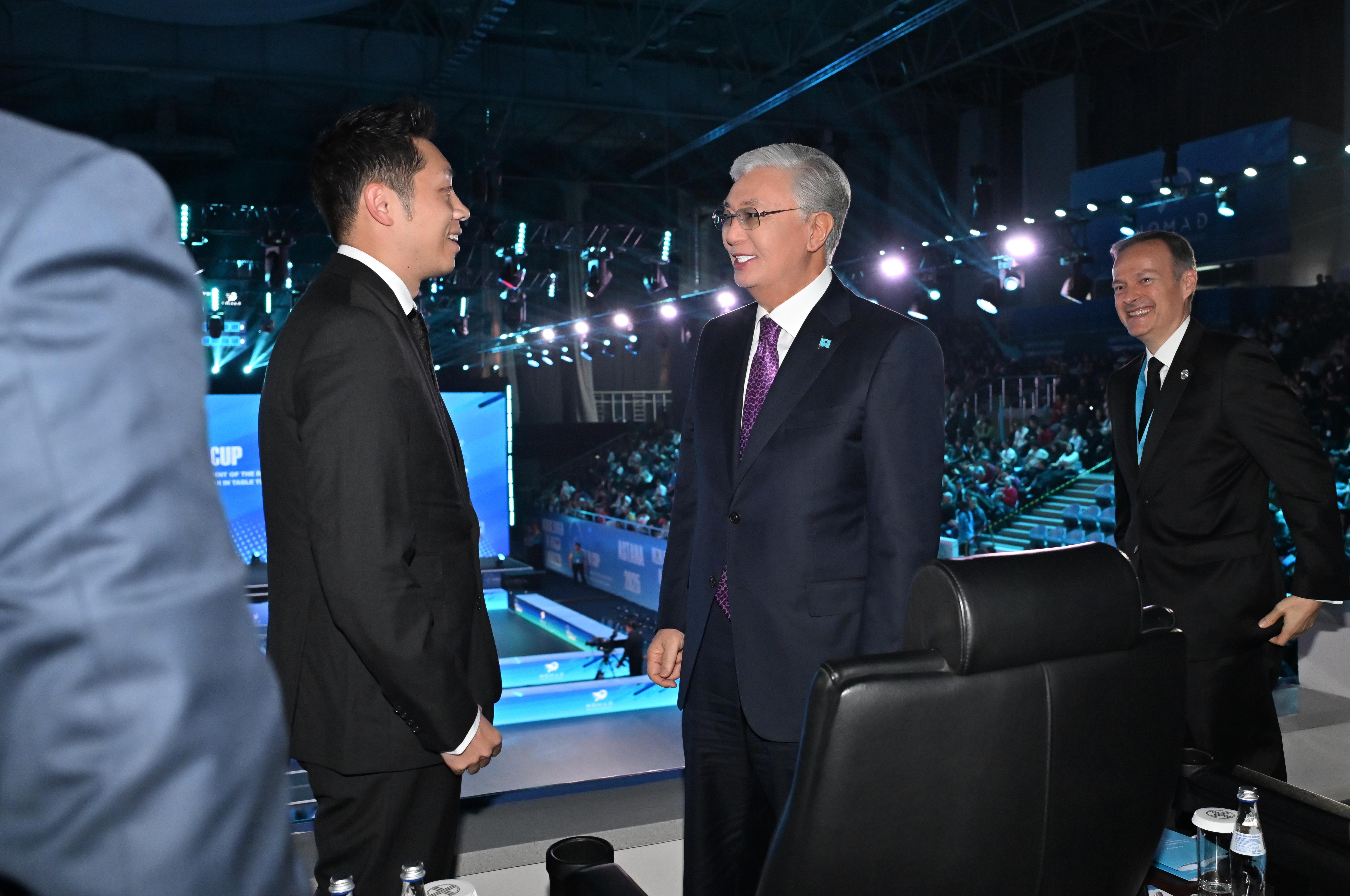 Касым-Жомарт Токаев посетил шоу-матч с участием мировых звезд настольного тенниса – одно из главных событий Кубка Президента.