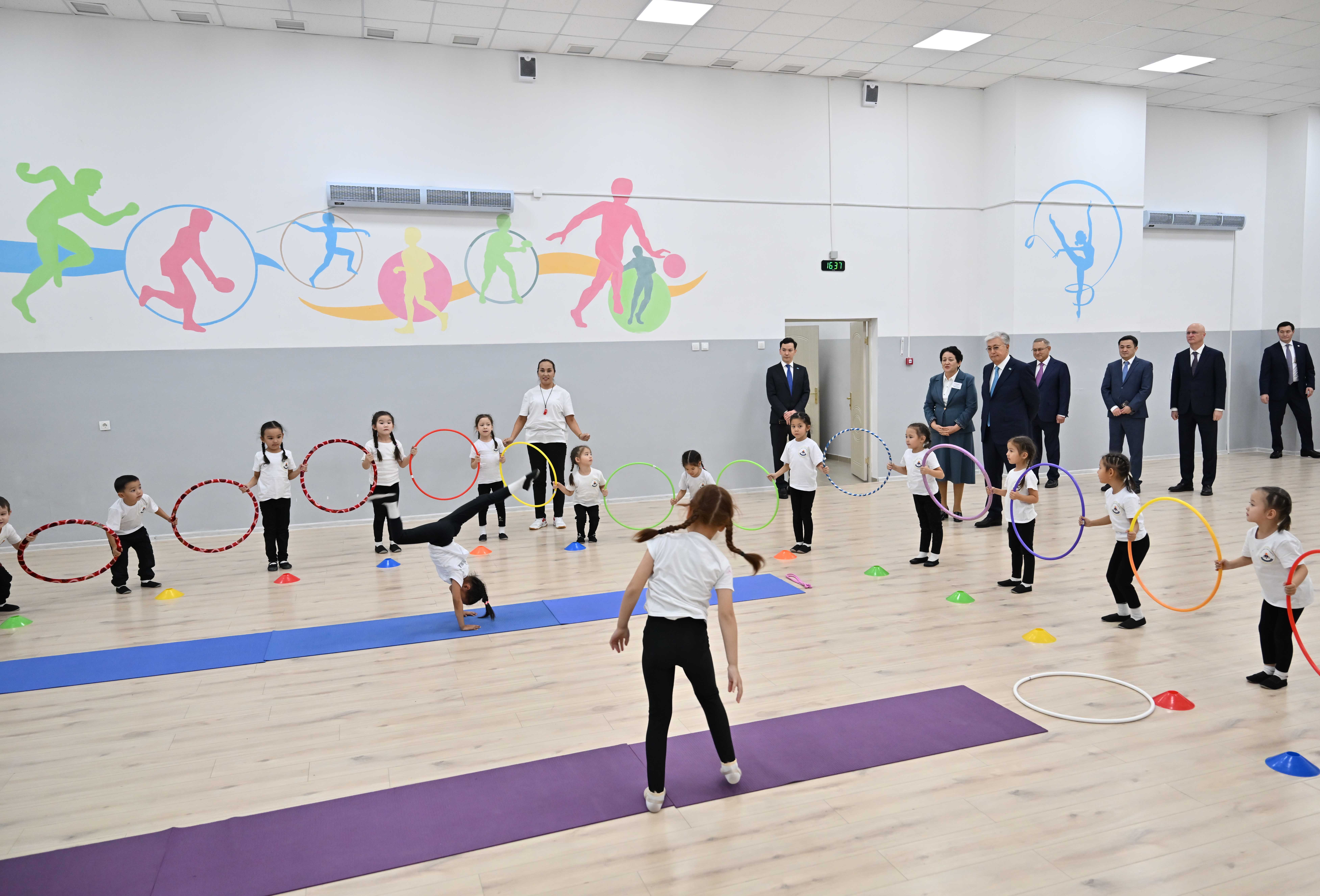 Президент осмотрел учебное заведение и побеседовал с учениками. Глава государства подарил образовательному учреждению школьный автобус.