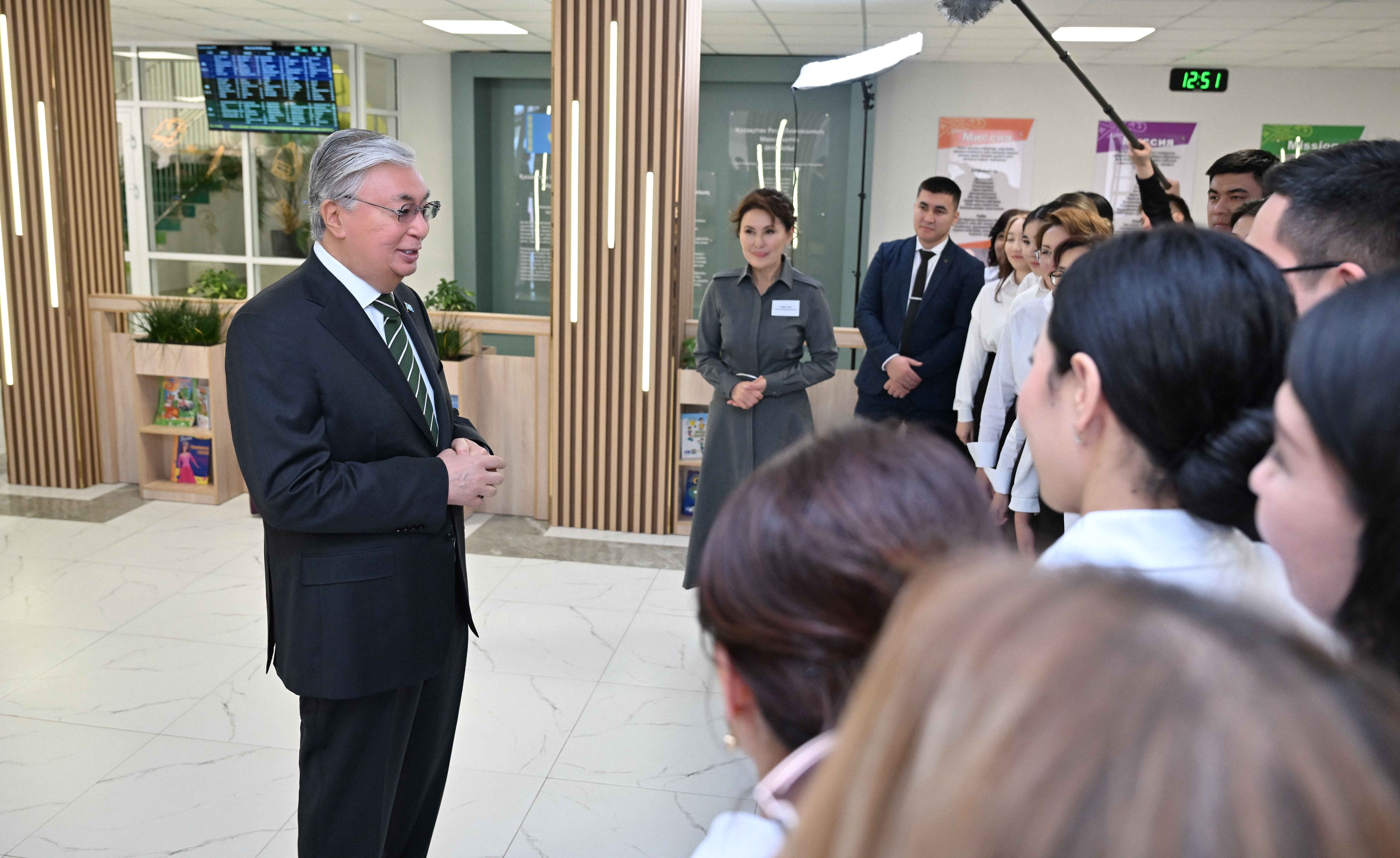 Касым-Жомарту Токаеву рассказали об учебном процессе в школе-гимназии социально-гуманитарного направления. Наряду с английским и французским языками учащиеся также изучают китайский язык.