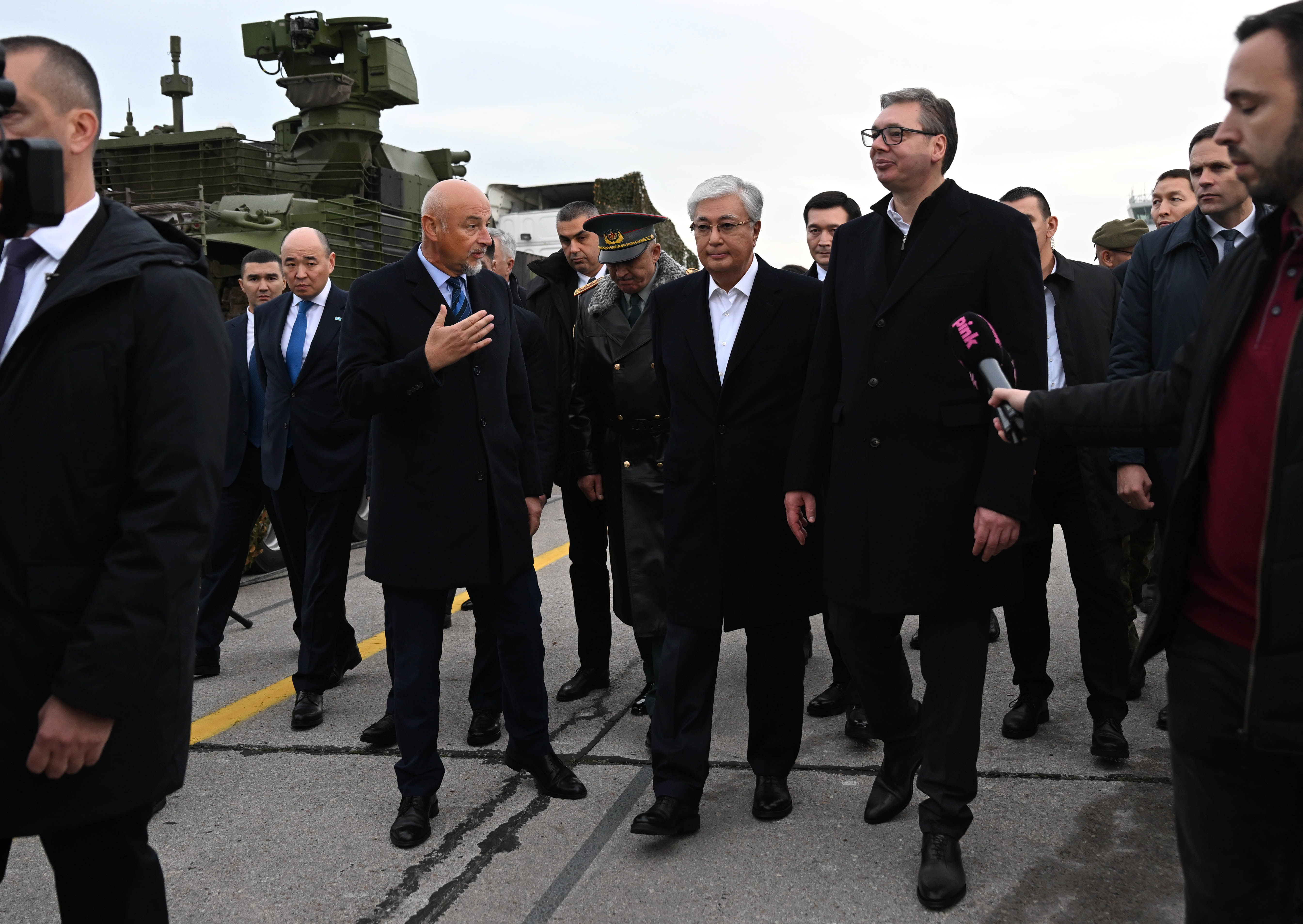 Президент Казахстана Касым-Жомарт Токаев осмотрел выставку предприятий военно-промышленного комплекса, развернутую на аэродроме «Батайница» под Белградом. Главу нашего государства сопровождал Президент Сербии Александр Вучич.