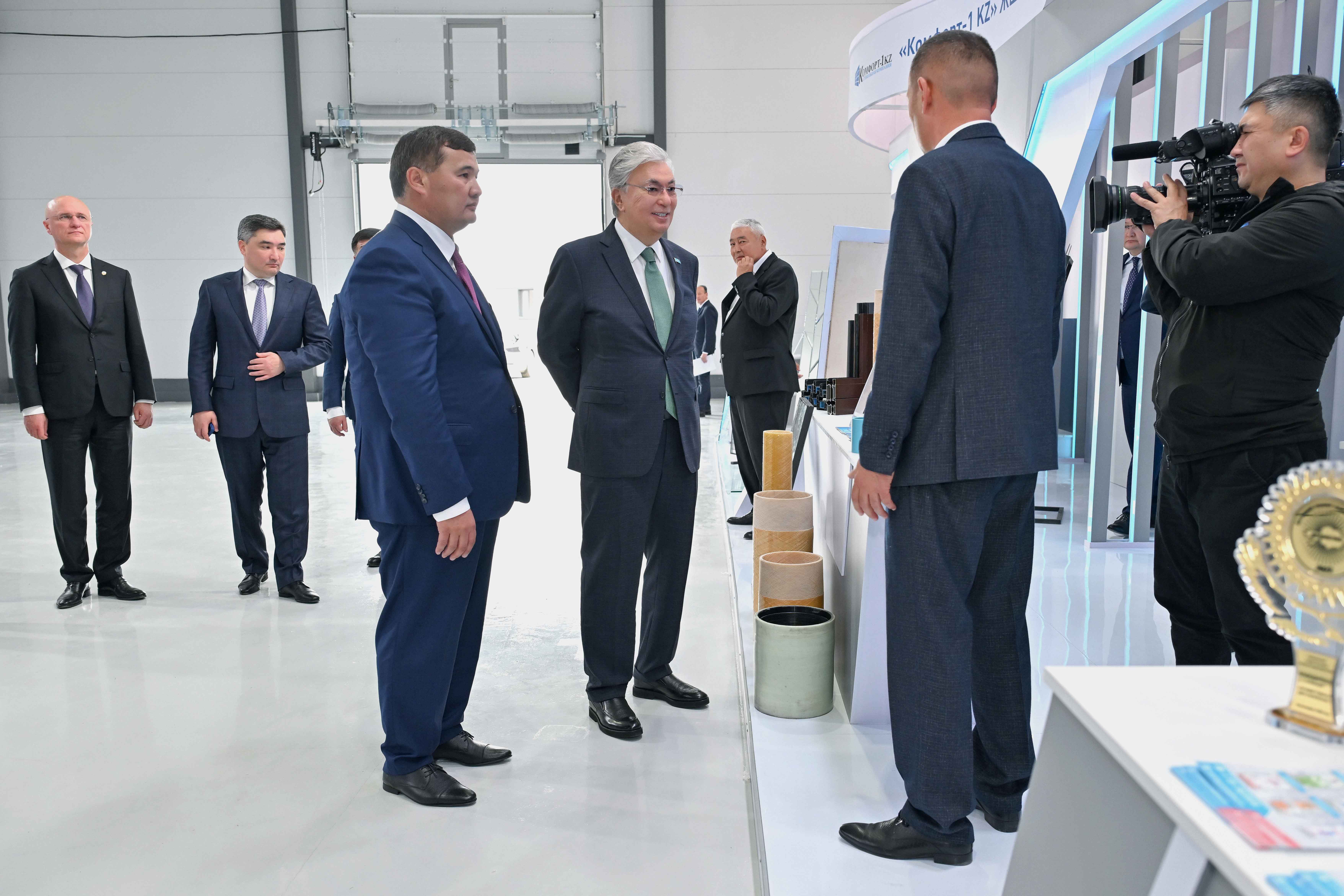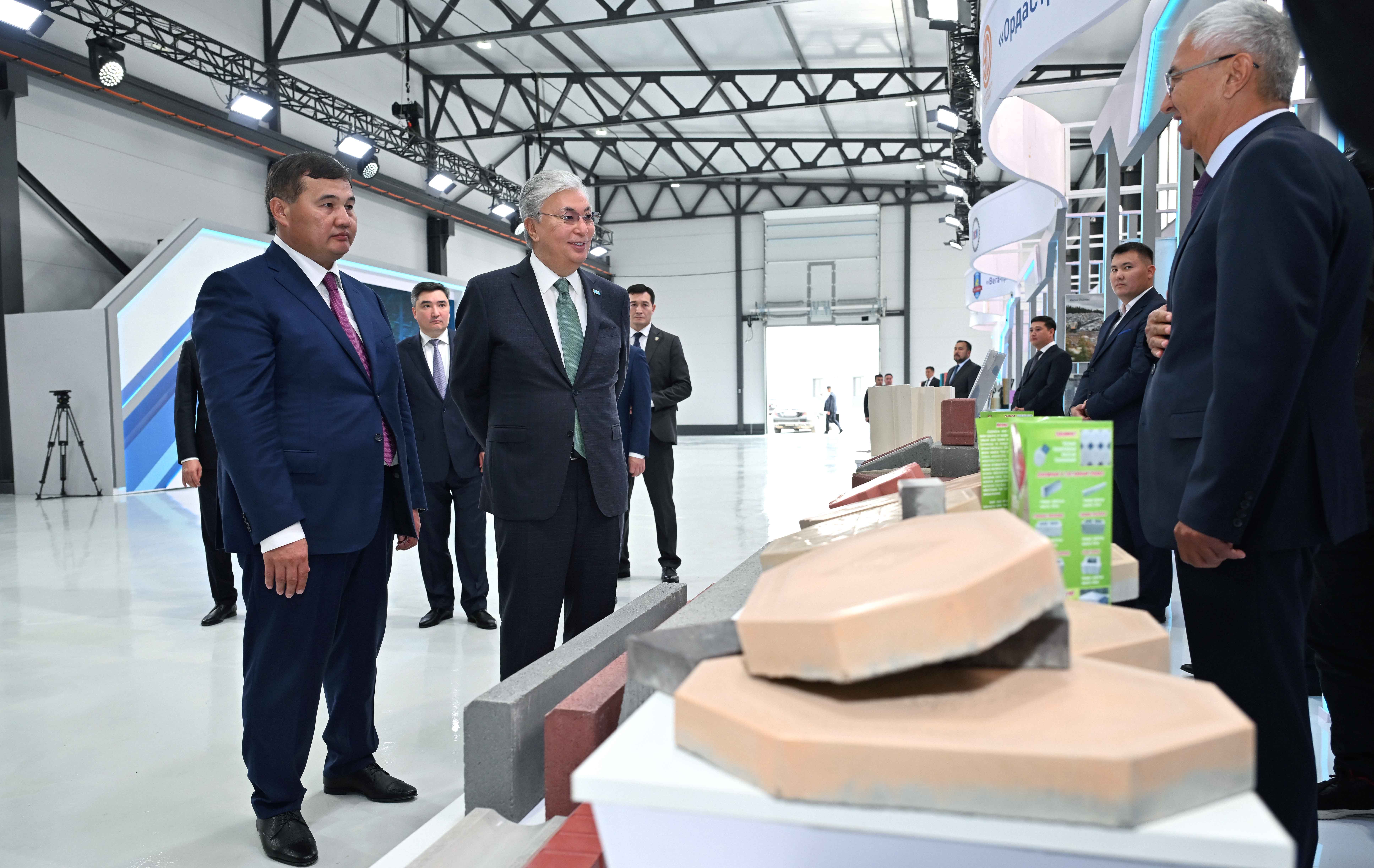 Главе государства также презентовали продукцию других предприятий строительной индустрии Кызылординской области, в частности, листовое стекло (ТОО «OrdaGlass»), ПВХ-трубы и фитинги (ТОО «КНК Кемикал»), каски (ТОО «NP-Consalting»), плиточные клеи и декоративную штукатурку (ТОО «Вега-Пром»), дорожные и тротуарные бордюры, песчано-керамзитовые блоки (ИП «Садуакасов Ж.А»), различные фракции щебня (ТОО «Shalkiya Dolomite Operating»), окна и зеркала (ТОО «Комфорт KZ»), известь (ТОО «Орда строй маркет»), кирпичную продукцию (ТОО «Мелиоратор»). Кроме того, на выставке были представлены текстильные изделия компании «Dalatex», средства индивидуальной защиты производства ТОО «Өркен Әлем».