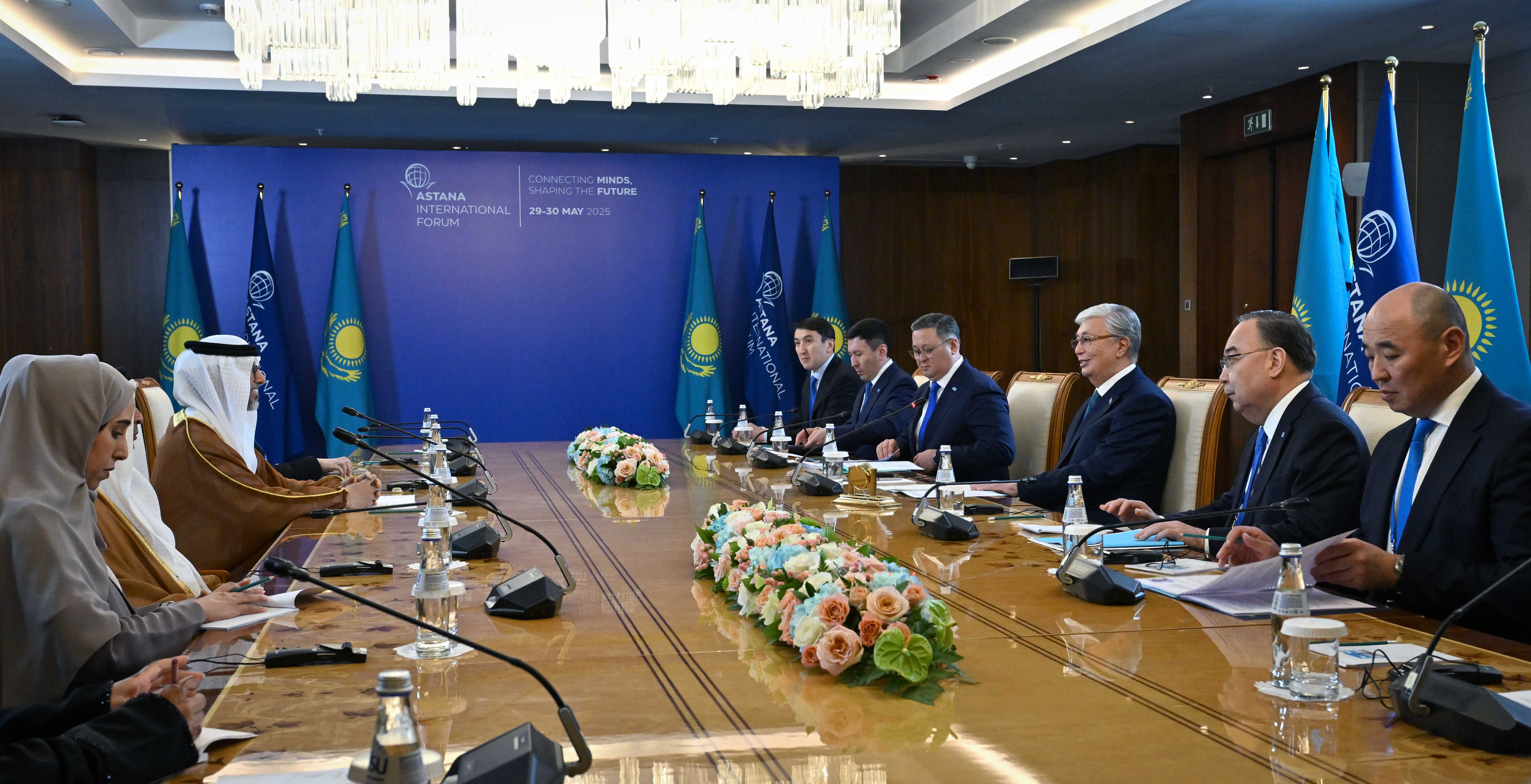 На полях Международного форума Астана Президент Республики Казахстан Касым-Жомарт Токаев провел встречу с министром энергетики и инфраструктуры Объединенных Арабских Эмиратов Сухейлем аль-Мазруи.