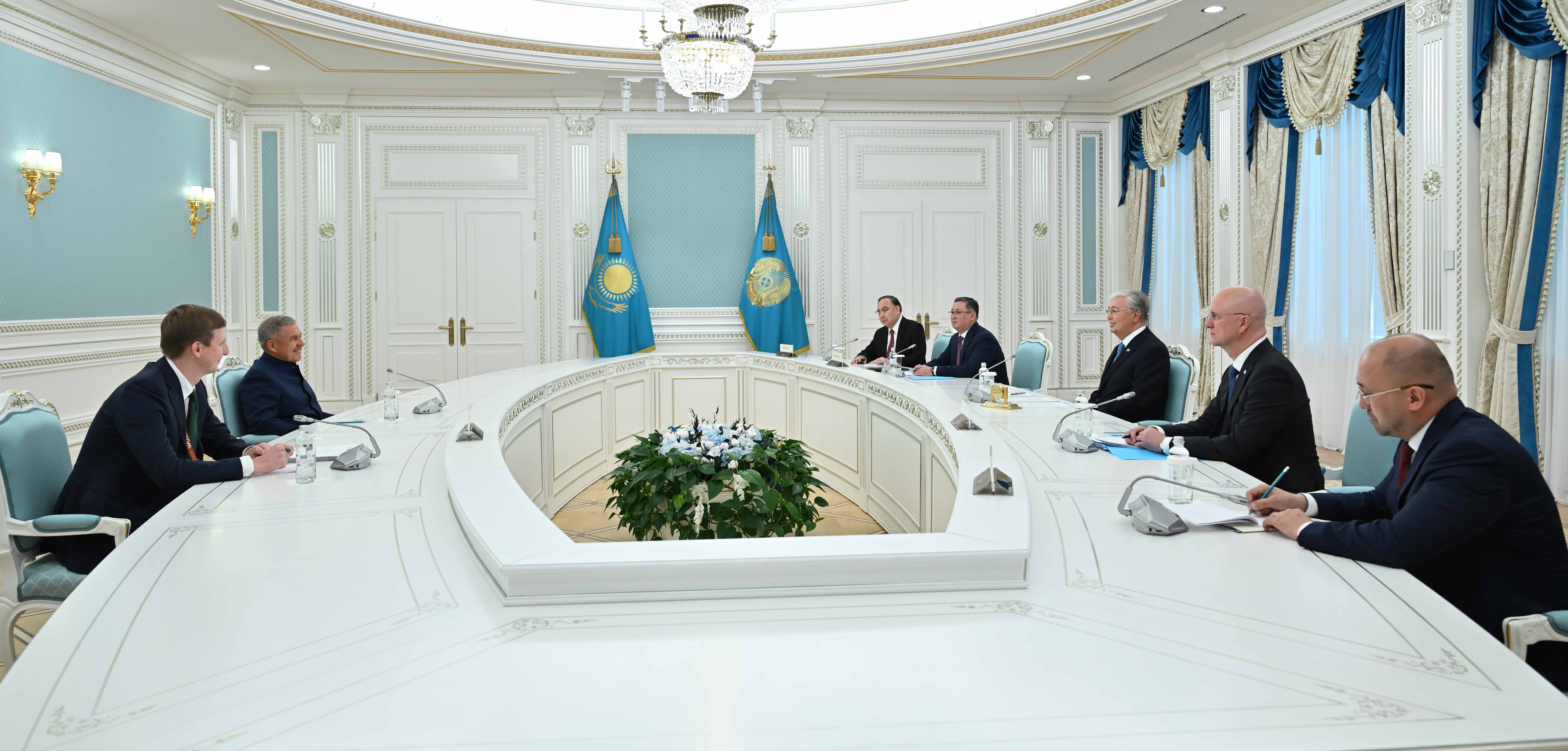 Президент Касым-Жомарт Токаев провел встречу с Рустамом Миннихановым, прибывшим в Астану для участия в церемонии открытия V Всемирных игр кочевников.