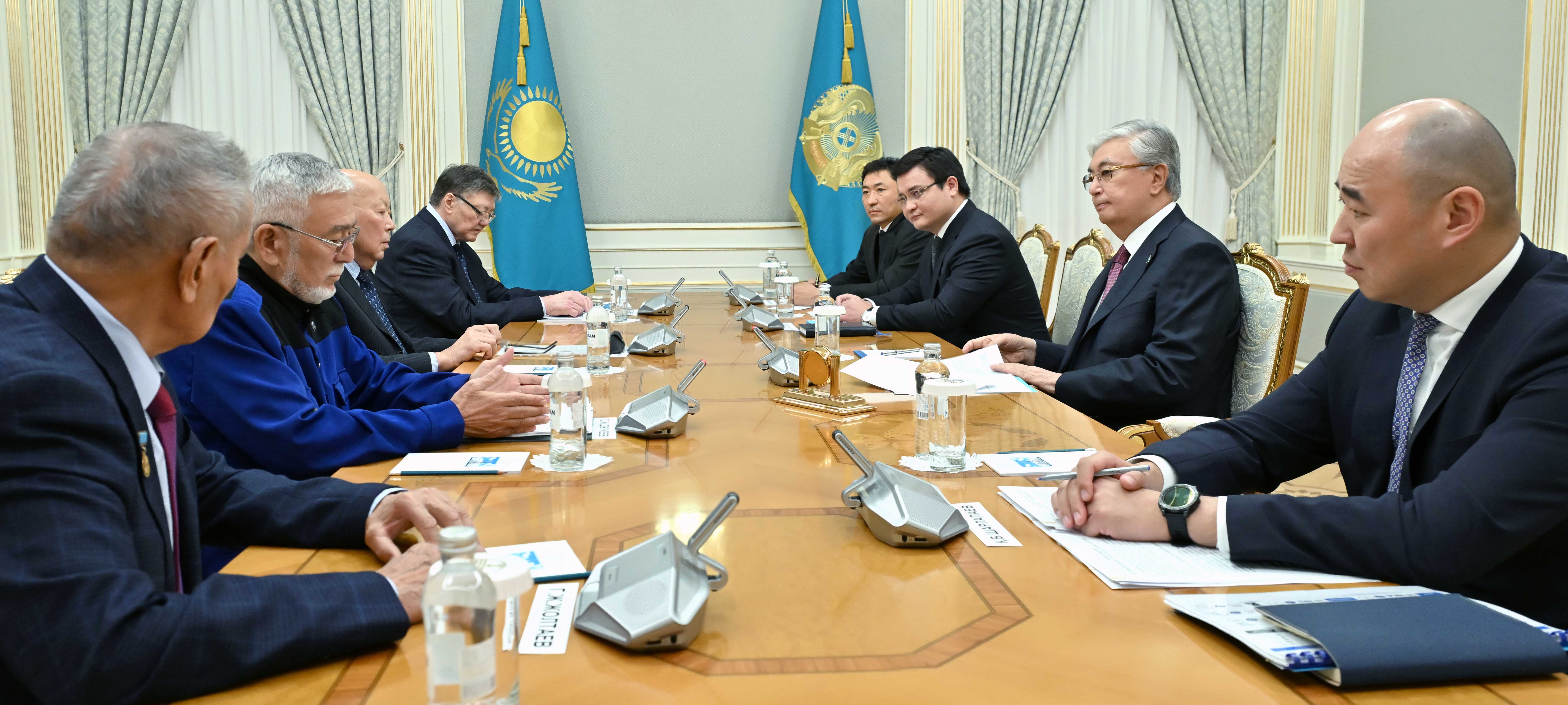 Касым-Жомарт Токаев встретился с заслуженными деятелями геологической отрасли страны – академиком Национальной академии наук Серикбеком Даукеевым, президентом ТОО «Меридиан Петролеум» Балтабеком Куандыковым, директором Института геологических наук имени К.И. Сатпаева Героем Жолтаевым и президентом общественного объединения «Академия минеральных ресурсов» Булатом Ужкеновым.