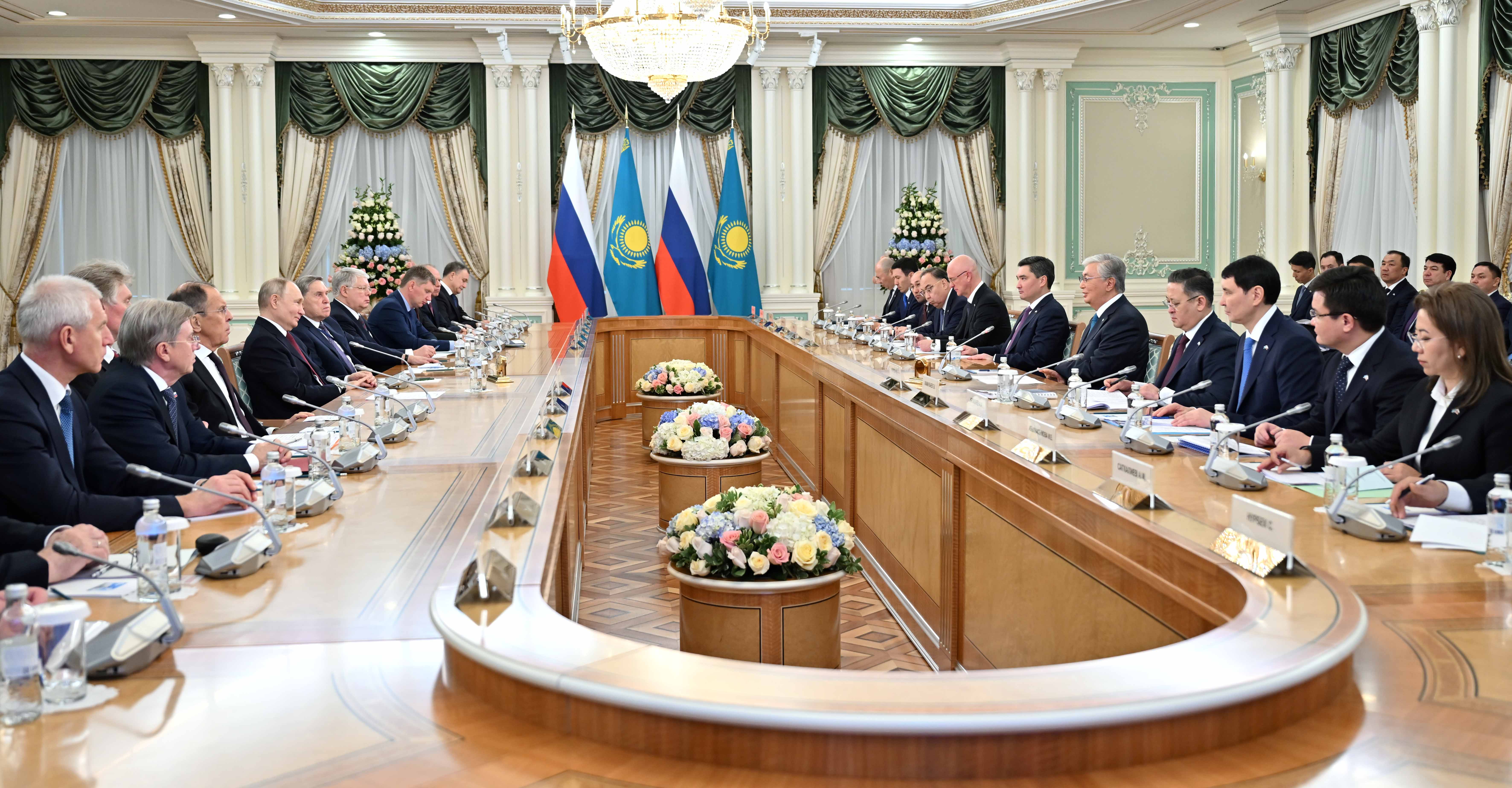 Президент Казахстана Касым-Жомарт Токаев и Президент России Владимир Путин провели переговоры с участием официальных делегаций двух стран.