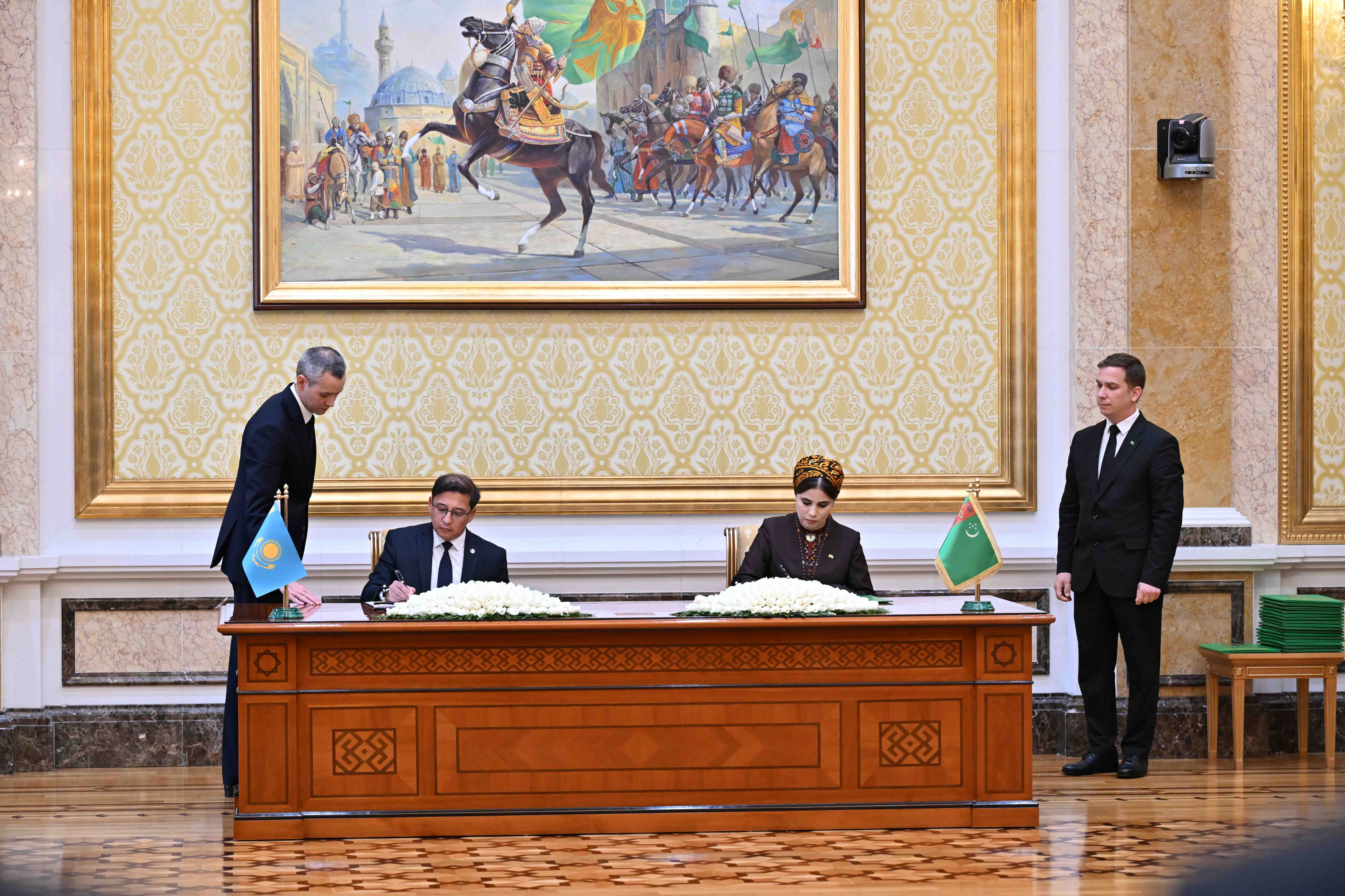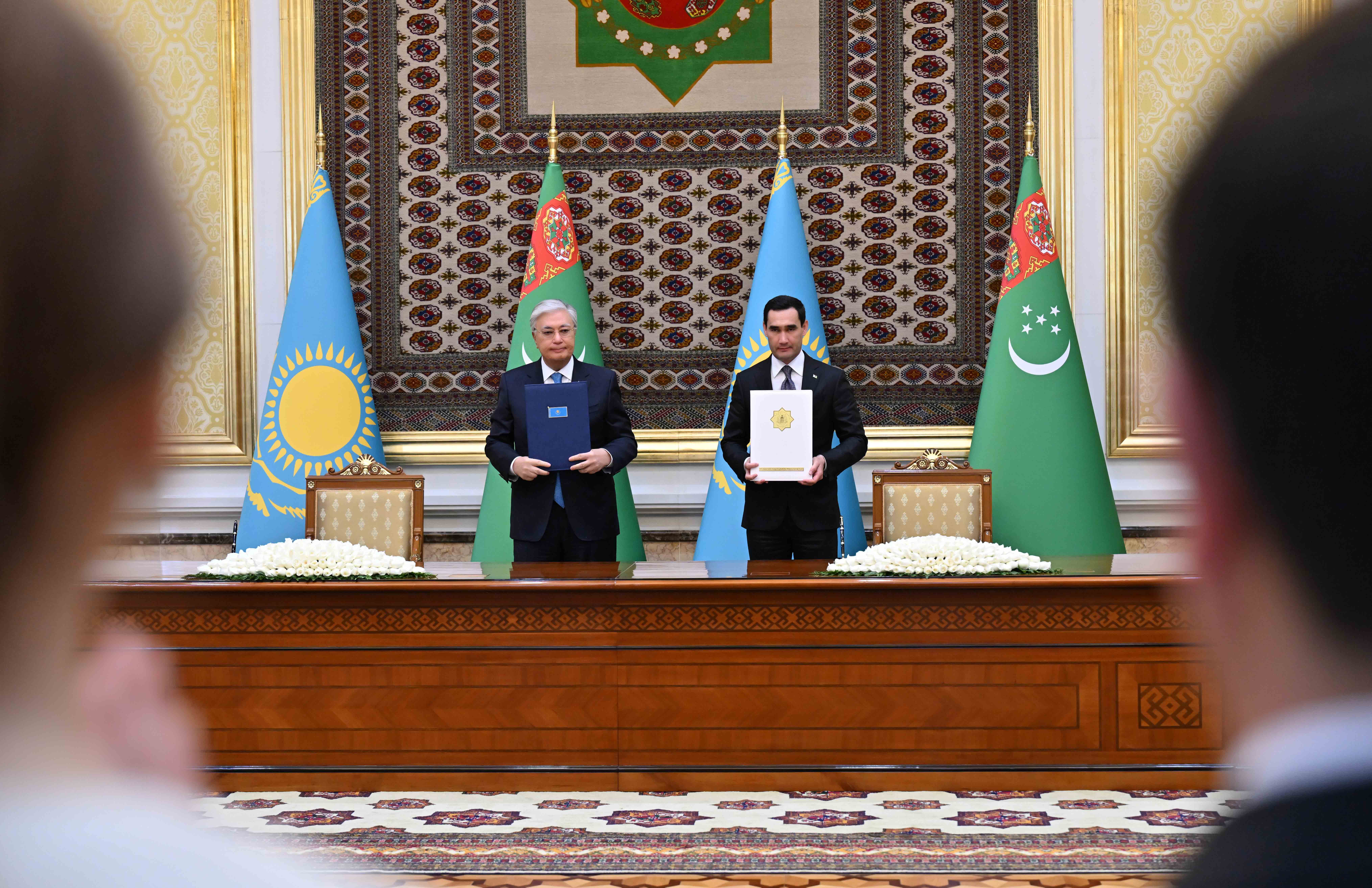 В завершение Президент Касым-Жомарт Токаев и Президент Сердар Бердымухамедов приняли Декларацию об укреплении дружбы и углублении многопланового стратегического партнерства между Республикой Казахстан и Туркменистаном.