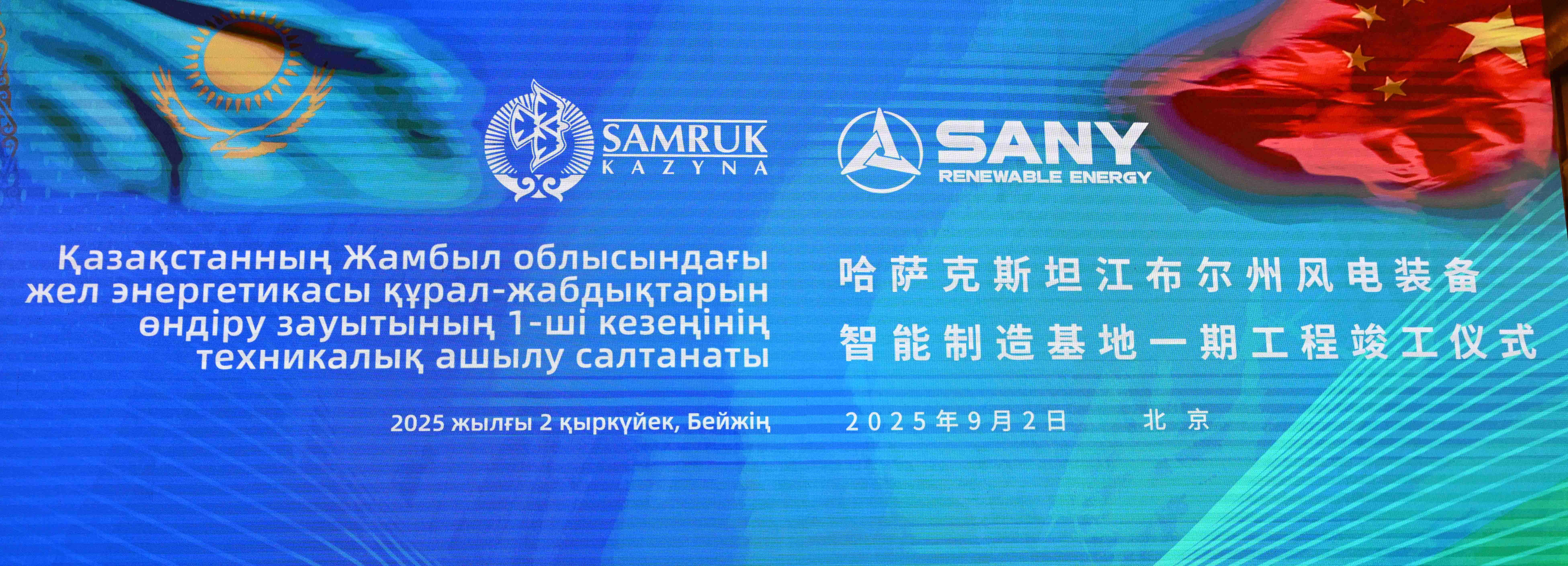 Проект стал результатом успешного партнерства АО «Самрук-Қазына» и компании SANY Renewable Energy – крупнейшего мирового производителя оборудования для ветроэнергетики. Это первый подобный завод в Казахстане.