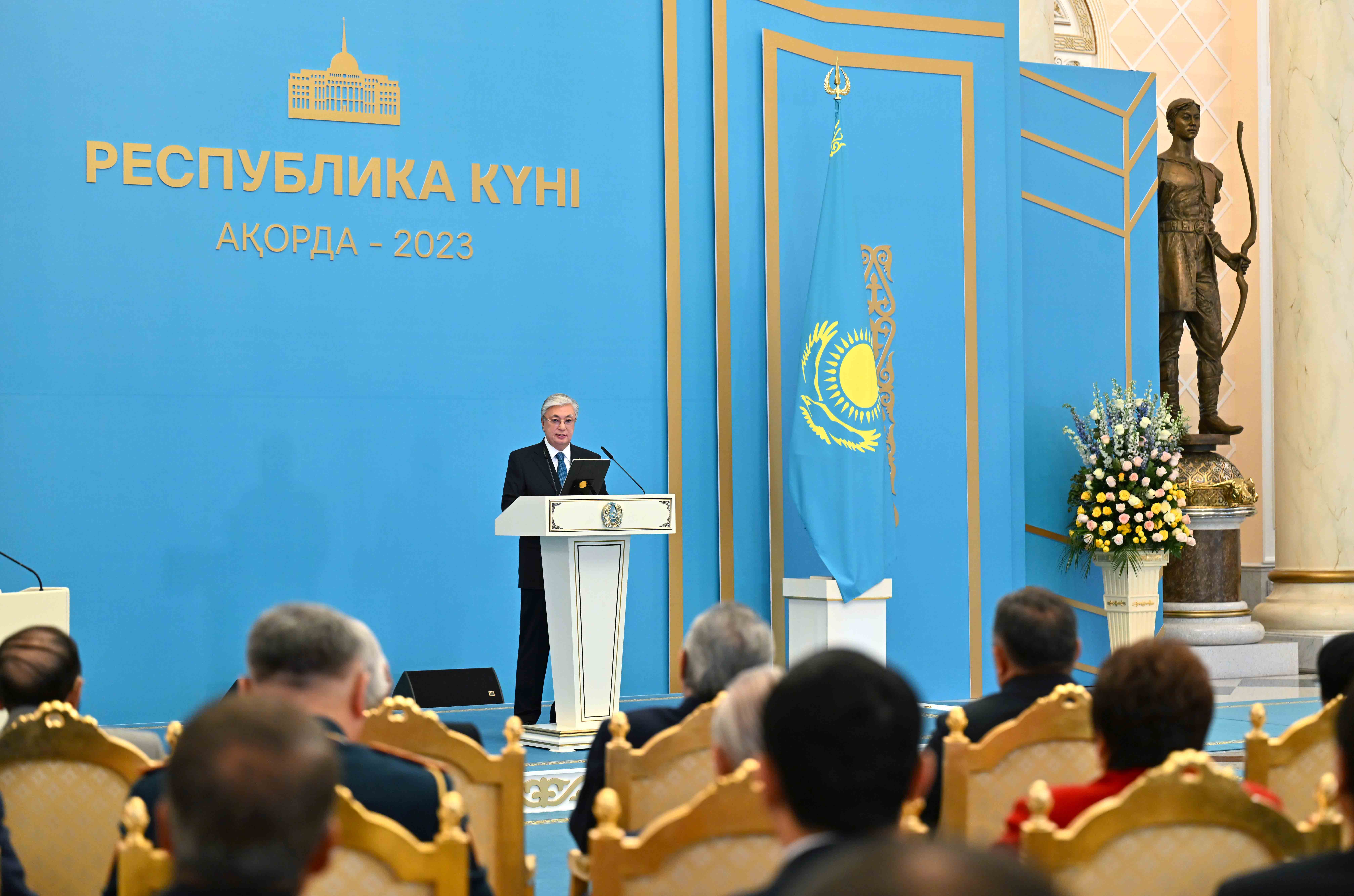 Открывая торжественную церемонию, Глава государства поздравил собравшихся с Днем Республики.
