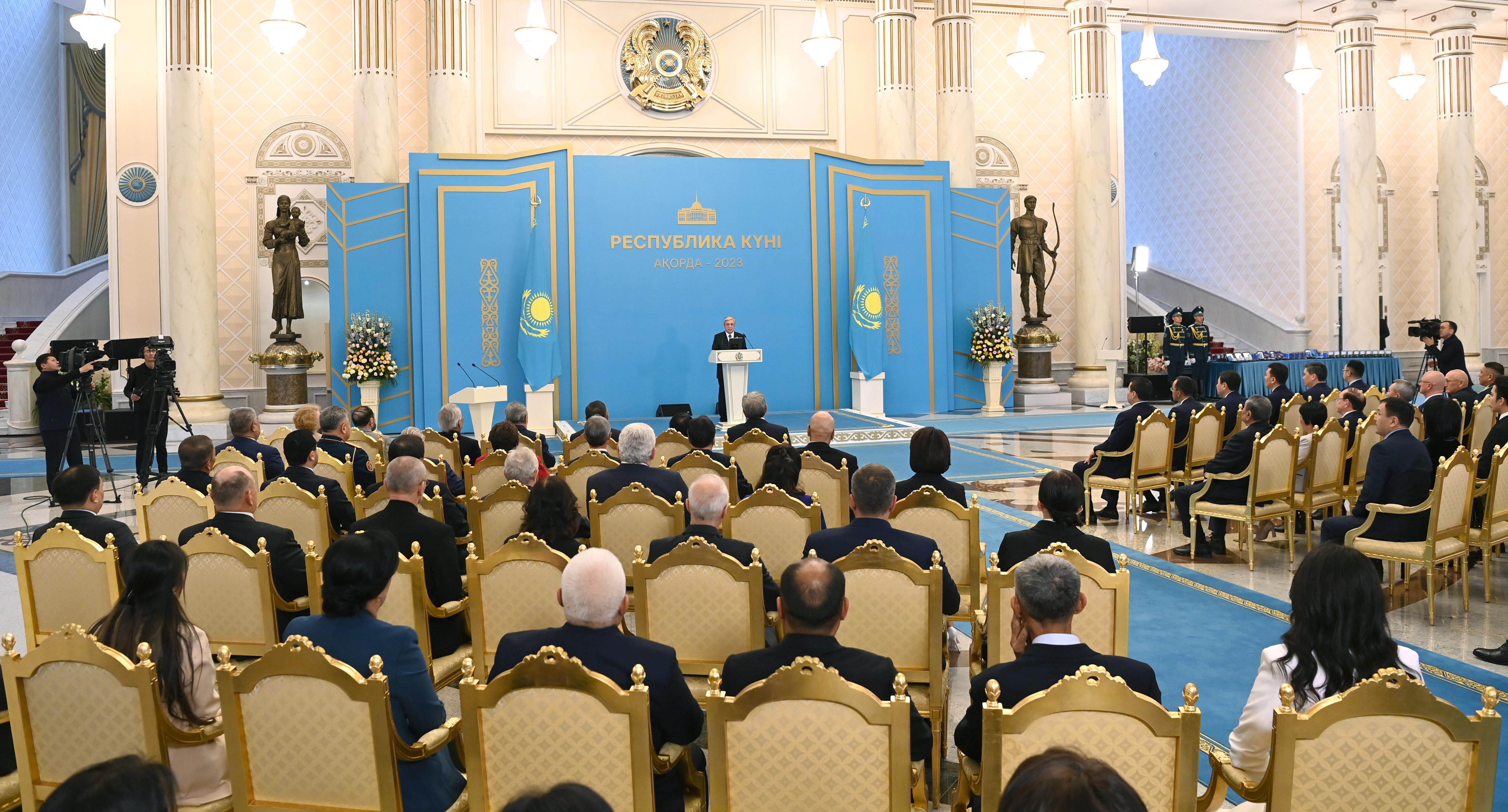 По завершении выступления Касым-Жомарт Токаев вручил высокие государственные награды, премии и звания ряду граждан за значительный вклад в развитие страны.