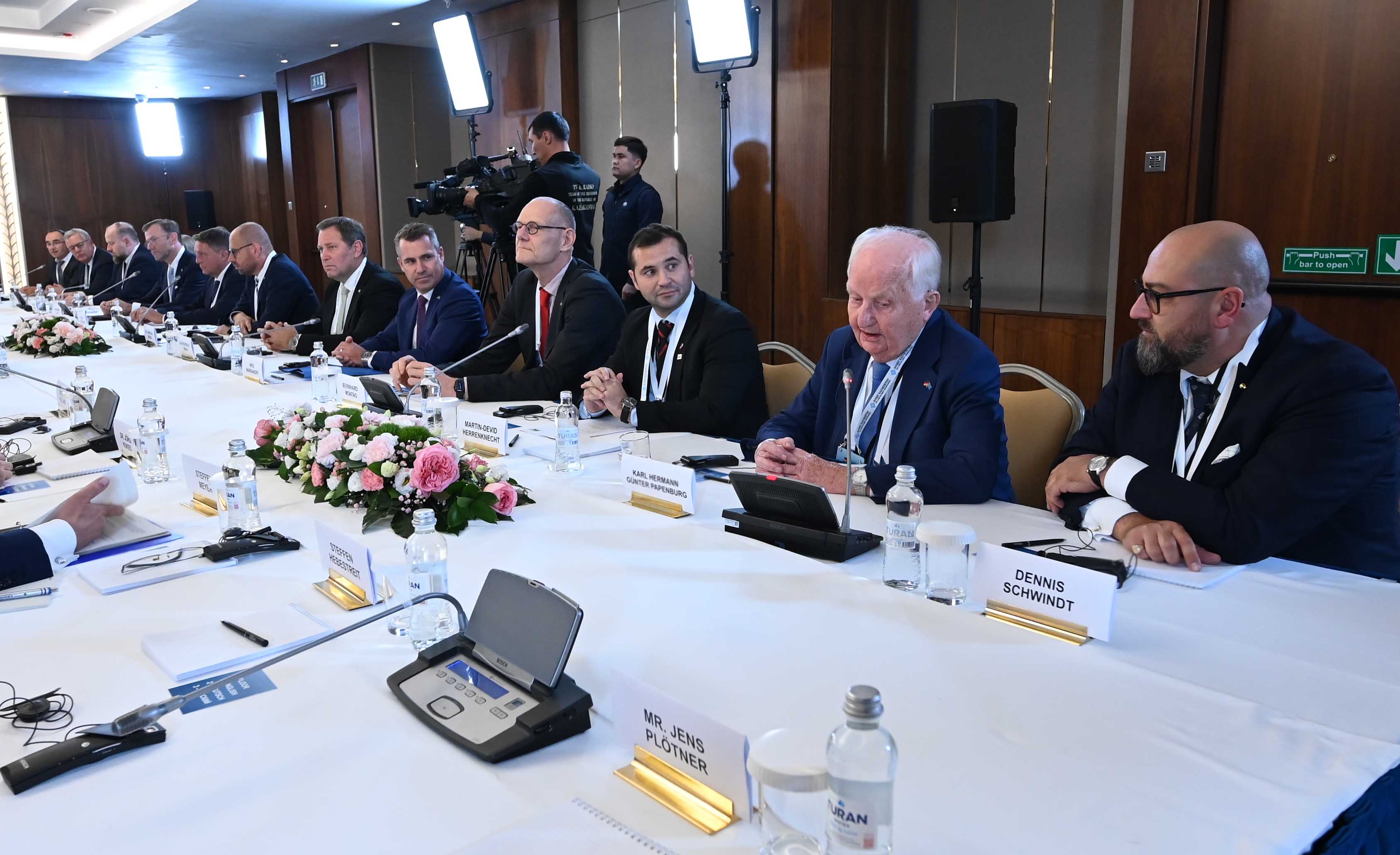 На мероприятии присутствовали председатель правления компании Siemens Energy AG, заместитель председателя Восточного комитета германской экономики Кристиан Брух, председатель правления CLAAS Group Ян-Хендрик Мор, председатель исполнительного совета компании DB E.C.O. Group, представитель Рабочей группы по Центральной Азии ВКГЭ Нико Варбанофф, президент SVEVIND Energy GmbH, почетный консул Казахстана в Саксонии Вольфганг Кропп, председатель правления компании Aurubis AG Торальф Хааг, председатель правления компании Siemens Healthineers AG Берндт Монтаг, председатель правления компании GP Günter Papenburg AG Гюнтер Папенбург, председатель правления компании HMS Bergbau AG Дэннис Швиндт, член правления по Международному финансированию KfW Bankengruppe Кристиане Лайбах, представитель управляющих партнеров компании KNAUF Gruppe Александр Кнауф, член правления Herrenknecht AG Мартин-Дэвид Херренкнехт, главный исполнительный директор компании Ernst Klett AG Филипп Хаусманн, генеральный директор компании Rhenus SE & Co. KG Тобиас Бартц.