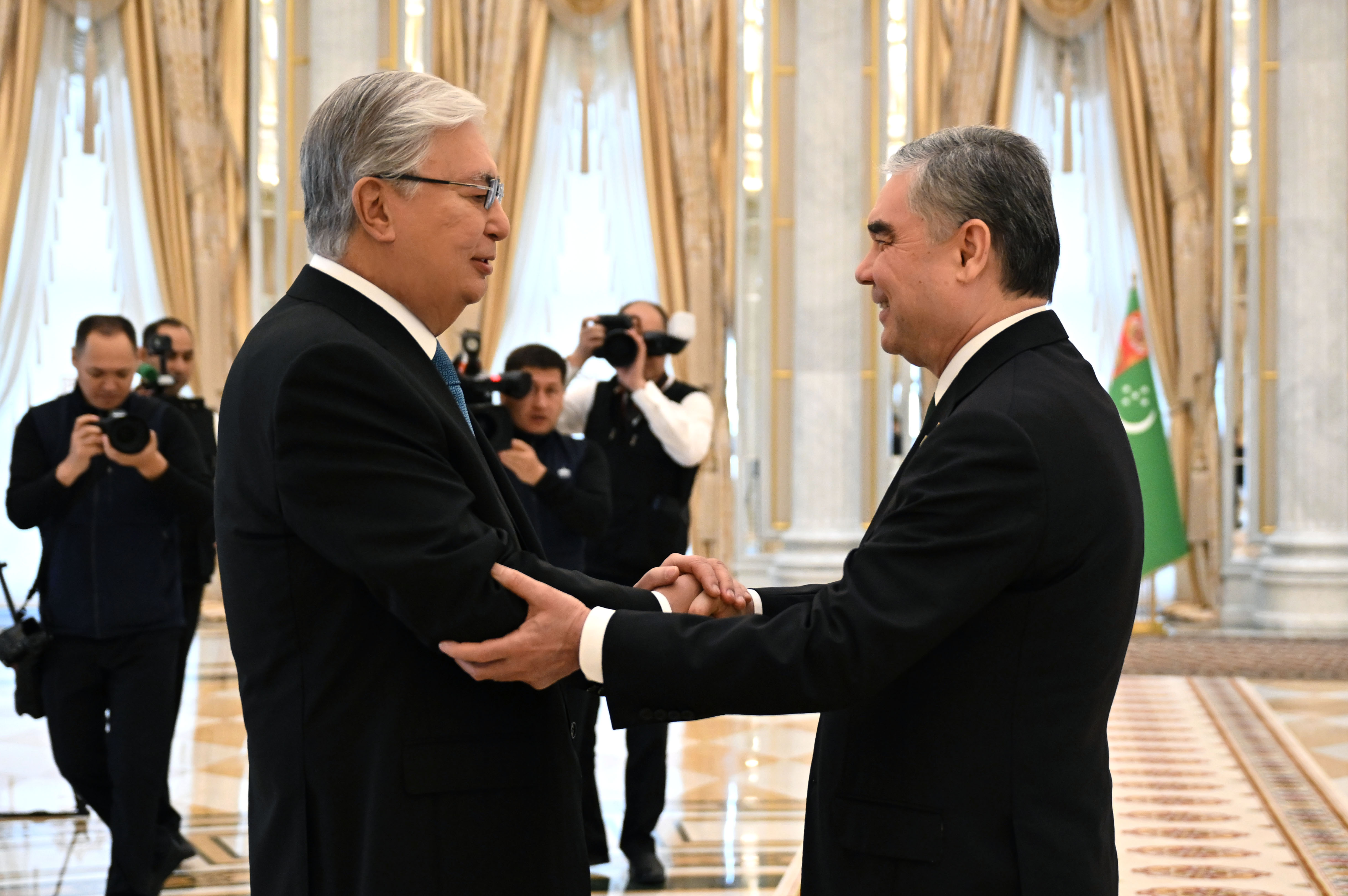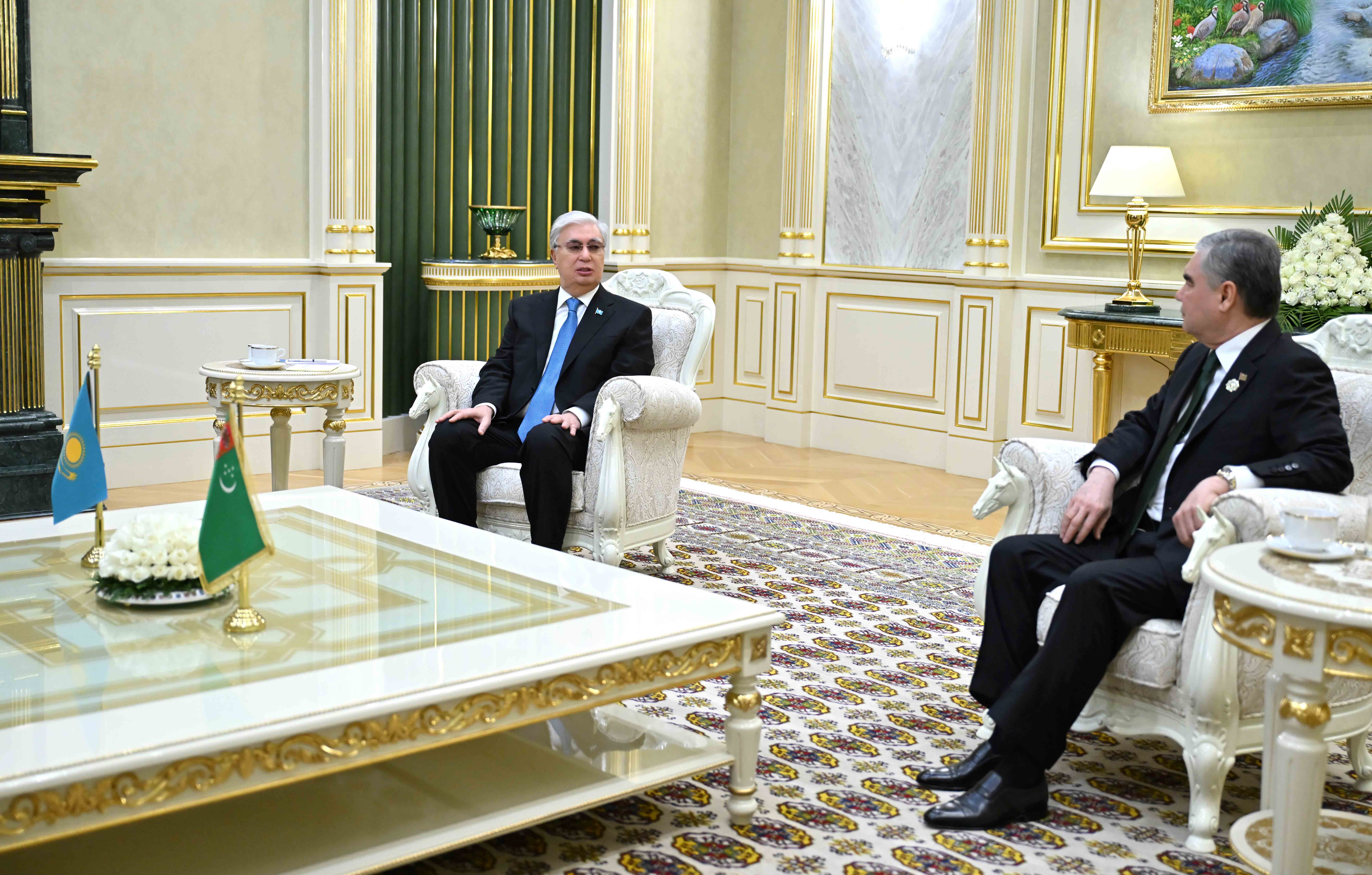 Официальный визит Касым-Жомарта Токаева в Туркменистан начался со встречи с Председателем Халк Маслахаты Гурбангулы Бердымухамедовым.