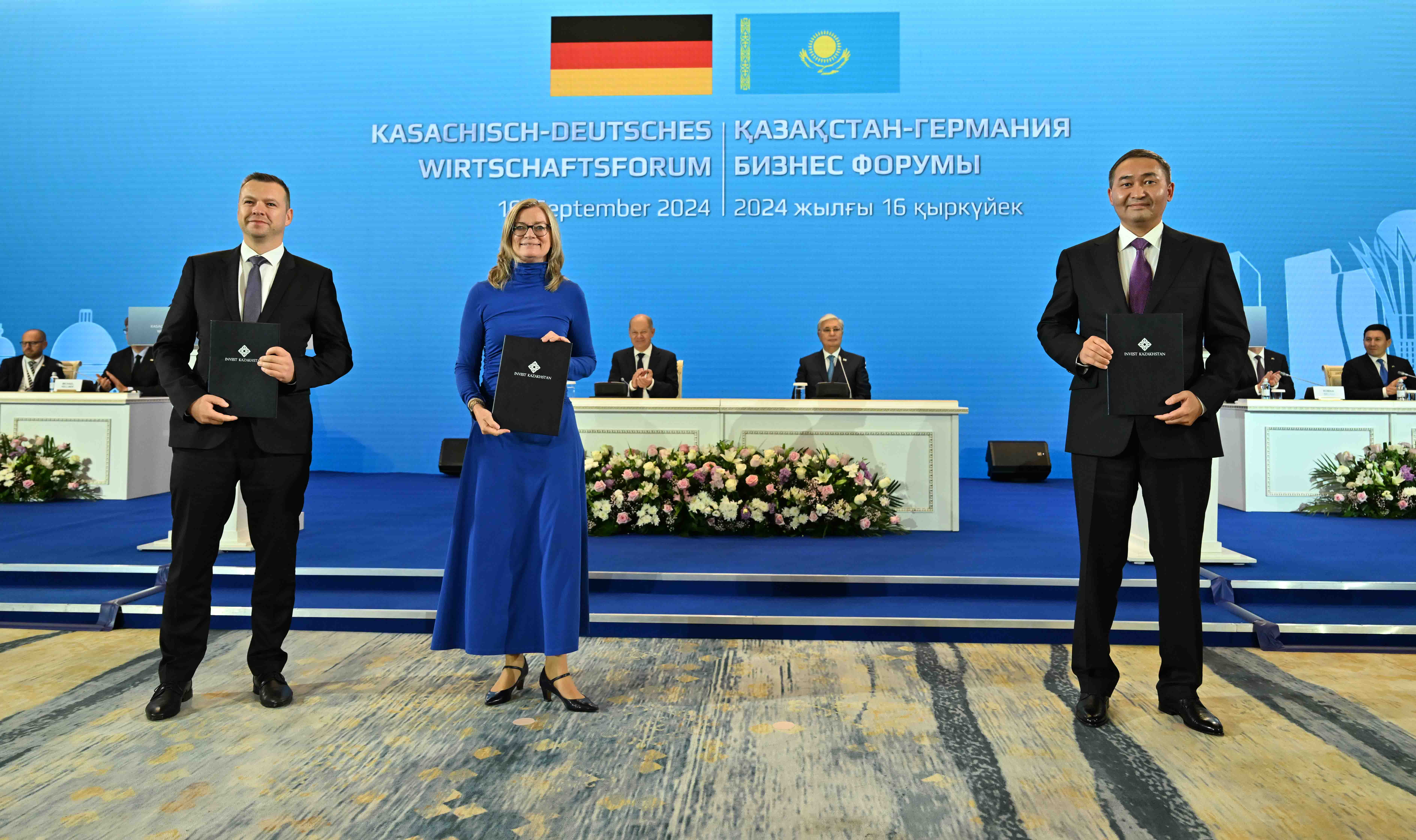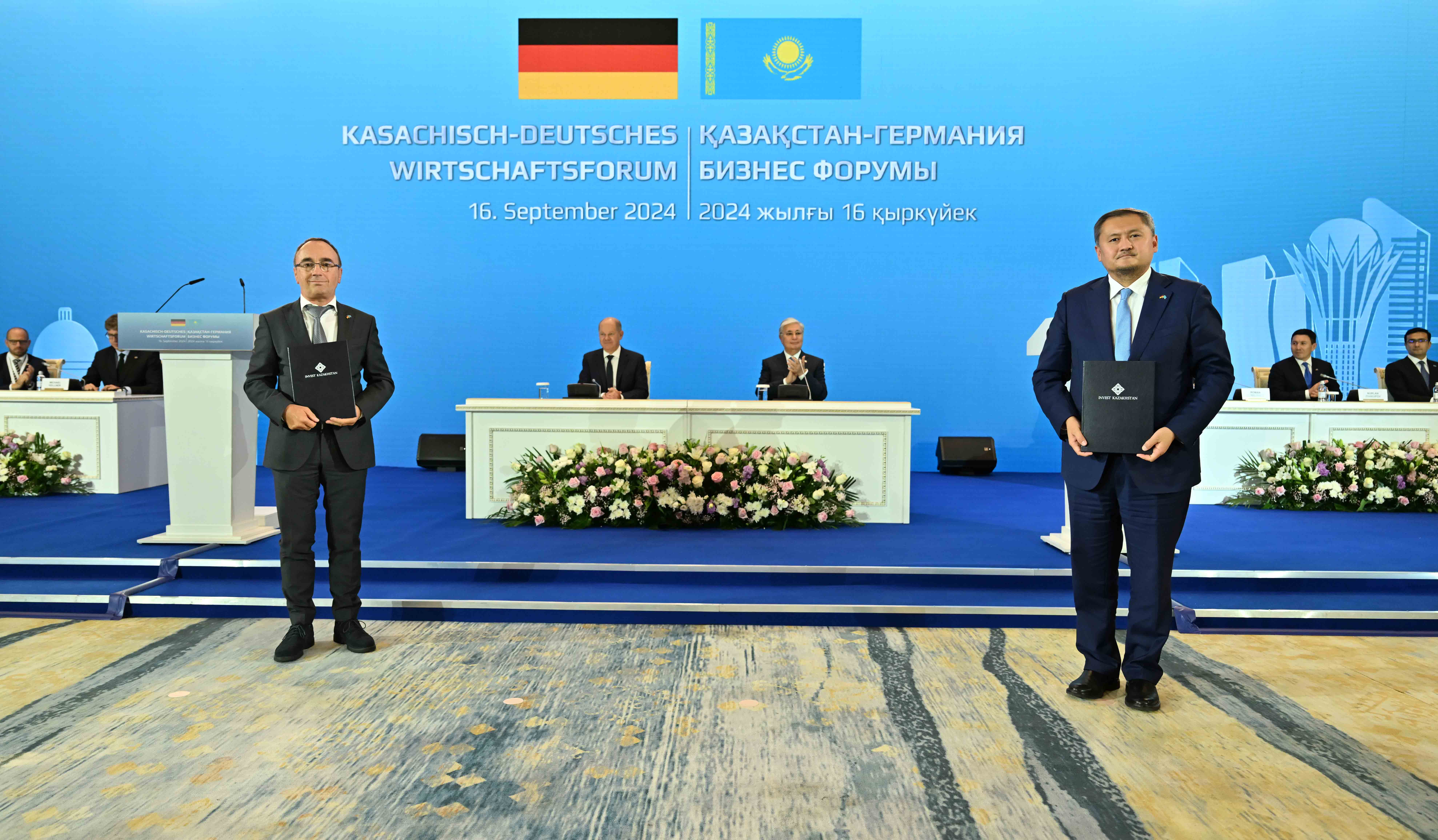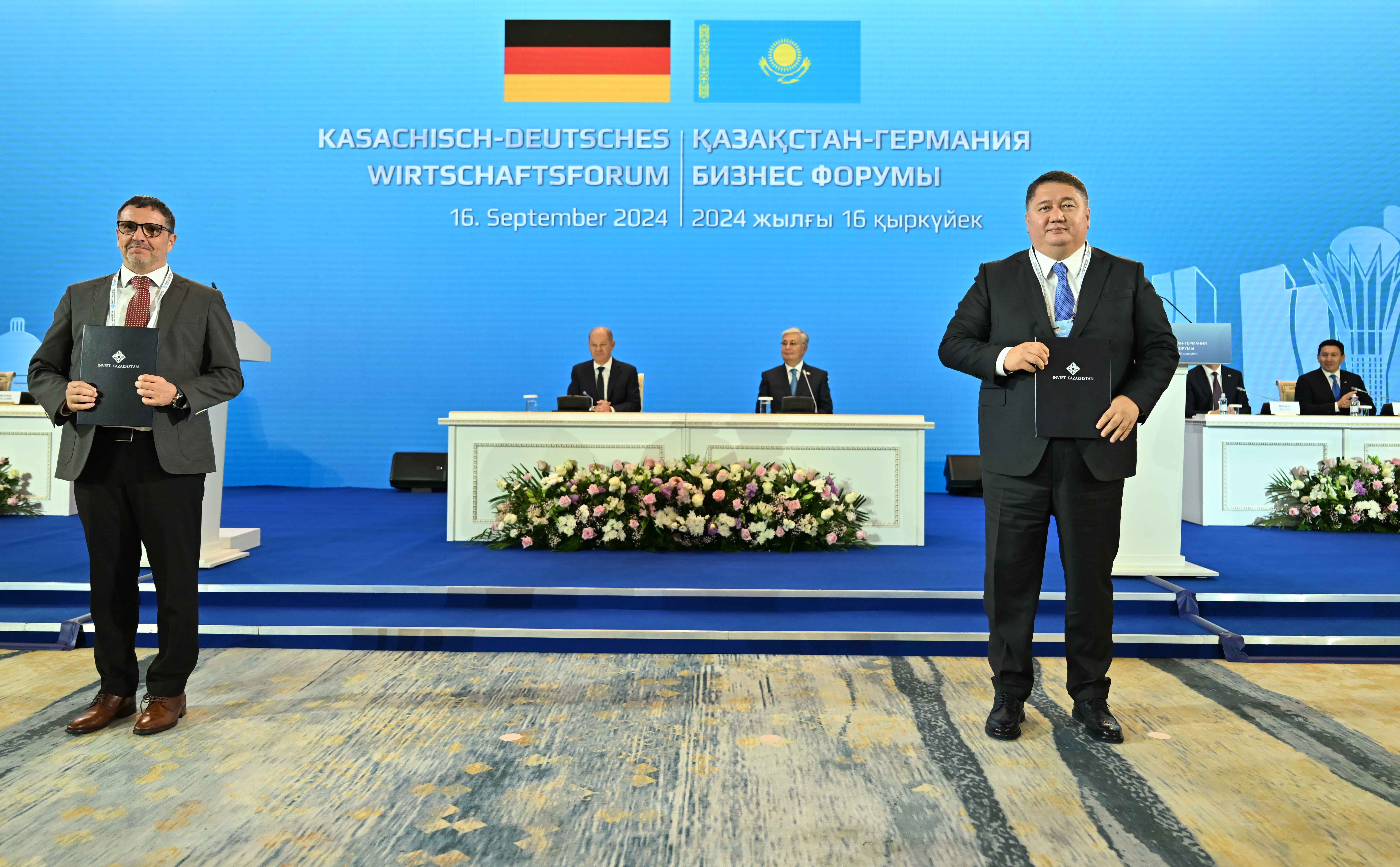 По итогам форума в присутствии Главы государства Касым-Жомарта Токаева и Канцлера ФРГ Олафа Шольца состоялся обмен следующими документами, подписанными в рамках бизнес-форума: