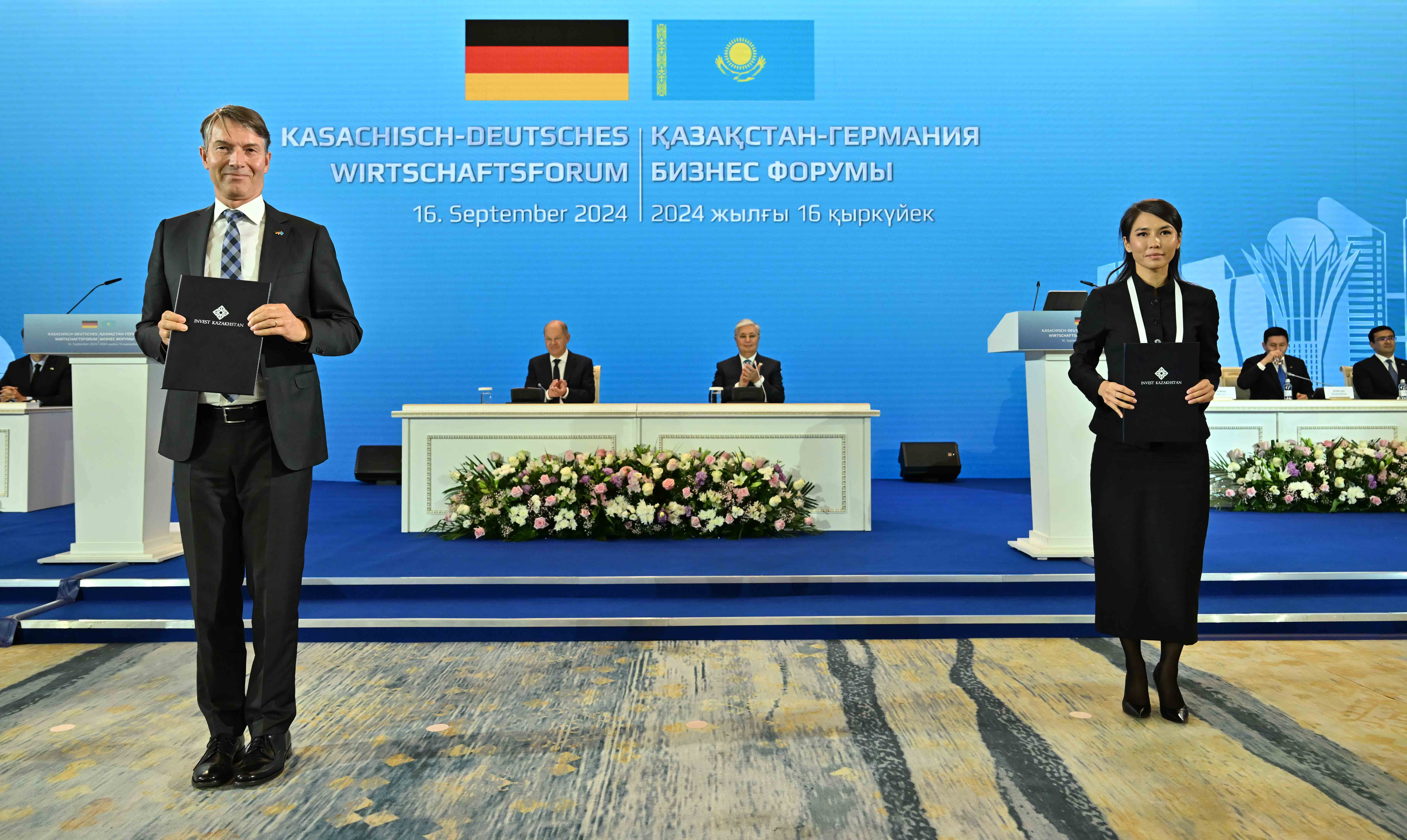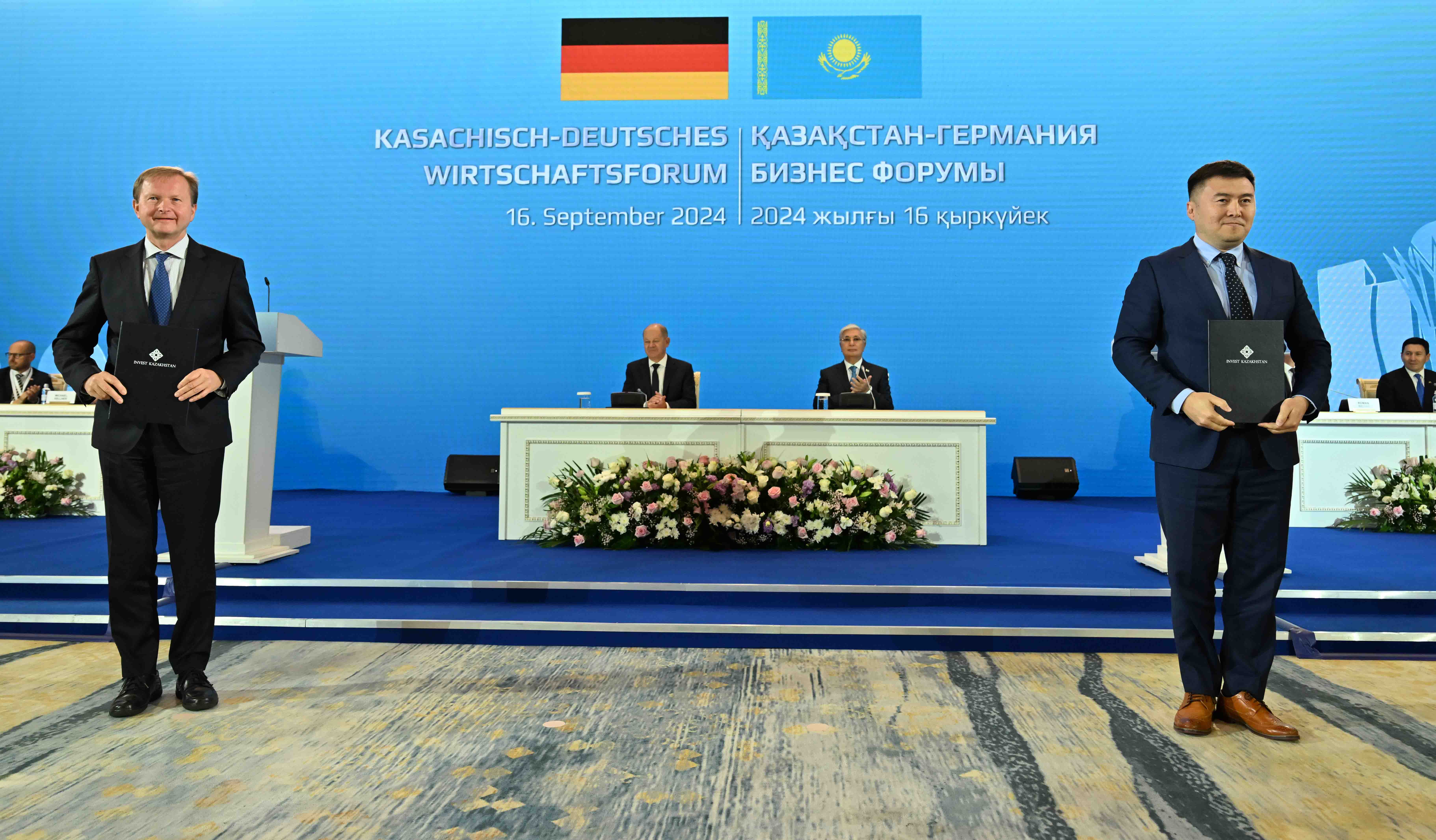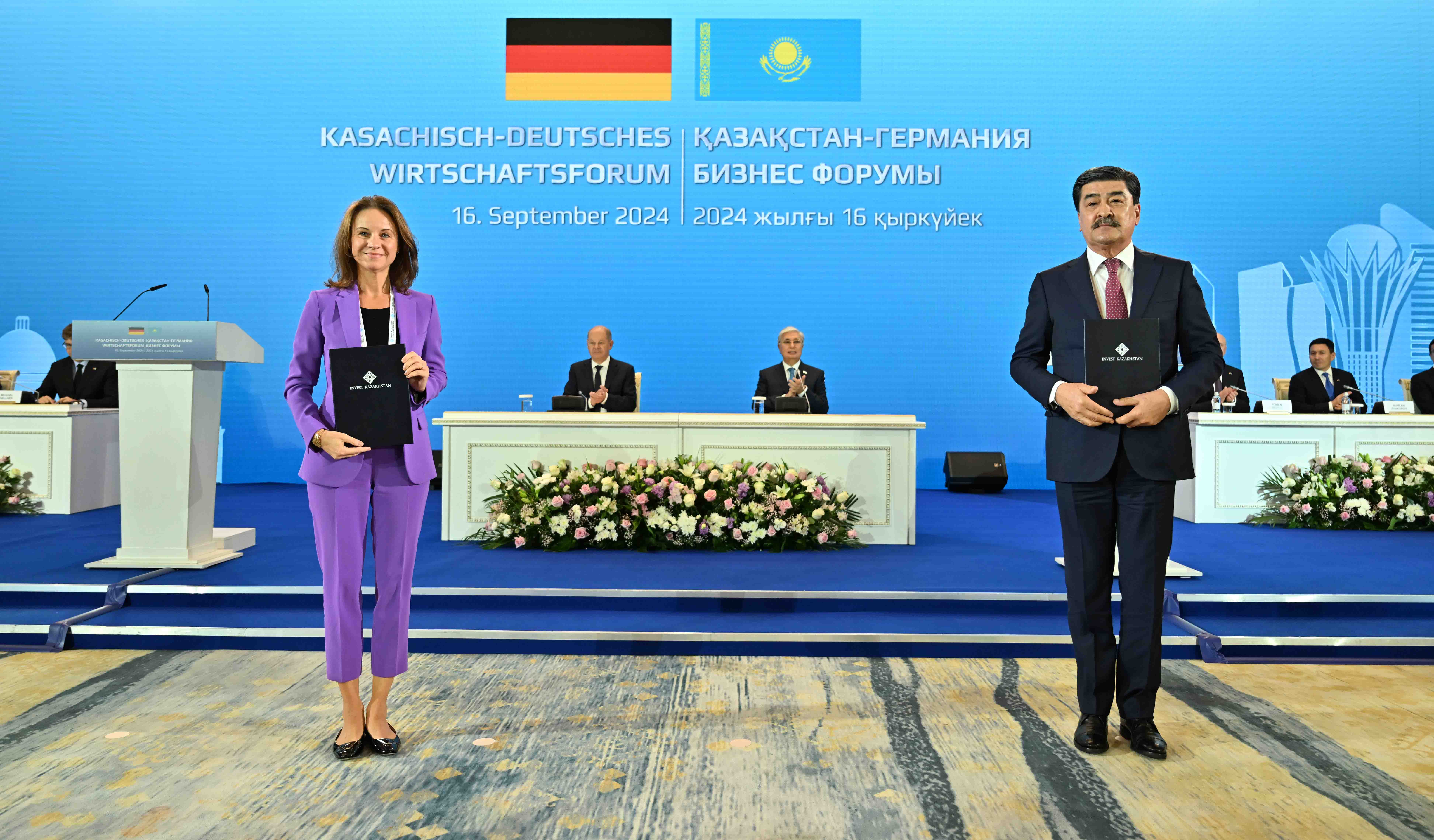По итогам форума в присутствии Главы государства Касым-Жомарта Токаева и Канцлера ФРГ Олафа Шольца состоялся обмен следующими документами, подписанными в рамках бизнес-форума: