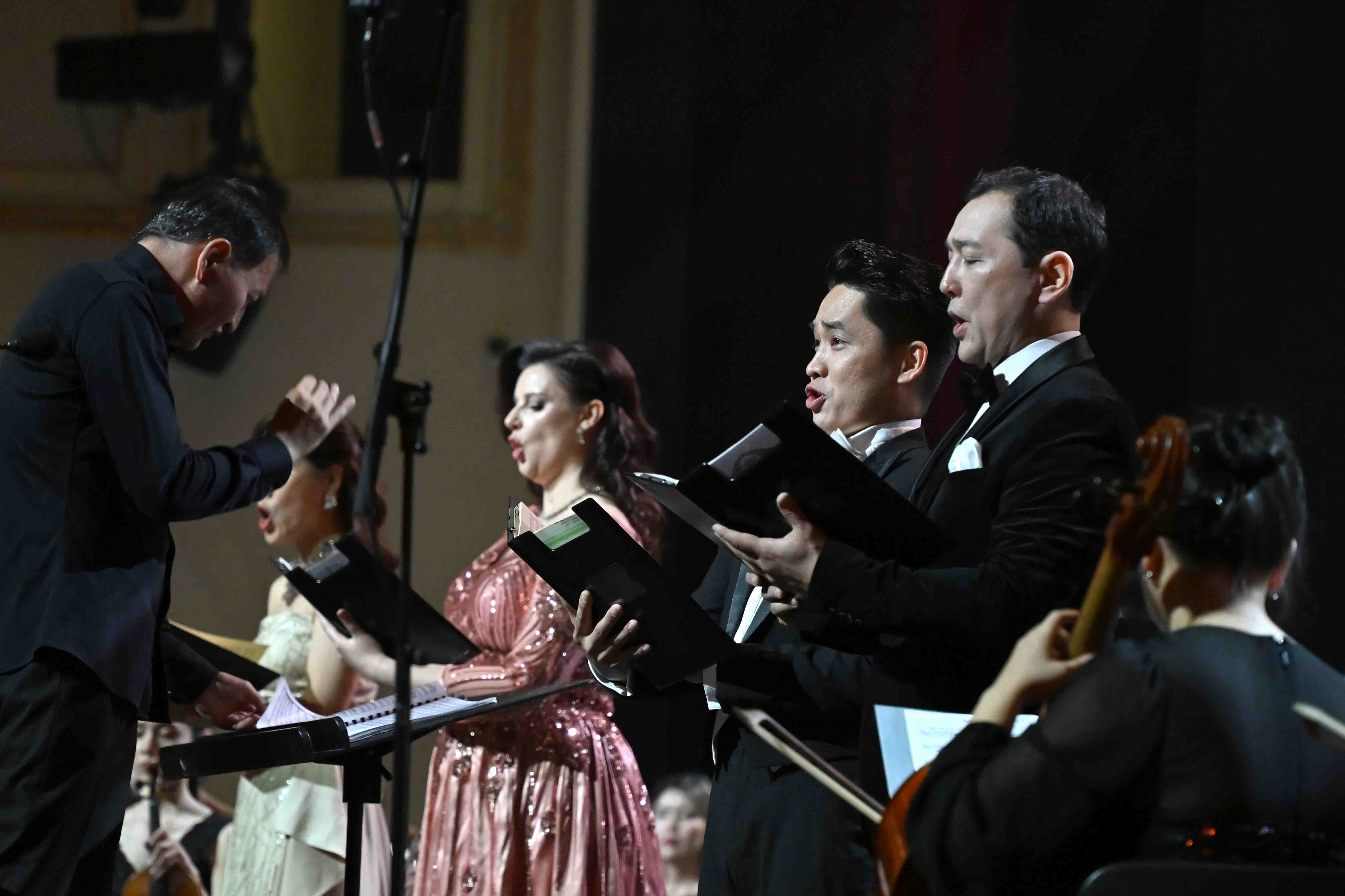 На сцене театра «Астана Опера» перед почетными гостями и столичной публикой выступили Ханойский филармонический оркестр, симфонический оркестр театра «Астана Балет», хор Государственного театра оперы и балета «Астана Опера», а также выдающиеся представители казахского и вьетнамского искусства.