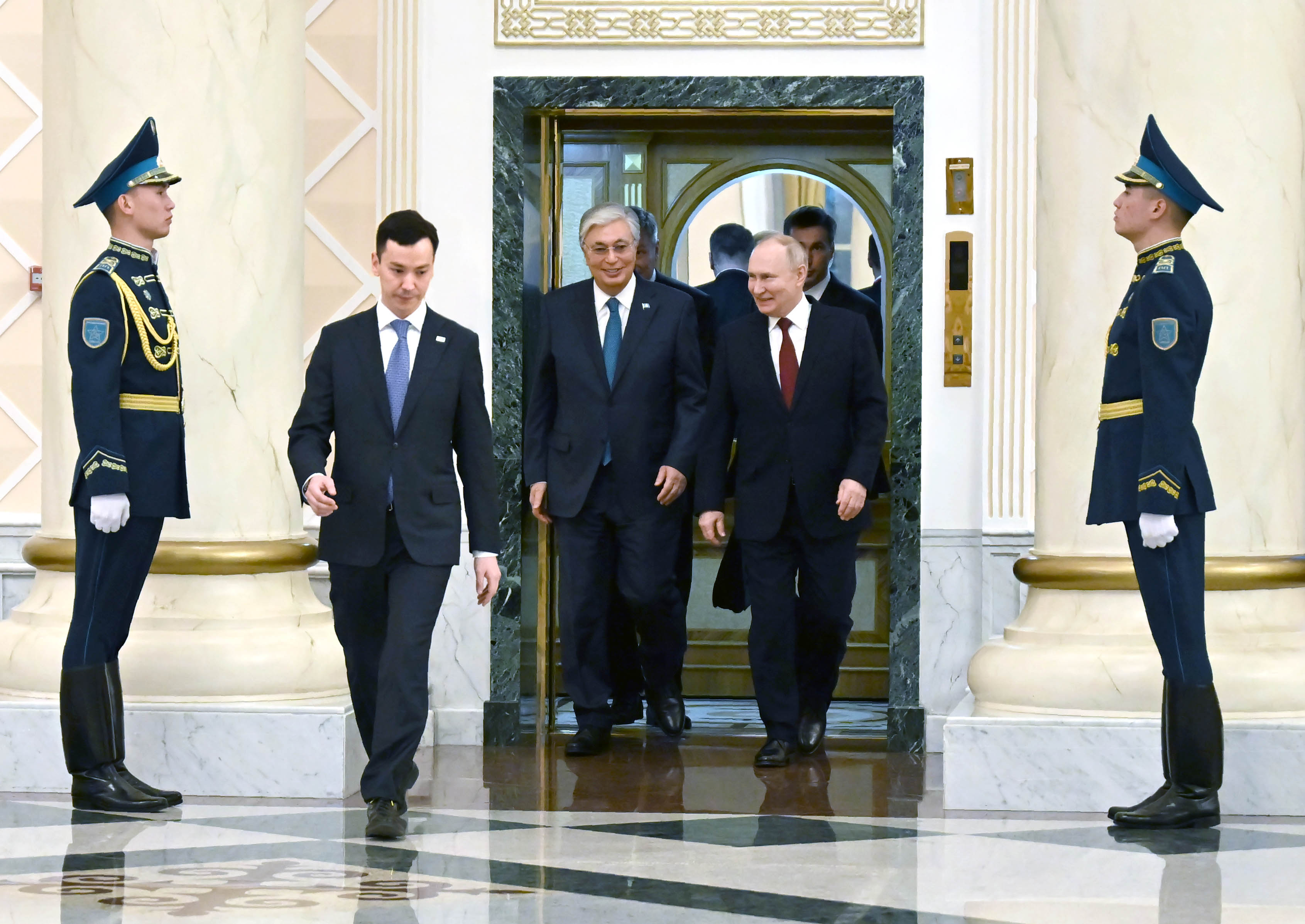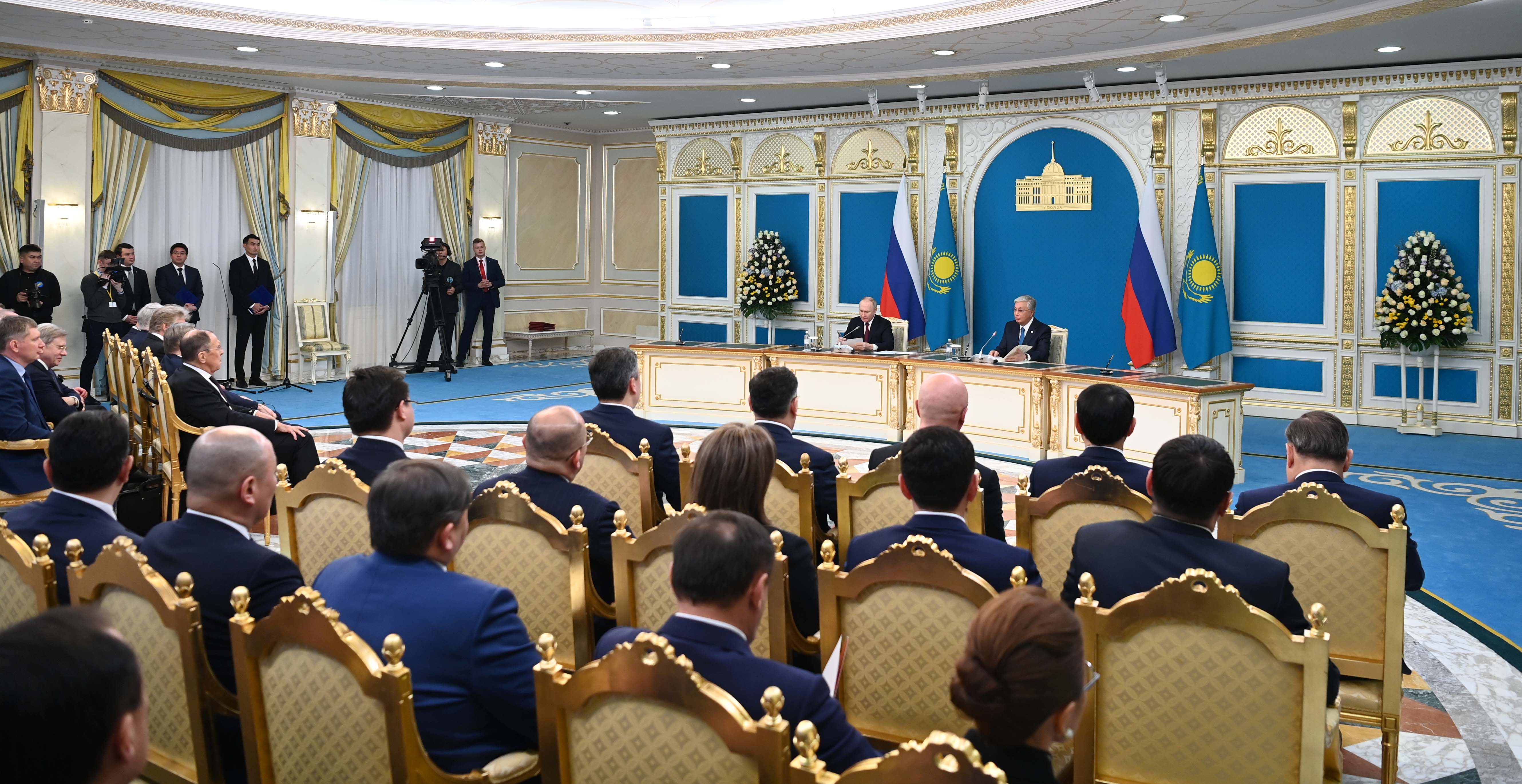 По завершении двусторонних переговоров Глава государства Касым-Жомарт Токаев и Президент Российской Федерации Владимир Путин выступили с совместным заявлением для представителей средств массовой информации.