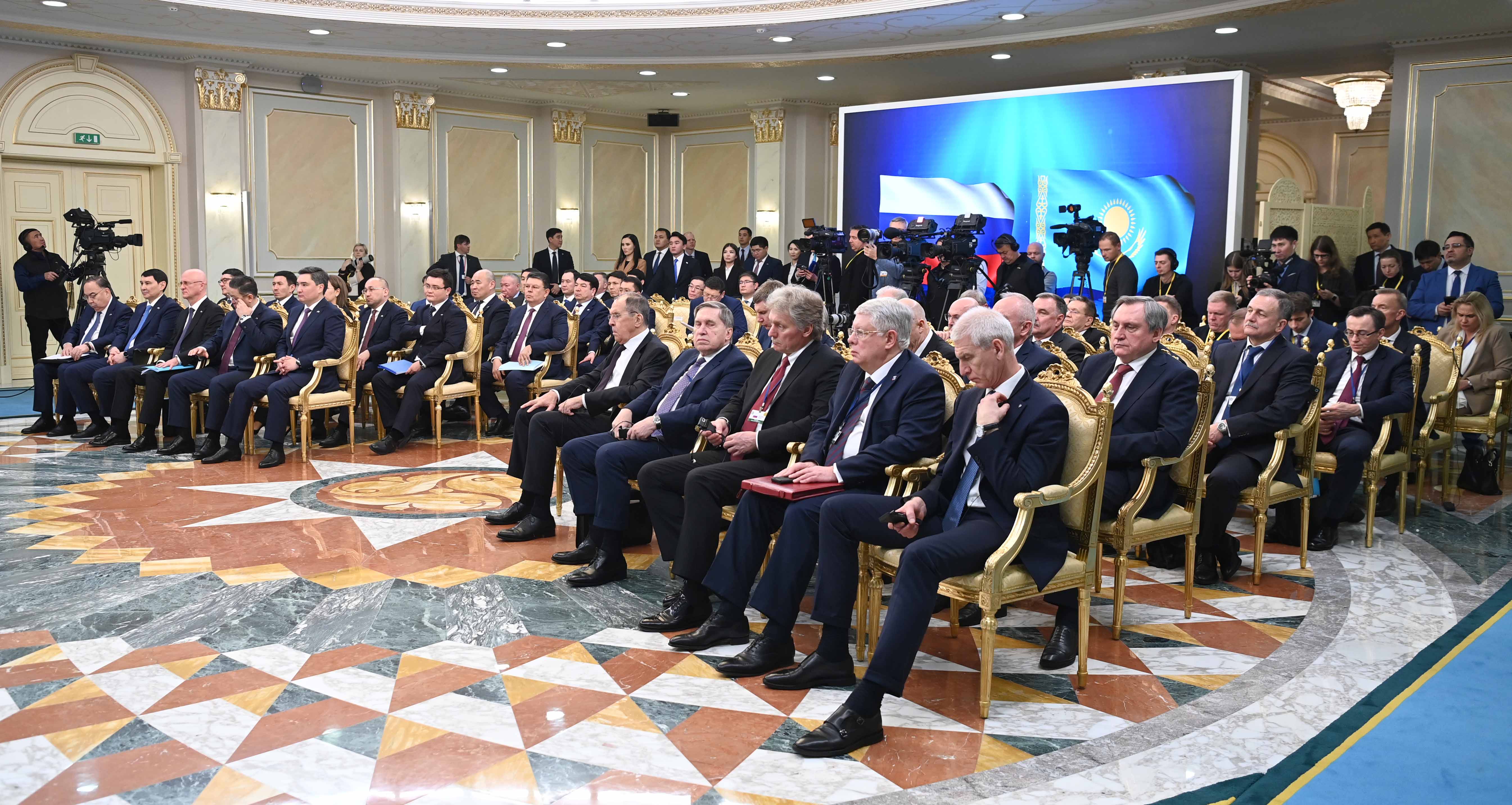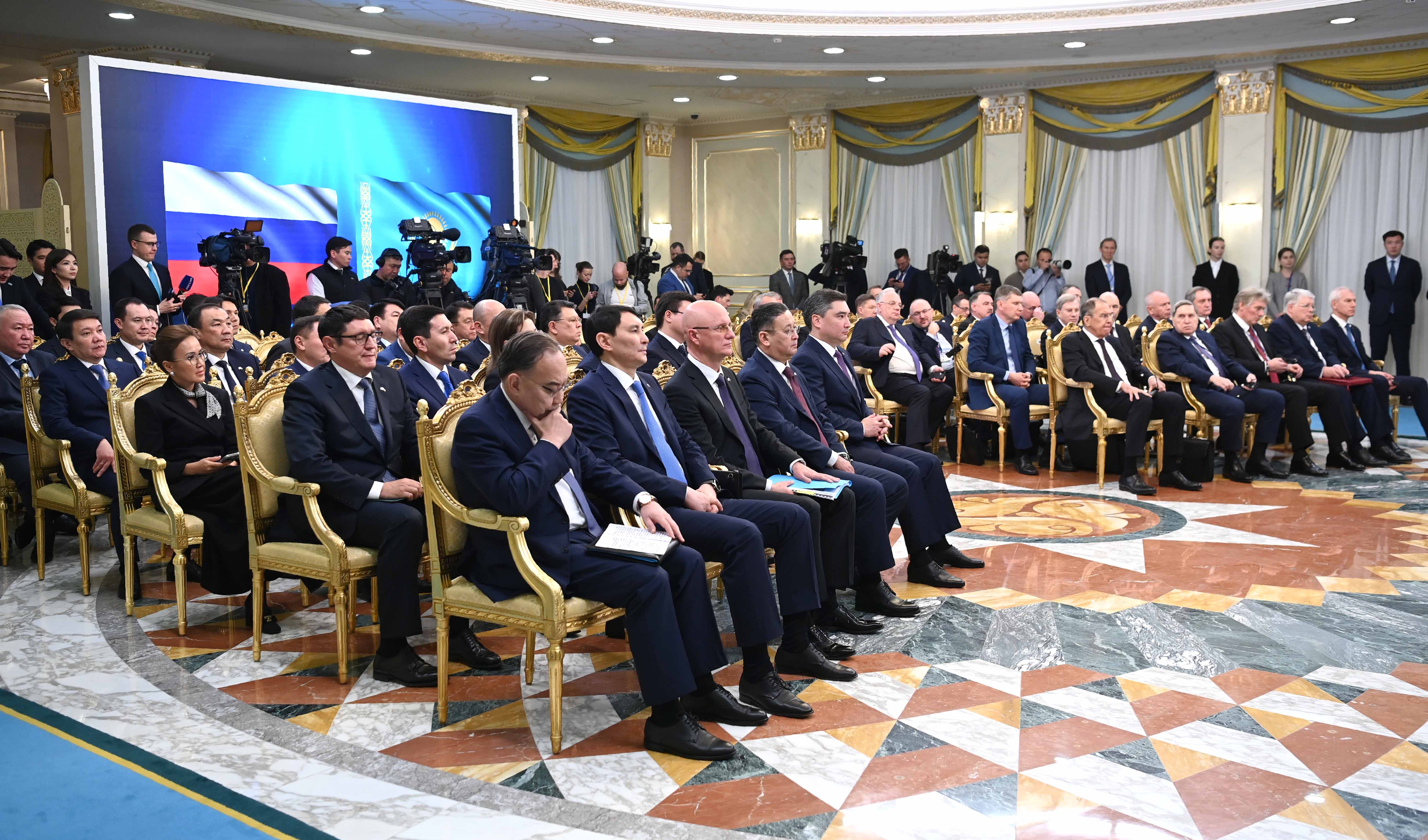Отдельно Глава государства остановился на дальнейшем укреплении культурно-гуманитарных связей. Как было сказано в выступлении, эта комплексная работа включает проведение перекрестных дней культуры, сотрудничество в области искусства, образования и науки, расширение контактов творческой интеллигенции двух стран, а также сохранение общего исторического наследия. Стороны рассмотрели возможность взаимного открытия филиалов казахстанских и российских вузов.